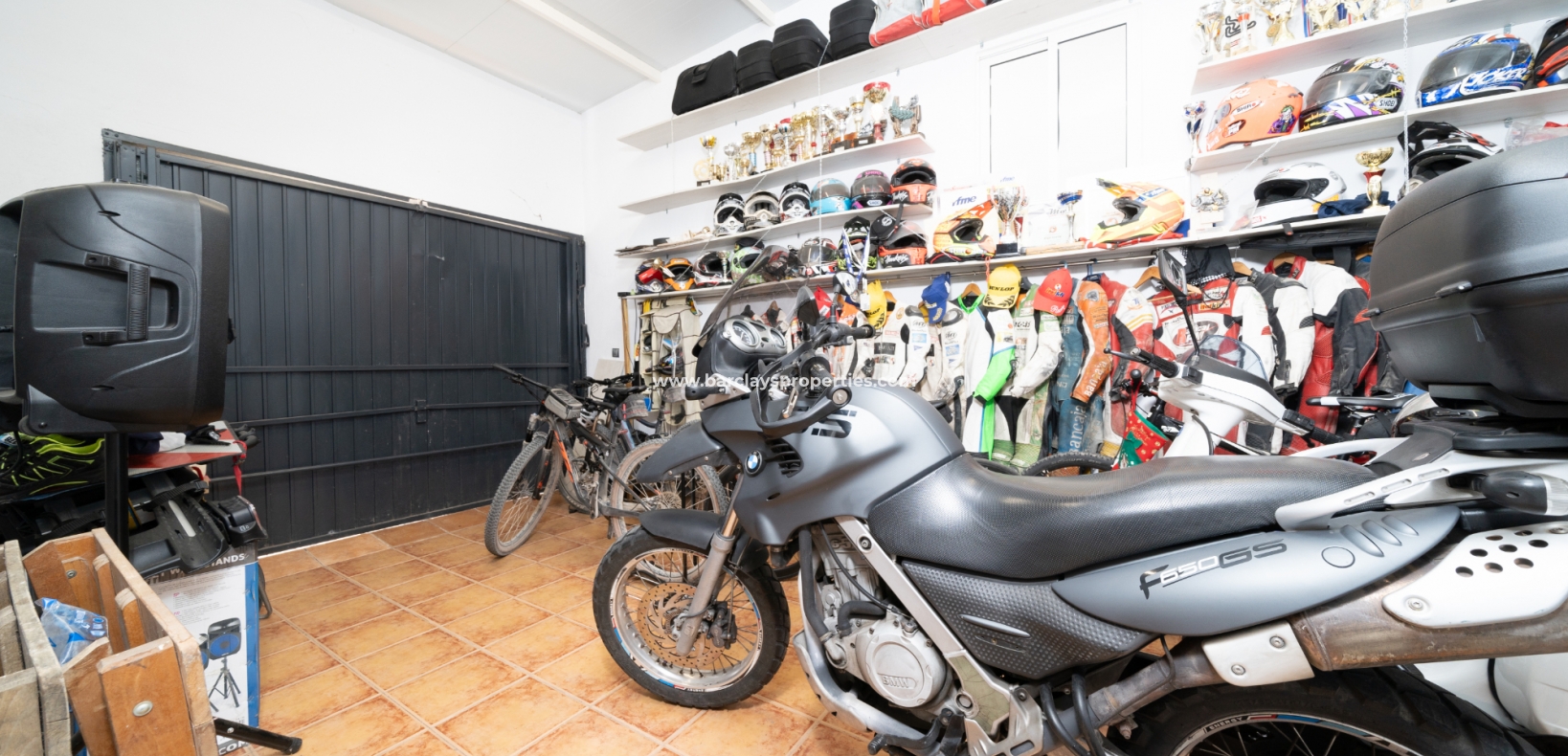 Dit bijgebouw beschikt over een geïntegreerde garage voor handige en veilige parkeergelegenheid.