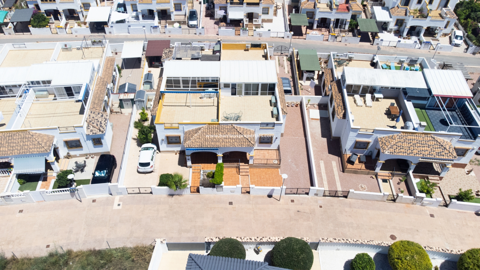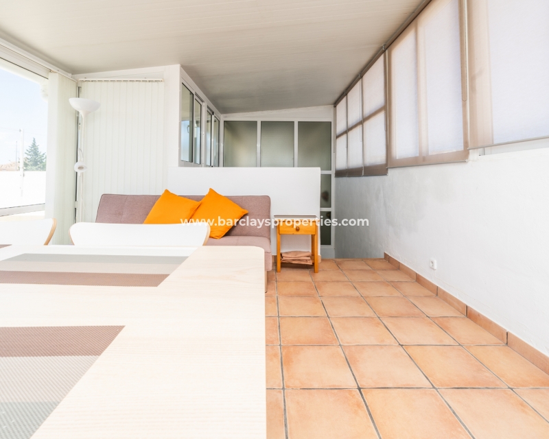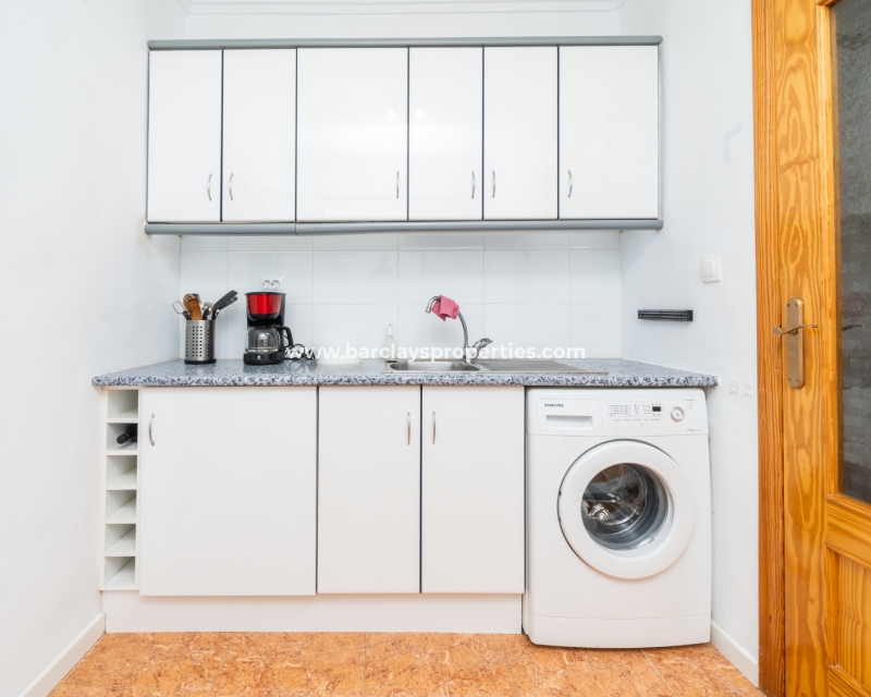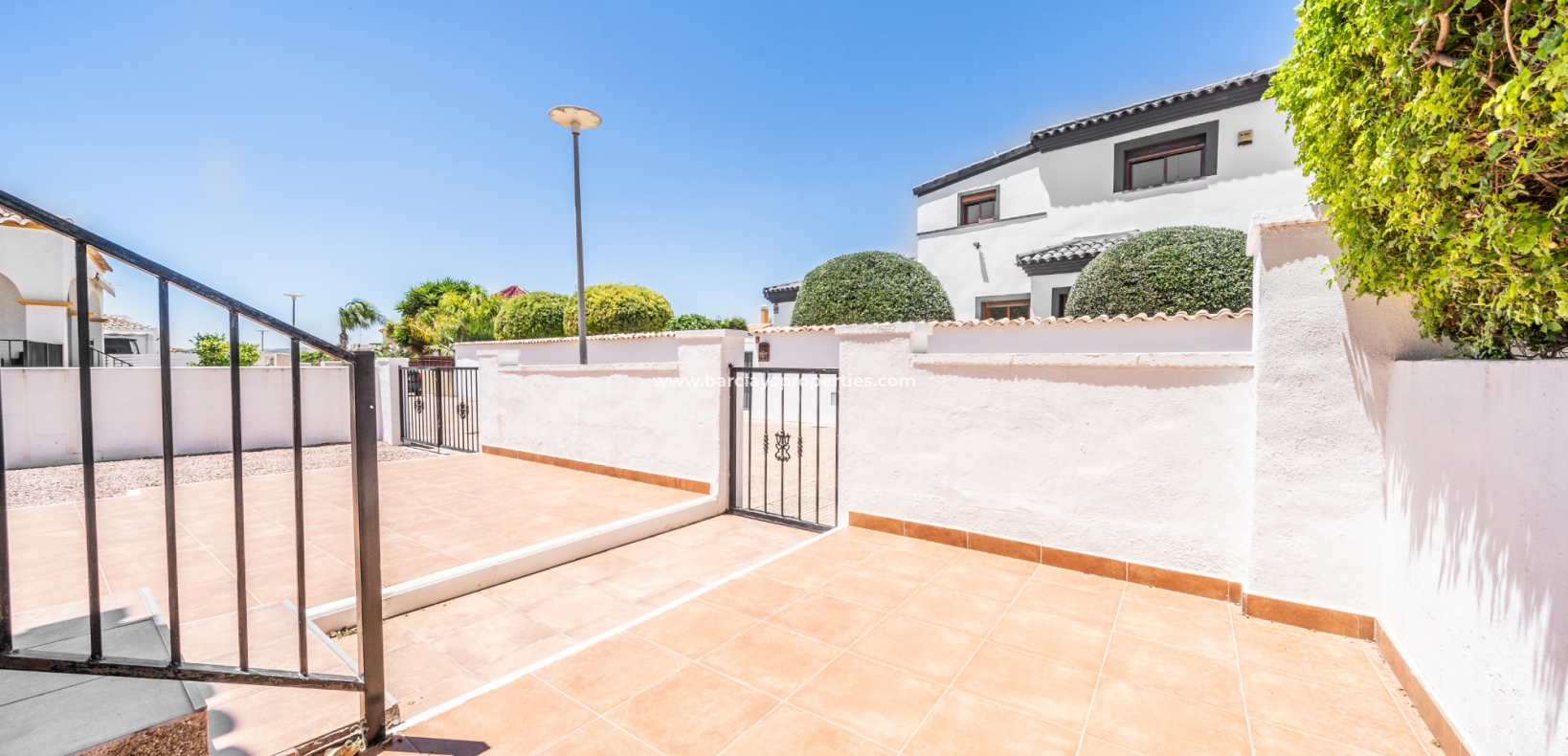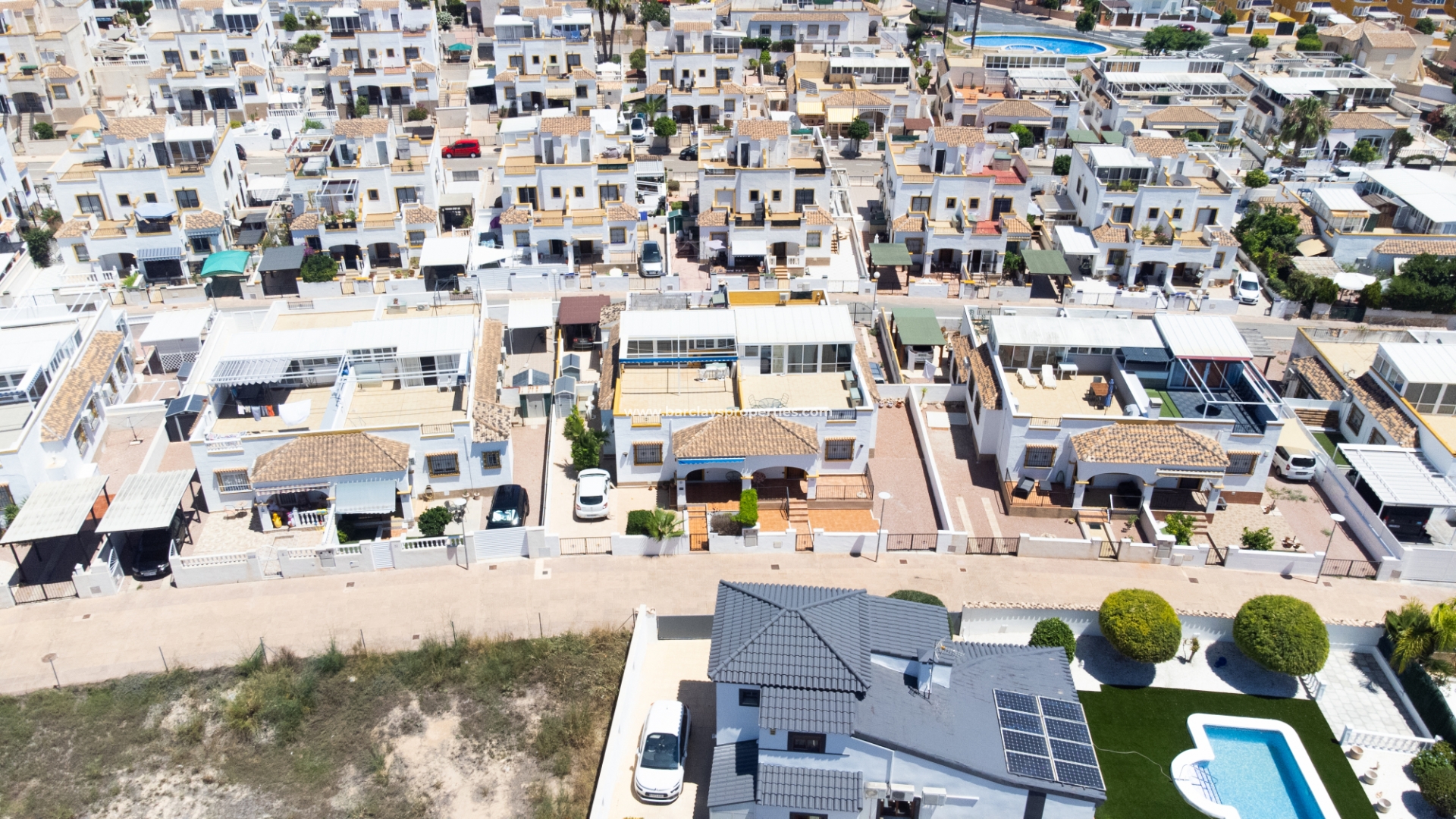 Dit quad-eigendom, een model “Julia”, is een van de populairste modellen in dit gebied omdat de hoofdwoonruimte alles op één niveau is en men naar het dakterras kan als men dat wenst, maar dagelijks wonen blijft eenvoudig, vooral voor de ouder wordende bevolking en mensen met mobiliteitsproblemen. Het is ook populair bij families vanwege het ontbreken van privézwembadonderhoud en het hebben van een gemeenschappelijk zwembad waar je je buren kunt ontmoeten en bijpraten. Veel investeerders kopen dit soort eigendommen als een lucratieve verhuurinvestering omdat het het hele jaar door gemakkelijk te verhuren is.