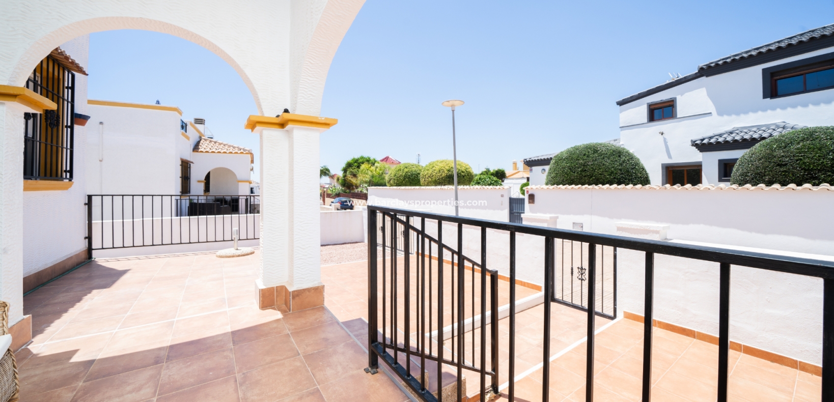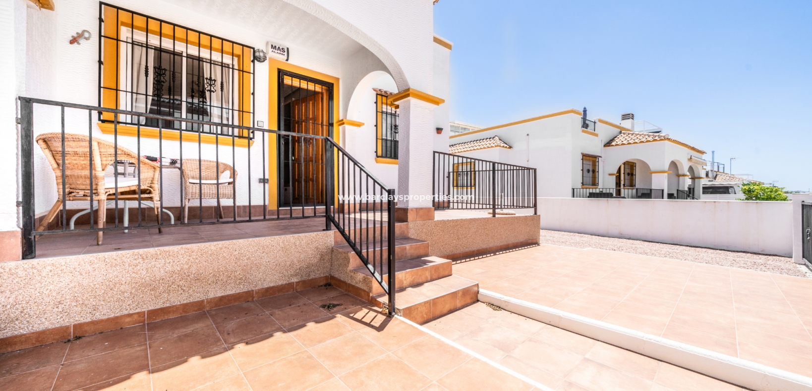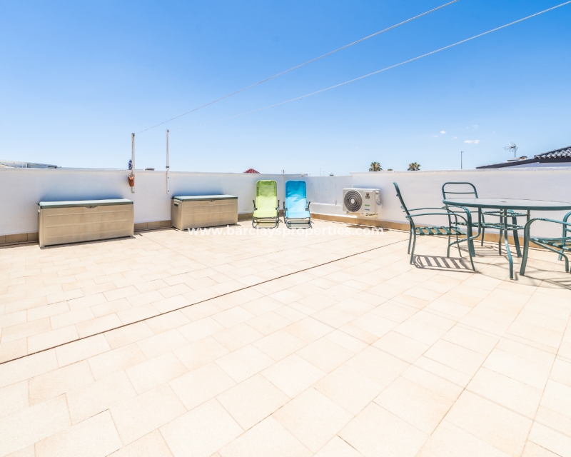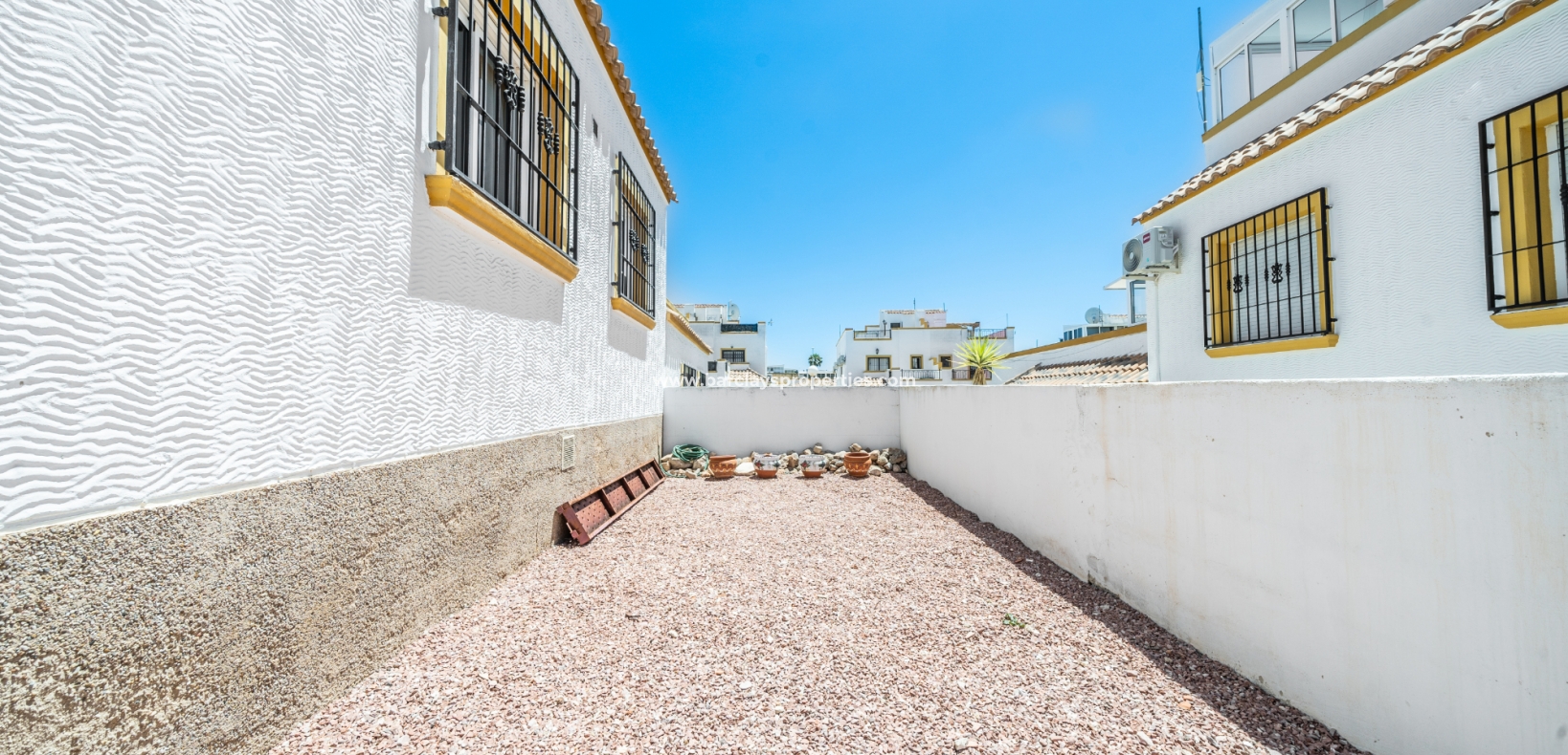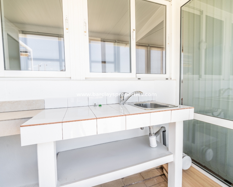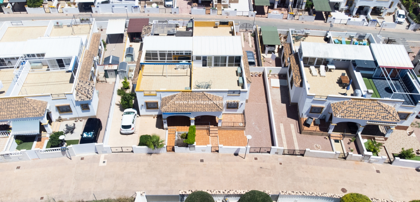 Dit quad-eigendom, een model “Julia”, is een van de populairste modellen in dit gebied omdat de hoofdwoonruimte alles op één niveau is en men naar het dakterras kan als men dat wenst, maar dagelijks wonen blijft eenvoudig, vooral voor de ouder wordende bevolking en mensen met mobiliteitsproblemen. Het is ook populair bij families vanwege het ontbreken van privézwembadonderhoud en het hebben van een gemeenschappelijk zwembad waar je je buren kunt ontmoeten en bijpraten. Veel investeerders kopen dit soort eigendommen als een lucratieve verhuurinvestering omdat het het hele jaar door gemakkelijk te verhuren is.
