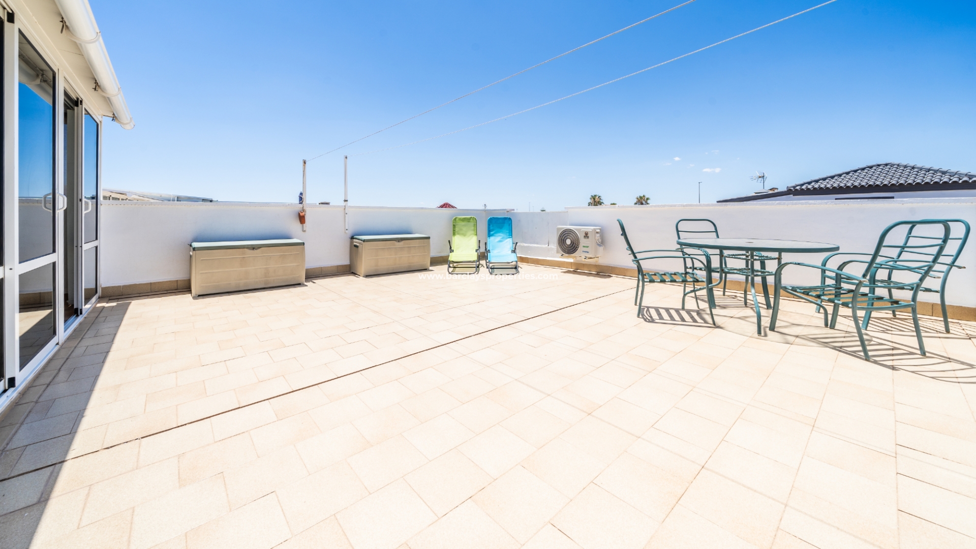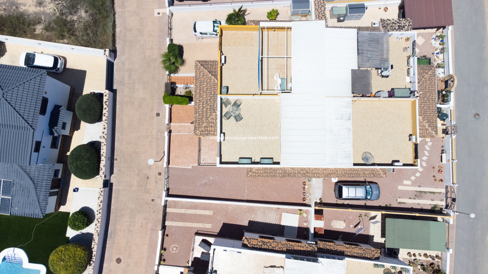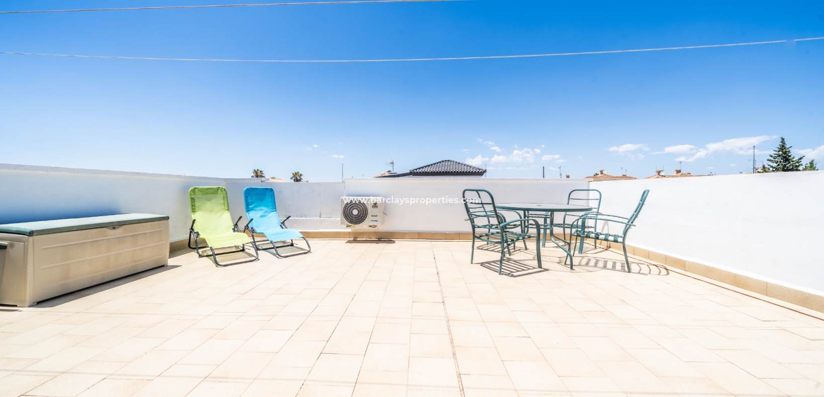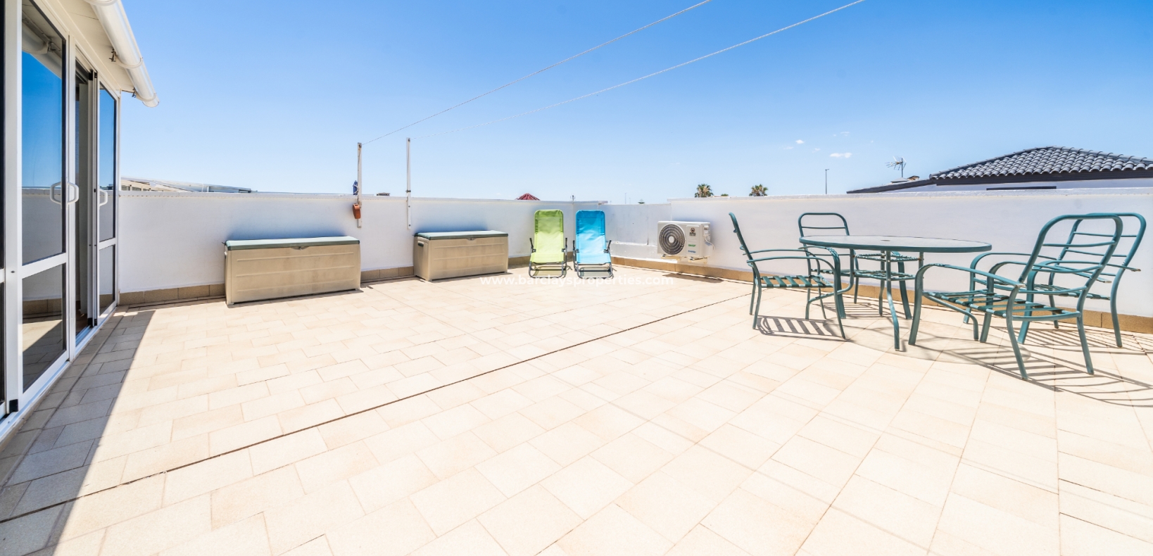 Dit quad-eigendom, een model “Julia”, is een van de populairste modellen in dit gebied omdat de hoofdwoonruimte alles op één niveau is en men naar het dakterras kan als men dat wenst, maar dagelijks wonen blijft eenvoudig, vooral voor de ouder wordende bevolking en mensen met mobiliteitsproblemen. Het is ook populair bij families vanwege het ontbreken van privézwembadonderhoud en het hebben van een gemeenschappelijk zwembad waar je je buren kunt ontmoeten en bijpraten. Veel investeerders kopen dit soort eigendommen als een lucratieve verhuurinvestering omdat het het hele jaar door gemakkelijk te verhuren is.