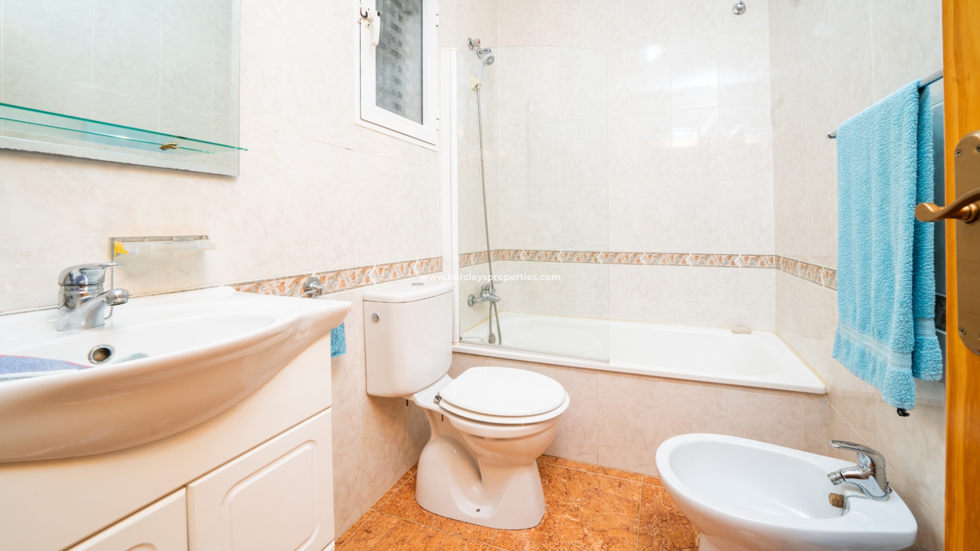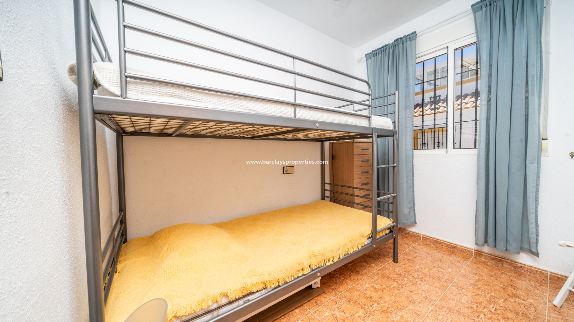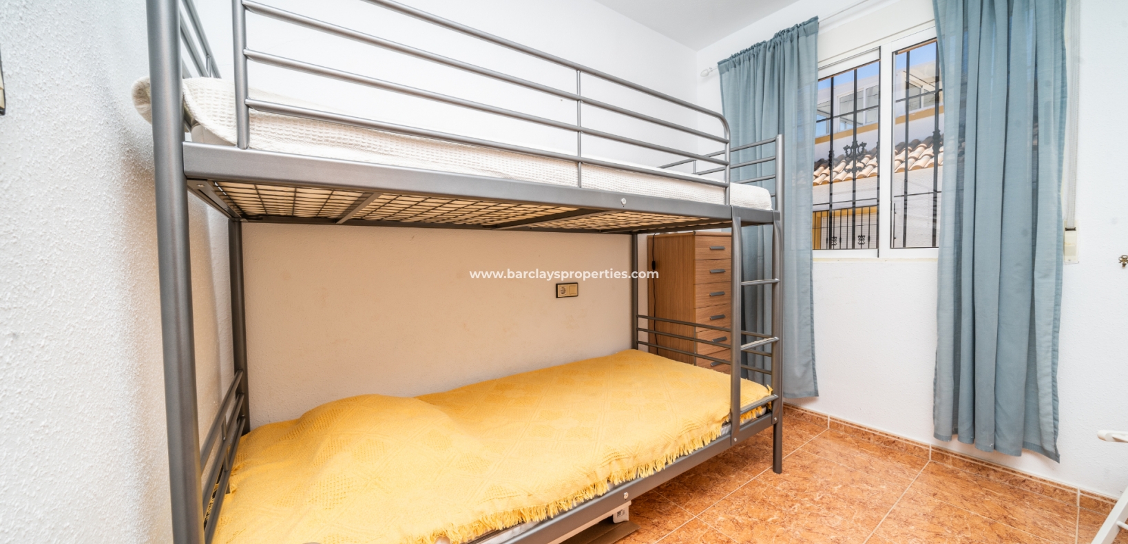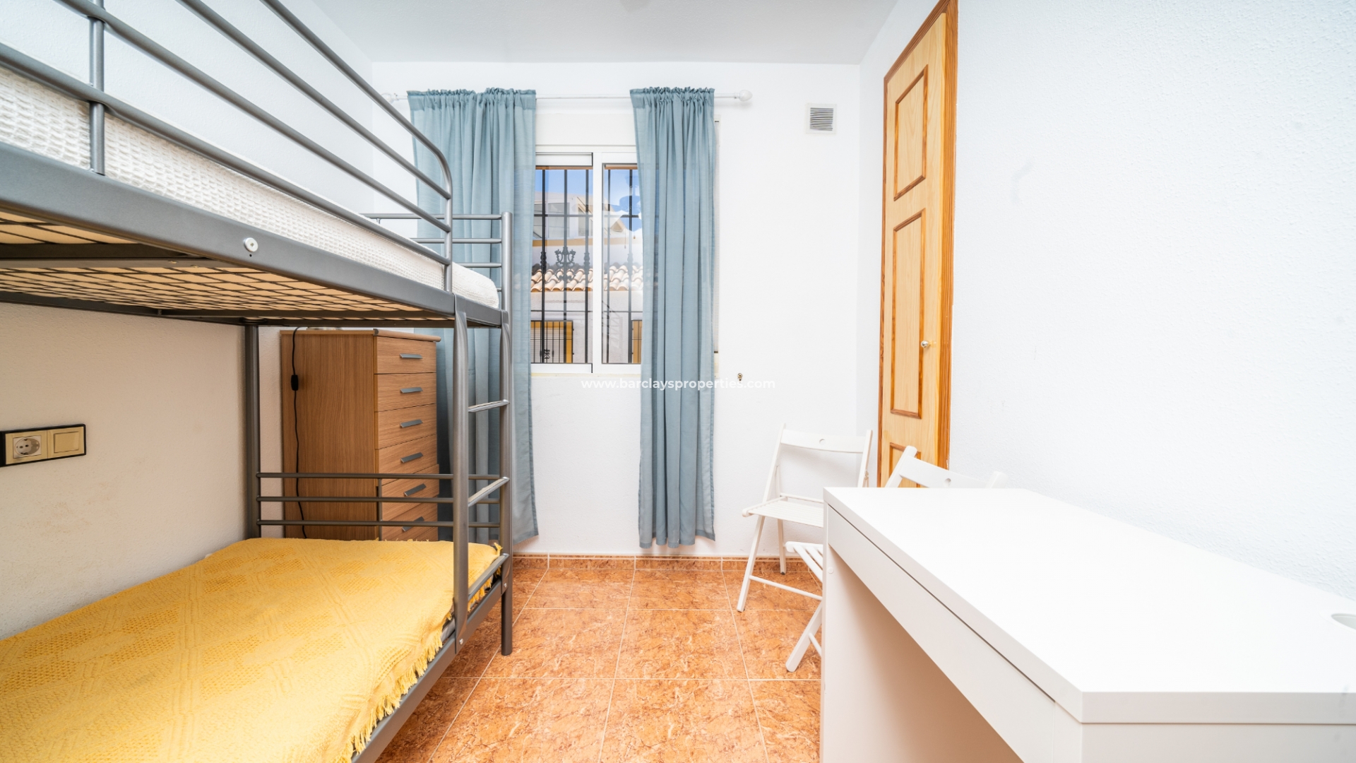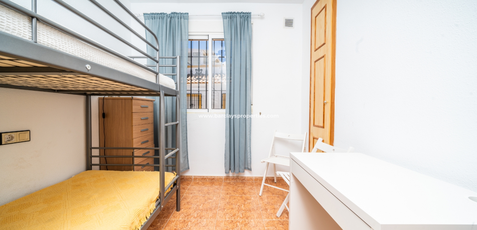 De eerste slaapkamer is een ruime tweepersoonskamer met ingebouwde kasten en een plafondventilator. De tweede slaapkamer heeft ook ingebouwde kasten, terwijl de derde slaapkamer een andere tweepersoonskamer is met een plafondventilator. De familiebadkamer is goed uitgerust met een volwaardig bad, WC, bidet en wastafel.