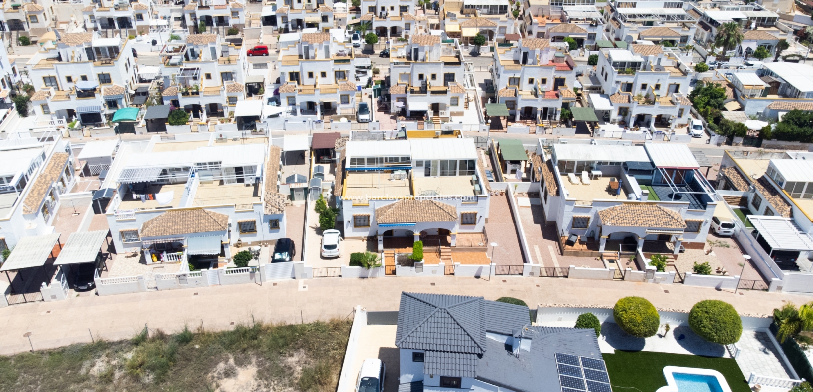 Dit quad-eigendom bevindt zich in een privé-gemeenschap binnen Urbanisatie La Marina, ➡️ slechts op 5 minuten lopen van voorzieningen in de commerciële zone "Monte Victoria", waar men een supermarkt, winkels, een dokterspraktijk en een grote selectie bars en restaurants vindt.