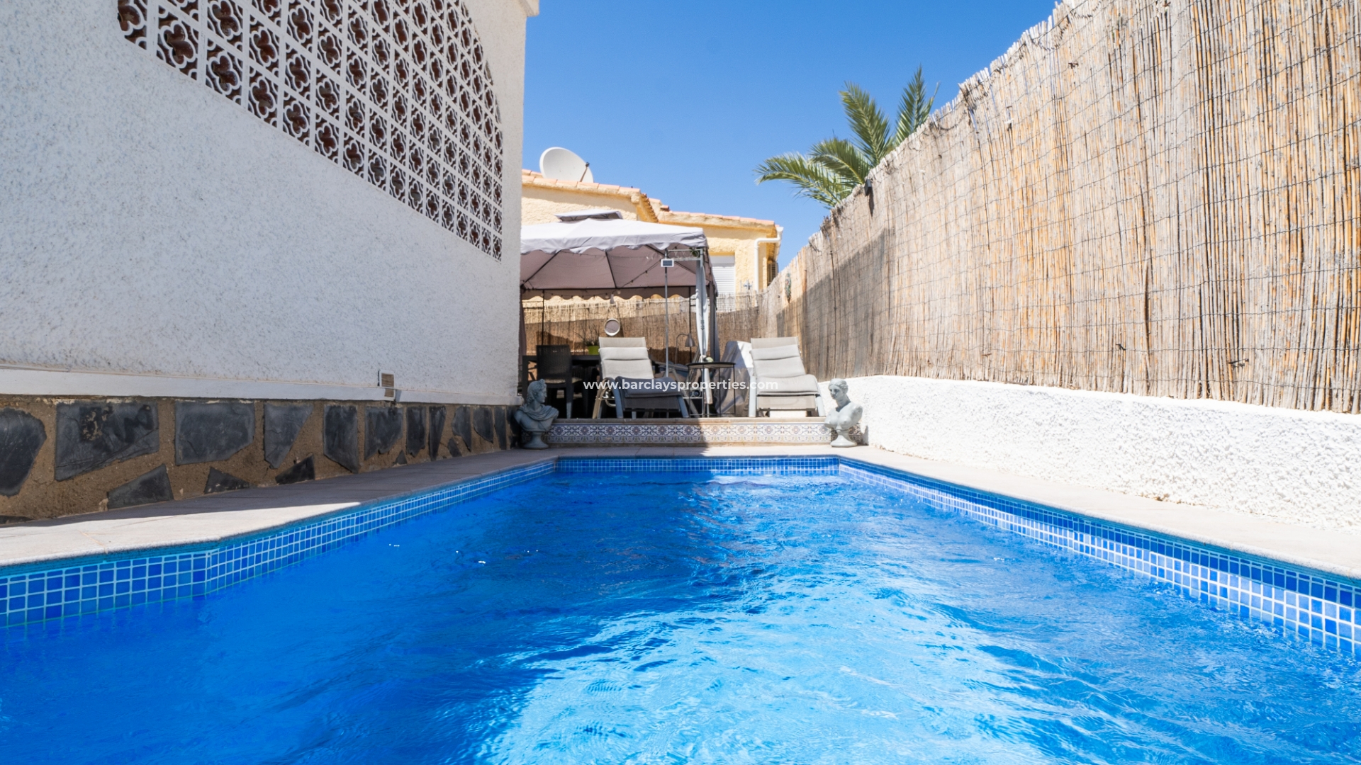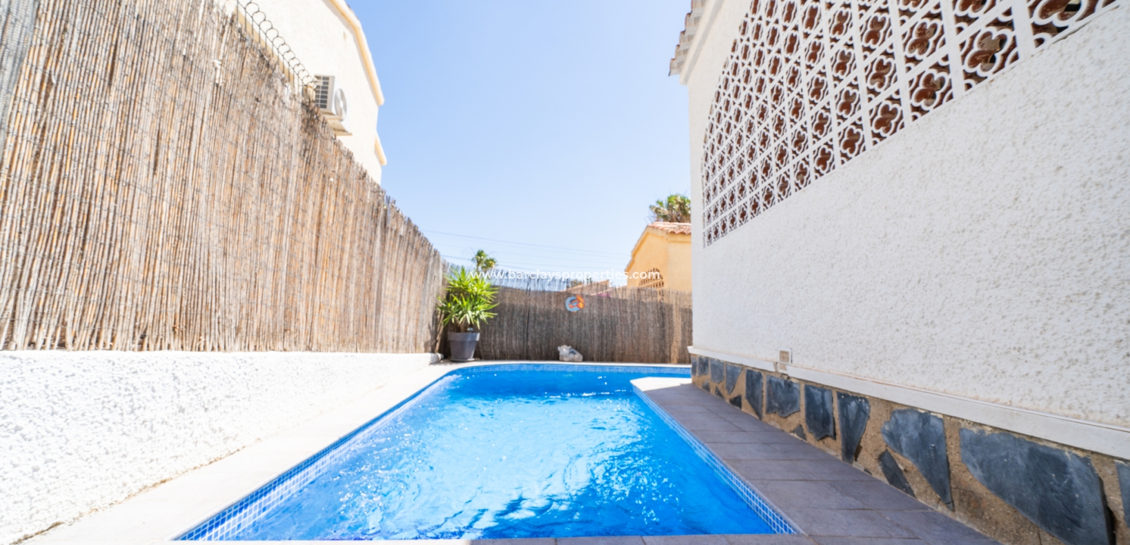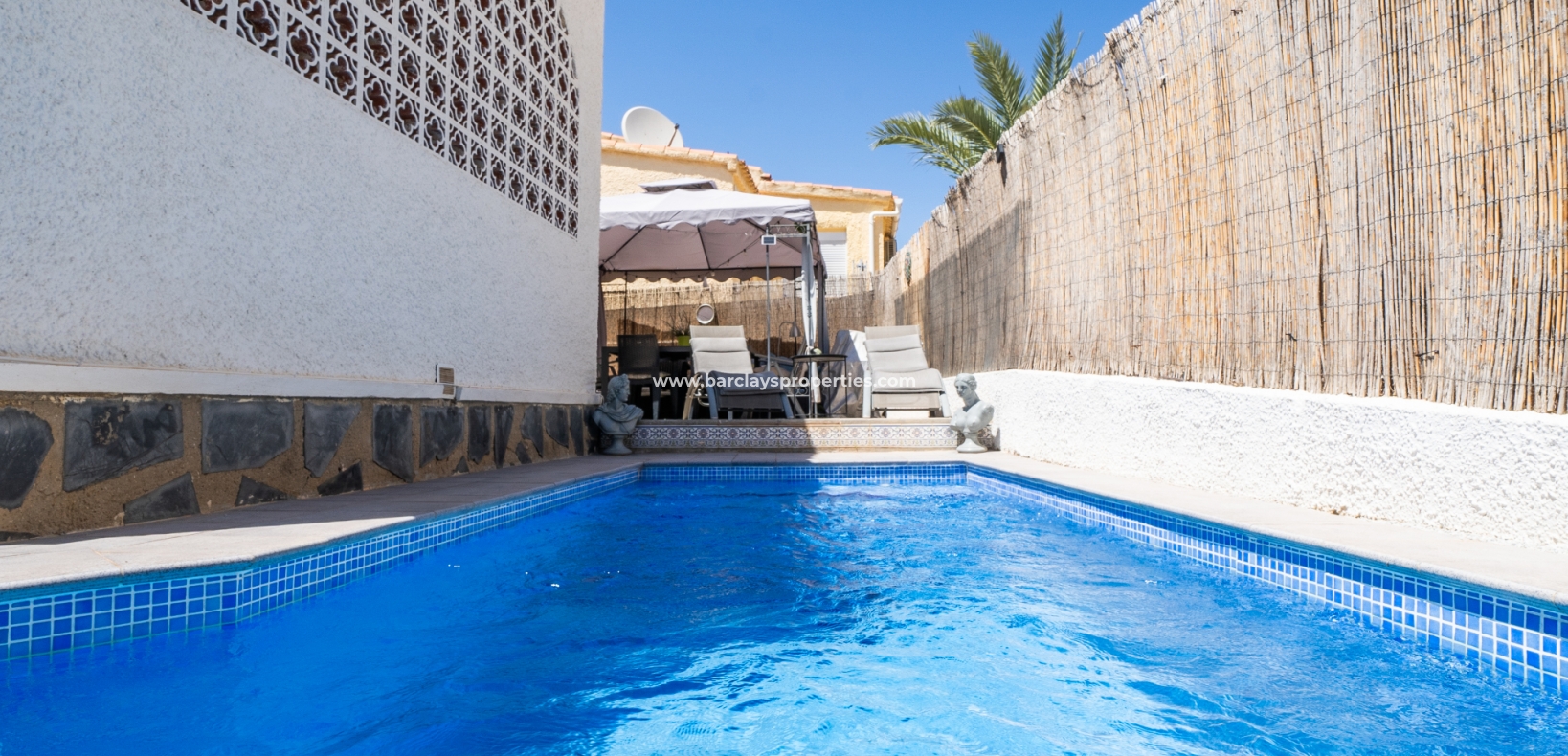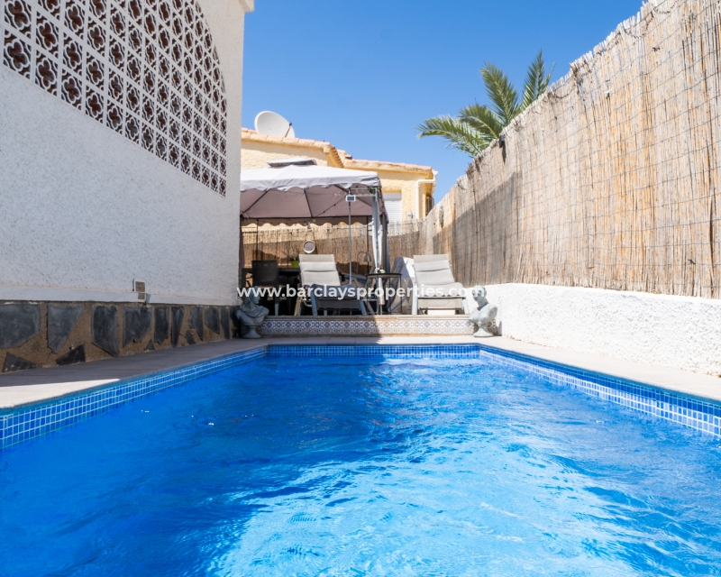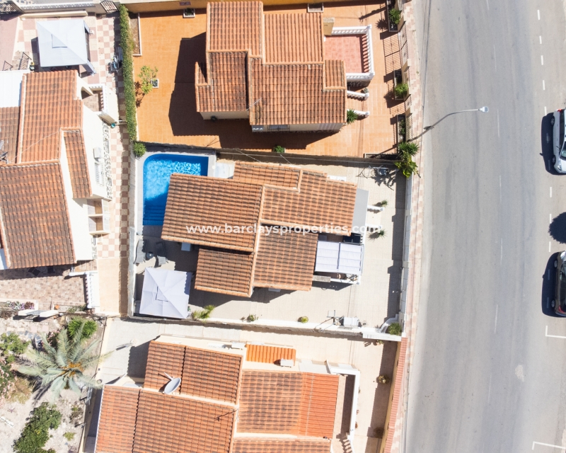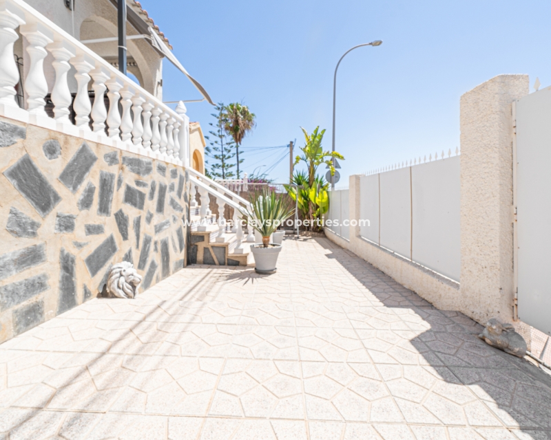 Deze charmante vrijstaande woning bevindt zich in de zeer gewilde Urbanisatie La Marina in de provincie Alicante. Het biedt een mix van moderne voorzieningen en gemakkelijke toegang tot lokale attracties, ➡️ slechts 5 minuten lopen van het populaire commerciële gebied "Consum Square". De woning beschikt over ➡️ een uniek L-vormig zwembad, perfect voor ontspanning en vermaak. Een westelijk gelegen terras aan de voorkant biedt een ideale plek om van de zonsondergang en buiten dineren te genieten.