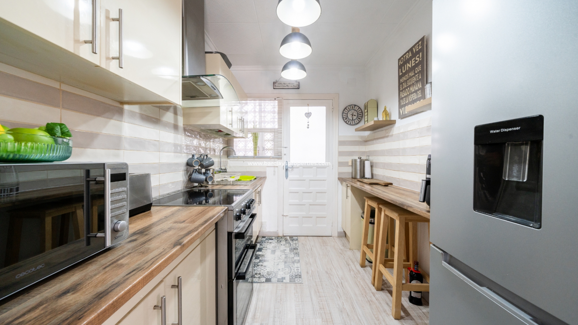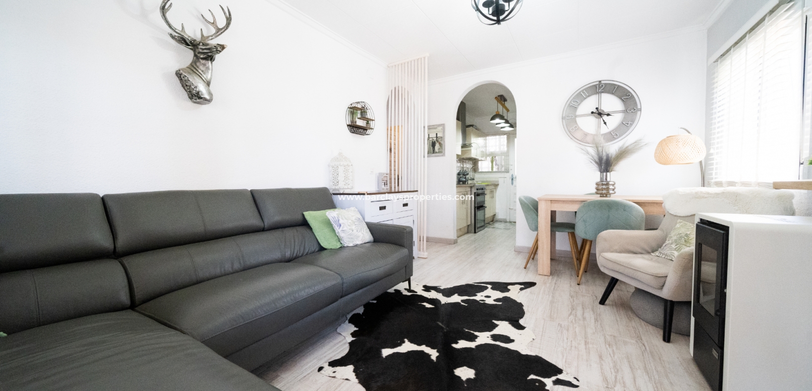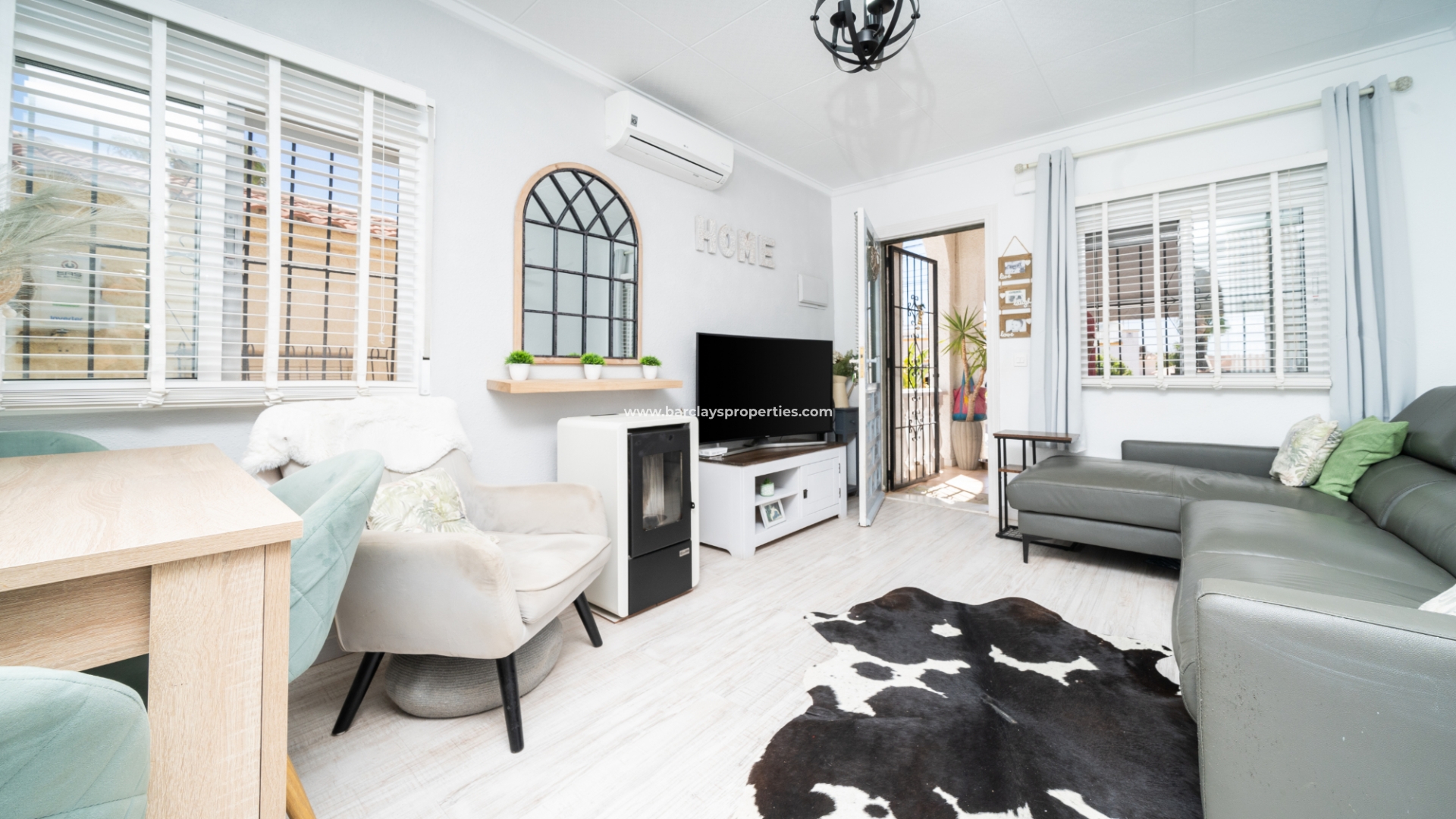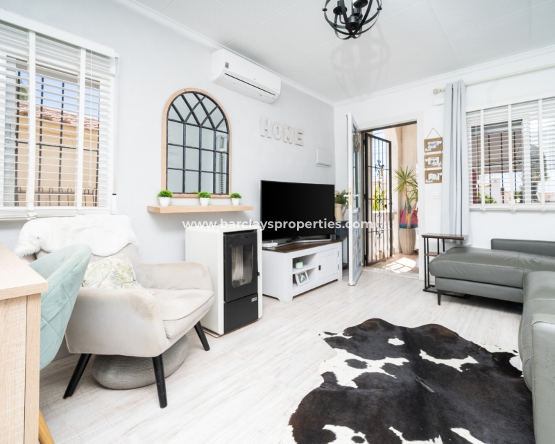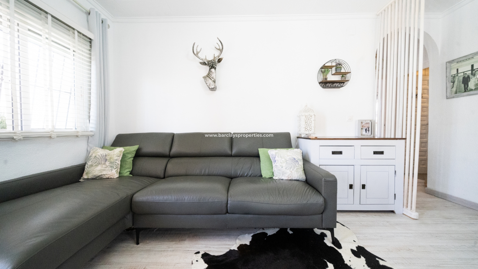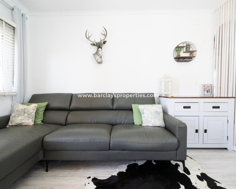 Binnenin beschikt de uitnodigende woonkamer over airconditioning (zowel warm als koud) en stijlvolle laminaatvloeren, wat comfort het hele jaar door garandeert. De onafhankelijke moderne keuken is volledig uitgerust met nieuwe, hoogwaardige elektrische apparaten en er is ook een handige bijkeuken voor extra opslag en wasbehoeften.