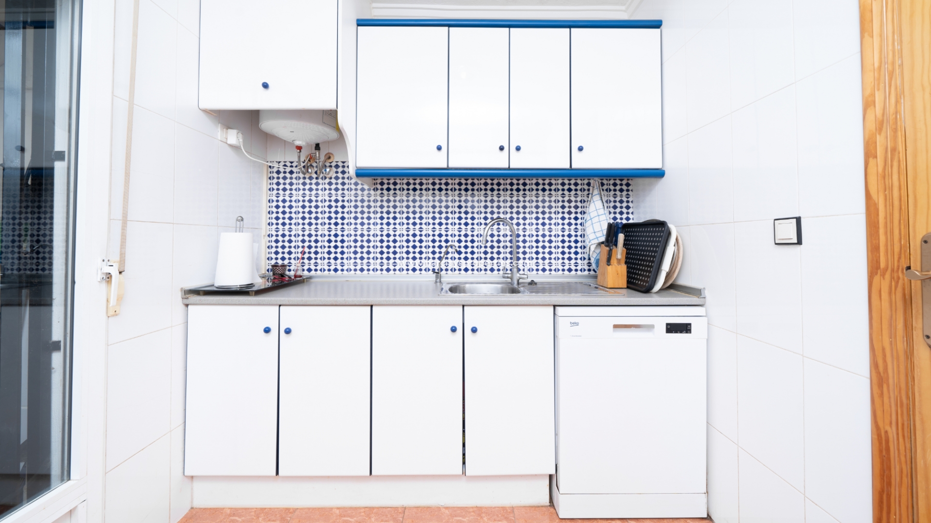 De badkamer is voorzien van een inloopdouche, WC en wastafel, die stijl en functionaliteit combineert voor je dagelijkse behoeften. De volledig elektrische keuken is ontworpen voor efficiëntie en uitgerust met alle benodigde apparaten. Een bijkeuken is toegankelijk vanuit de keuken met trappen die leiden naar het dakterras.