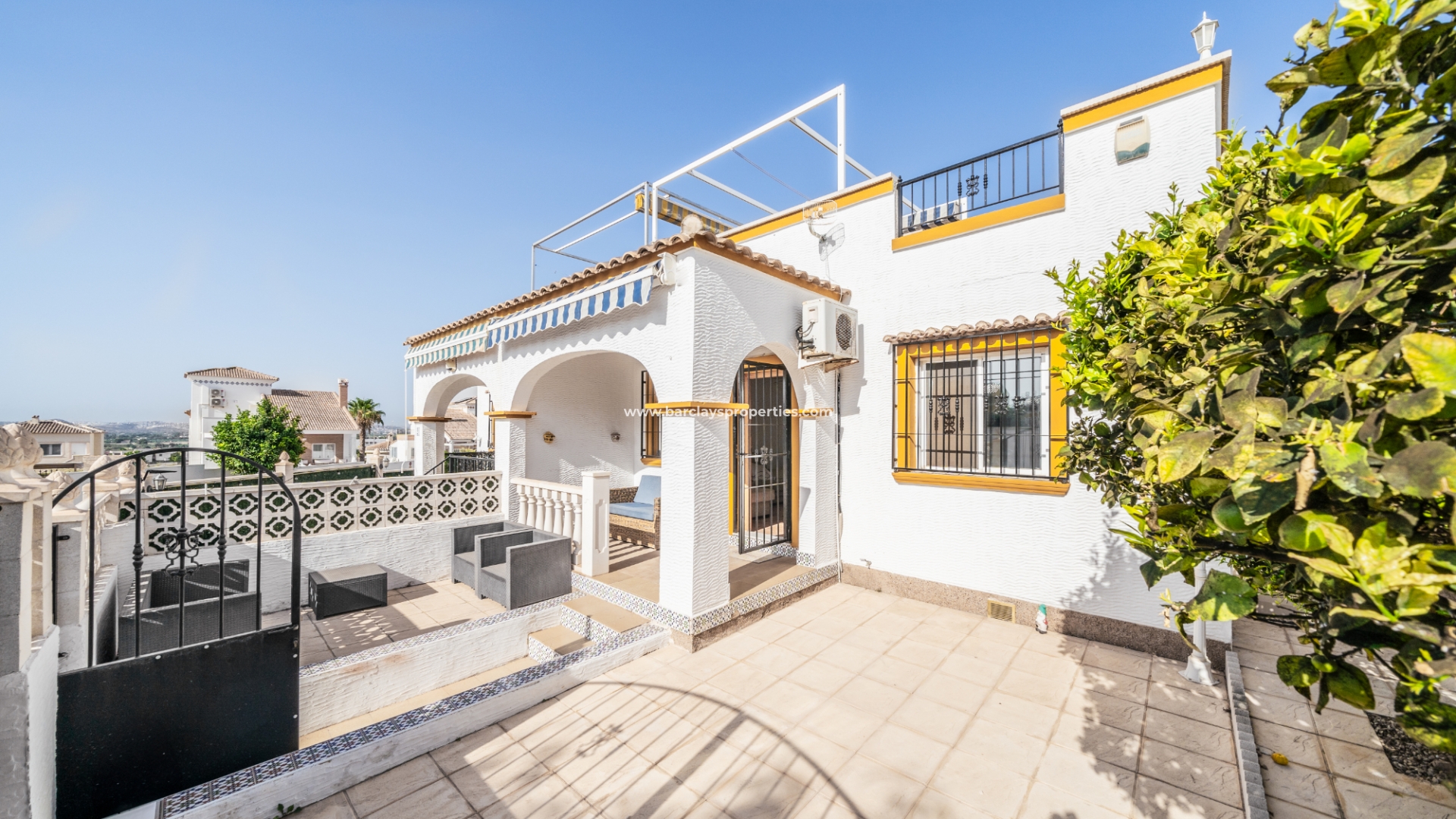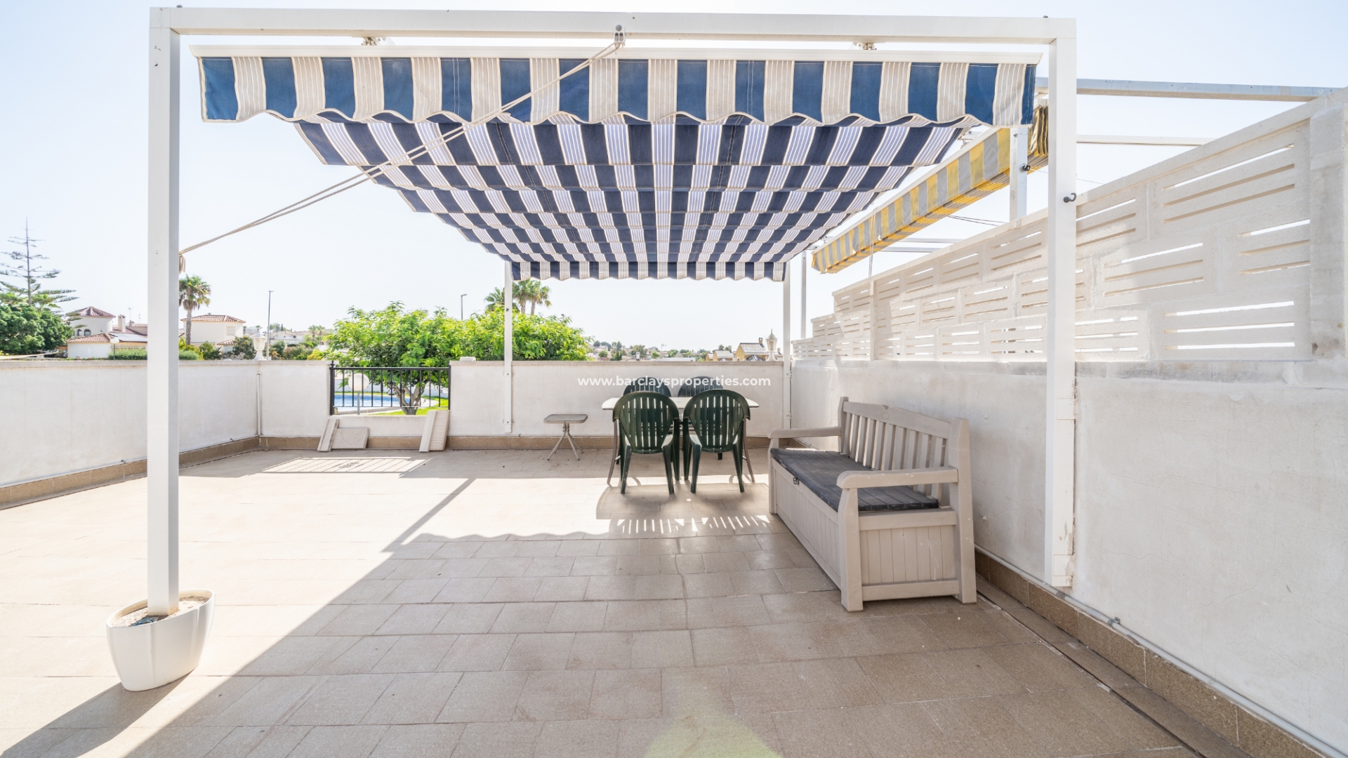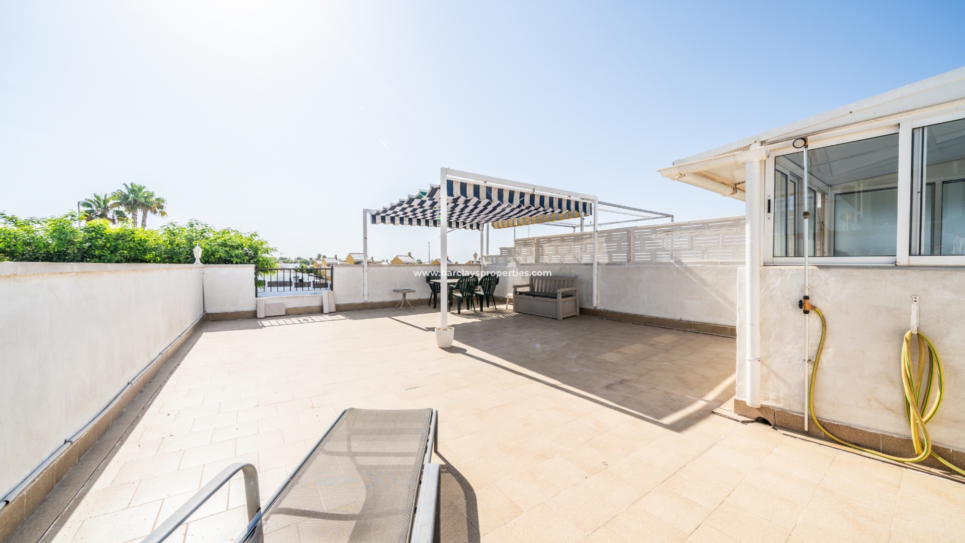➡️ Een van de opvallende kenmerken van deze woning is het solarium, dat een prachtig uitzicht biedt op het omliggende platteland. Met een gebouwde pergola-stijl zonnescherm, biedt het een perfecte plek om te zonnebaden, te ontspannen of gasten te vermaken terwijl u geniet van het pittoreske landschap.