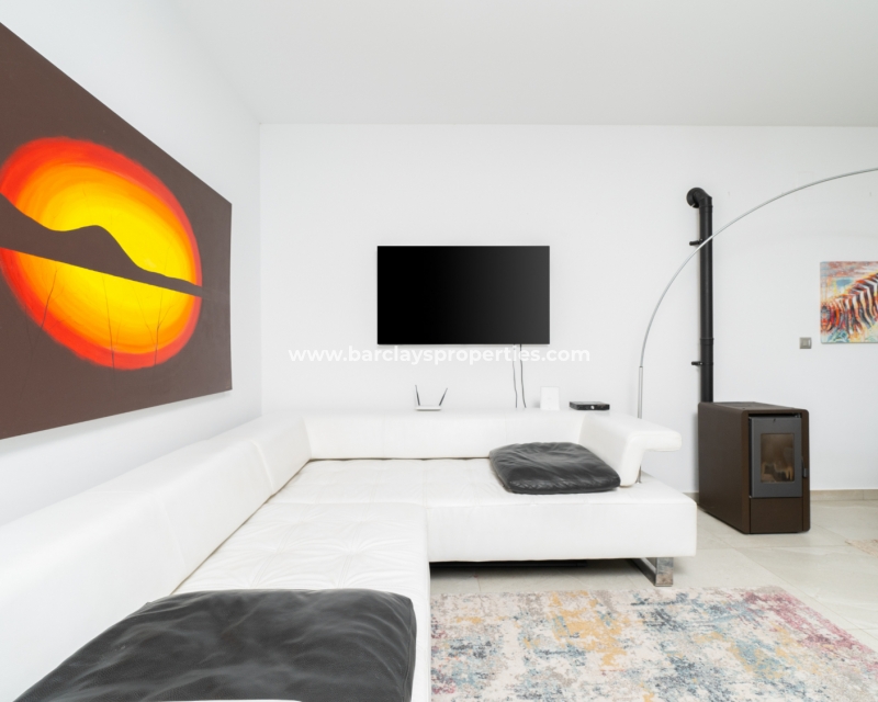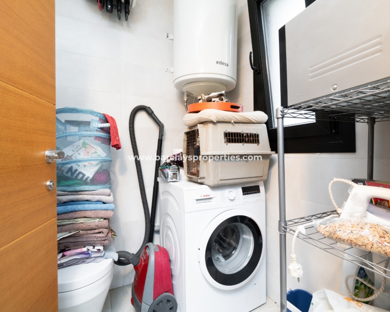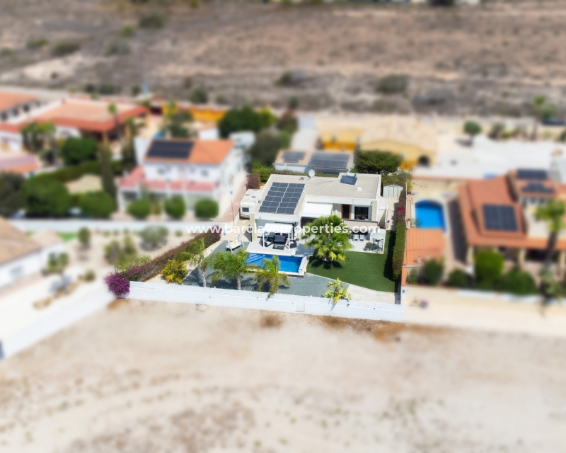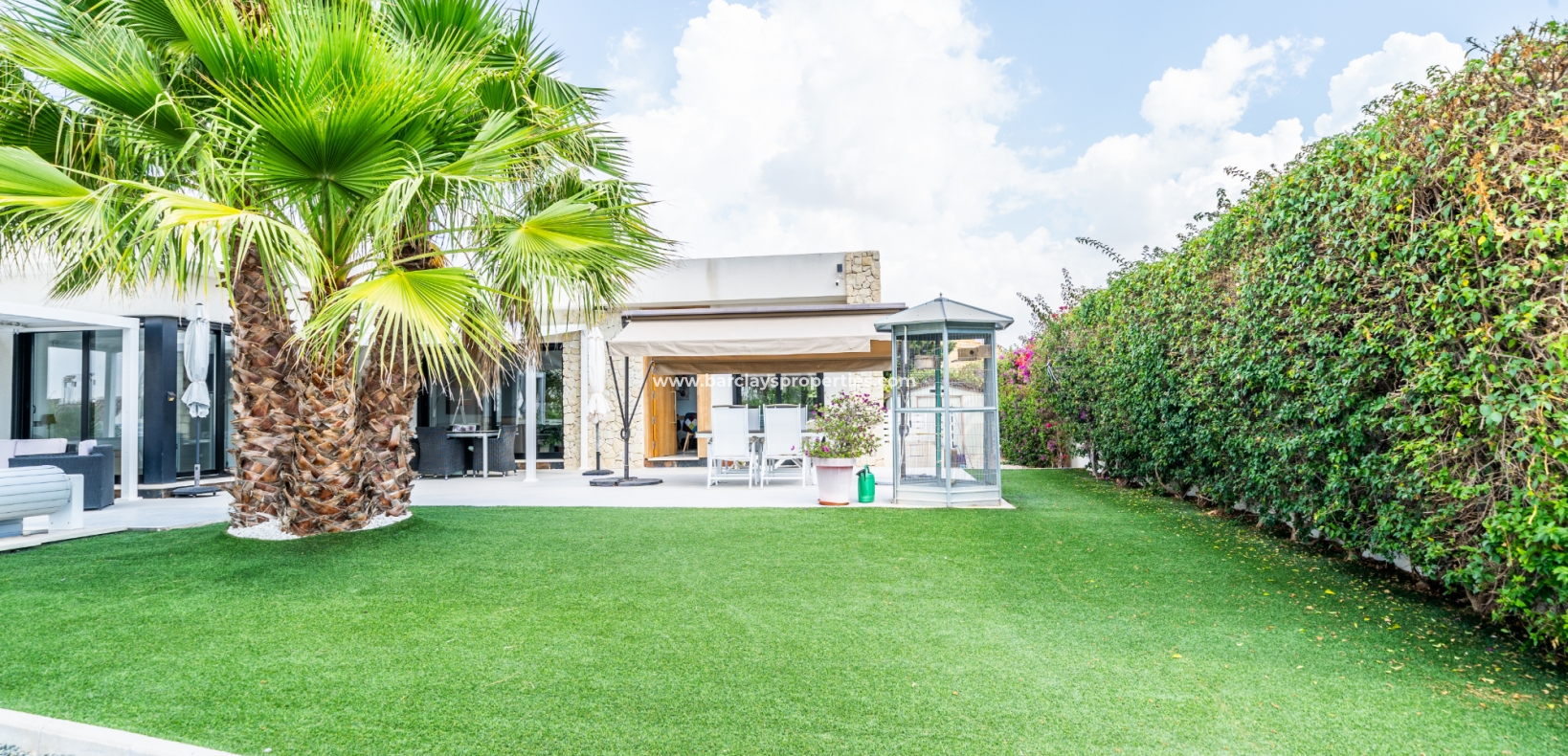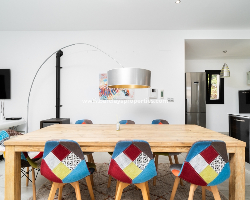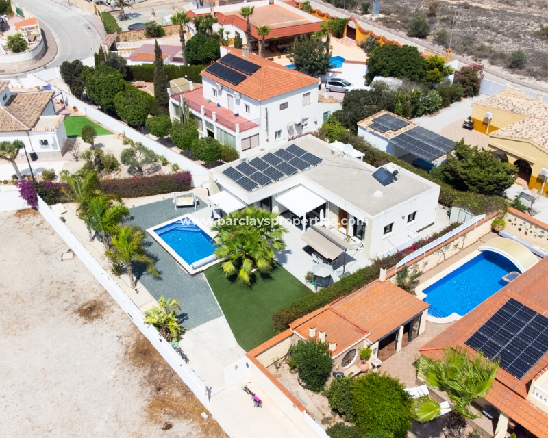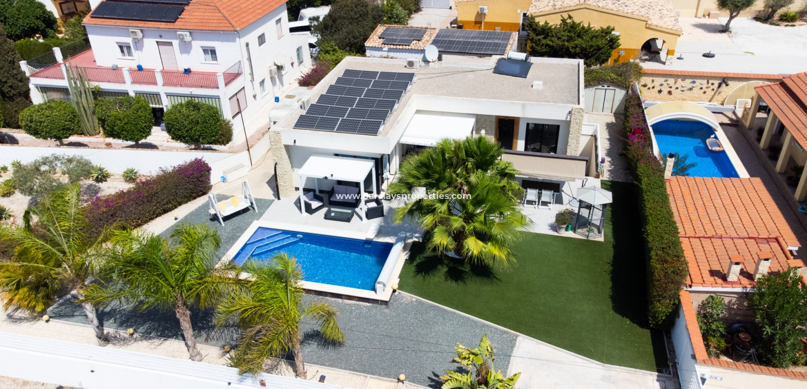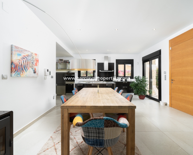 Met trots presenteren wij deze stijlvolle, verbluffende vrijstaande villa die het gemak biedt van wonen op één niveau, met drie ruime tweepersoonsslaapkamers en twee badkamers, gelegen in Urbanisatie La Escuera in een rustige omgeving nabij andere vrijstaande woningen, naast urbanisatie La Marina waar een breed scala aan voorzieningen te vinden is, op slechts een paar minuten rijden. Voor strandliefhebbers ➡️ een autorit van 5 minuten brengt u naar de gouden, met de blauwe vlag bekroonde stranden van “Playas de La Marina”.
