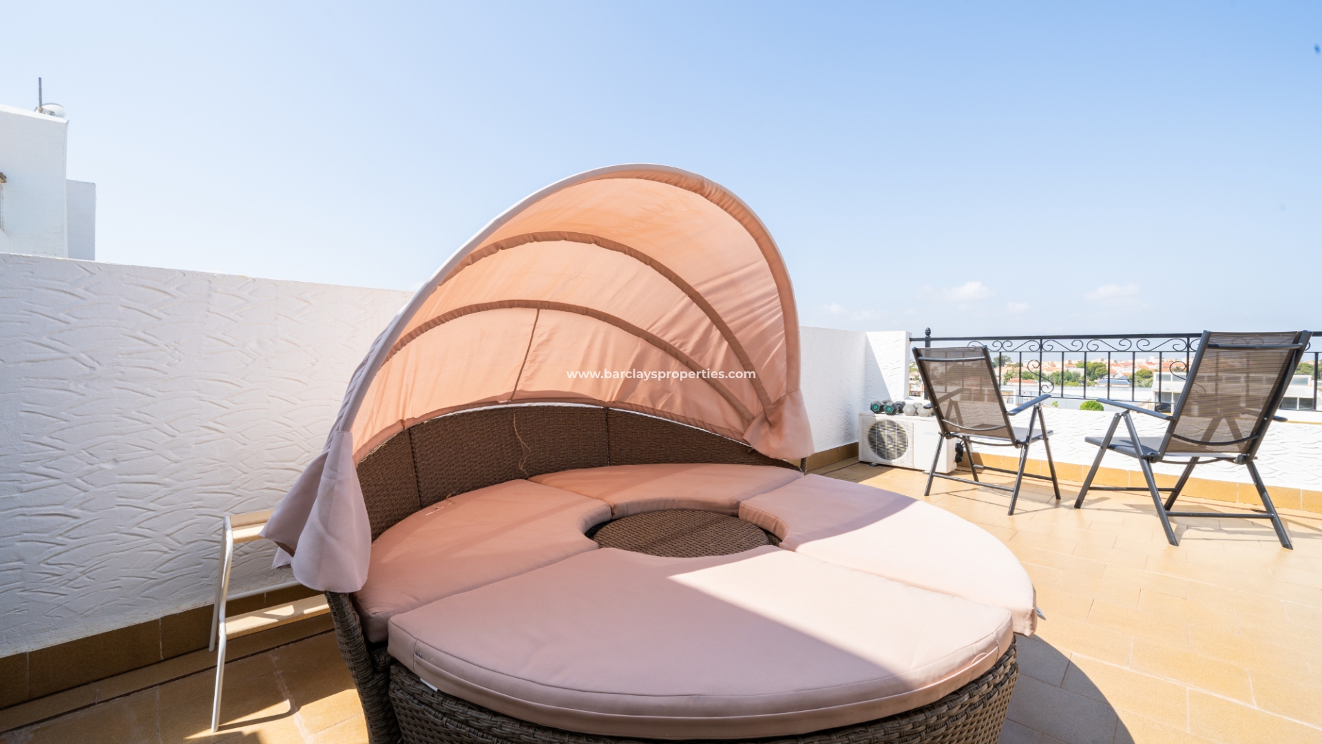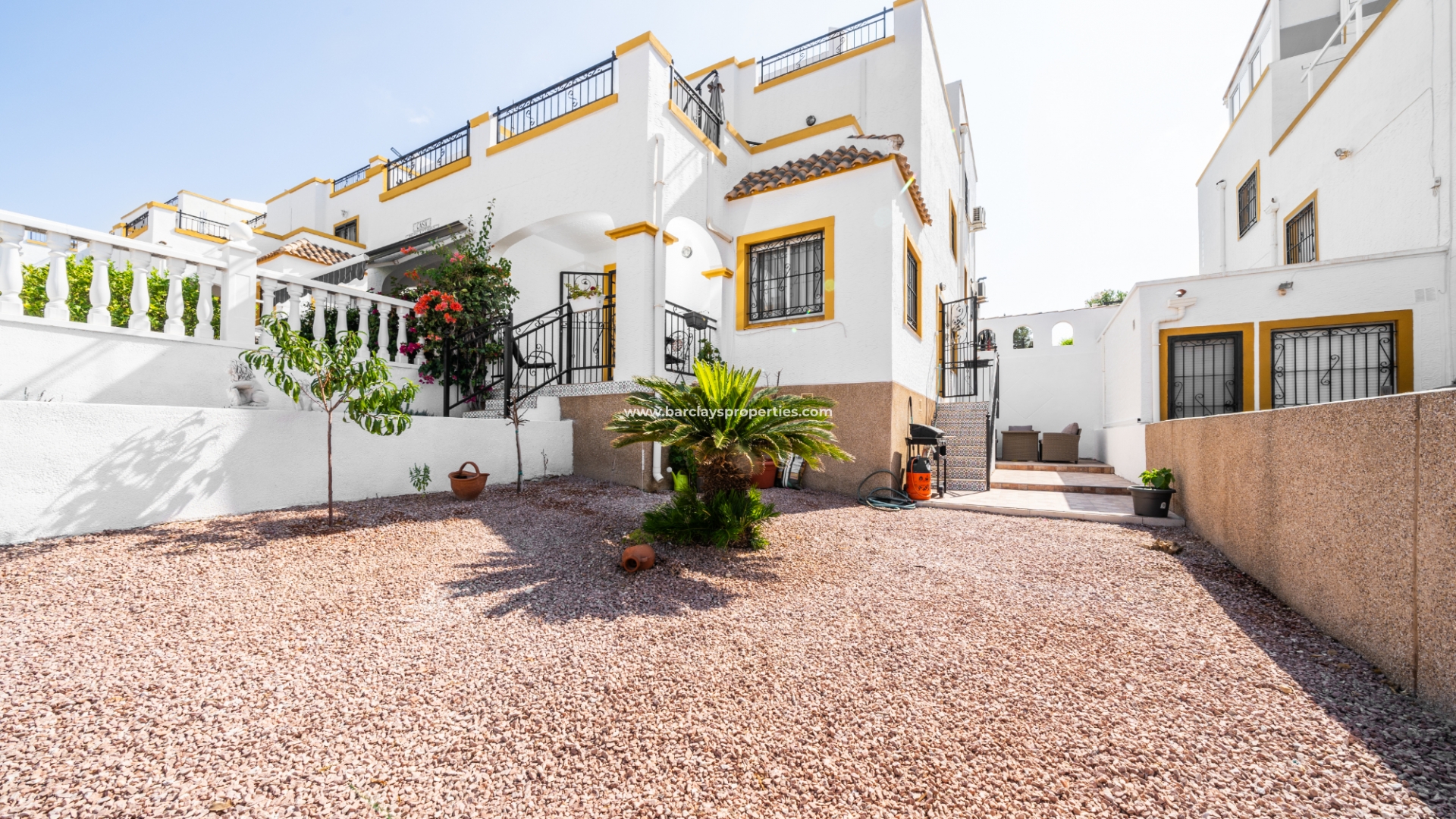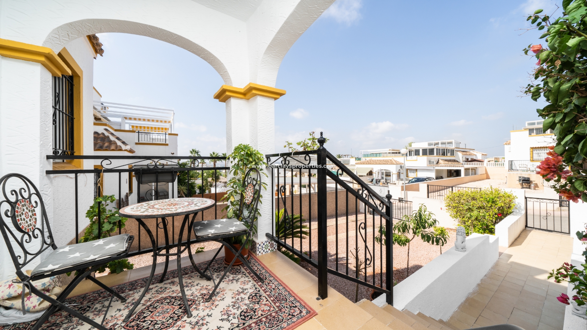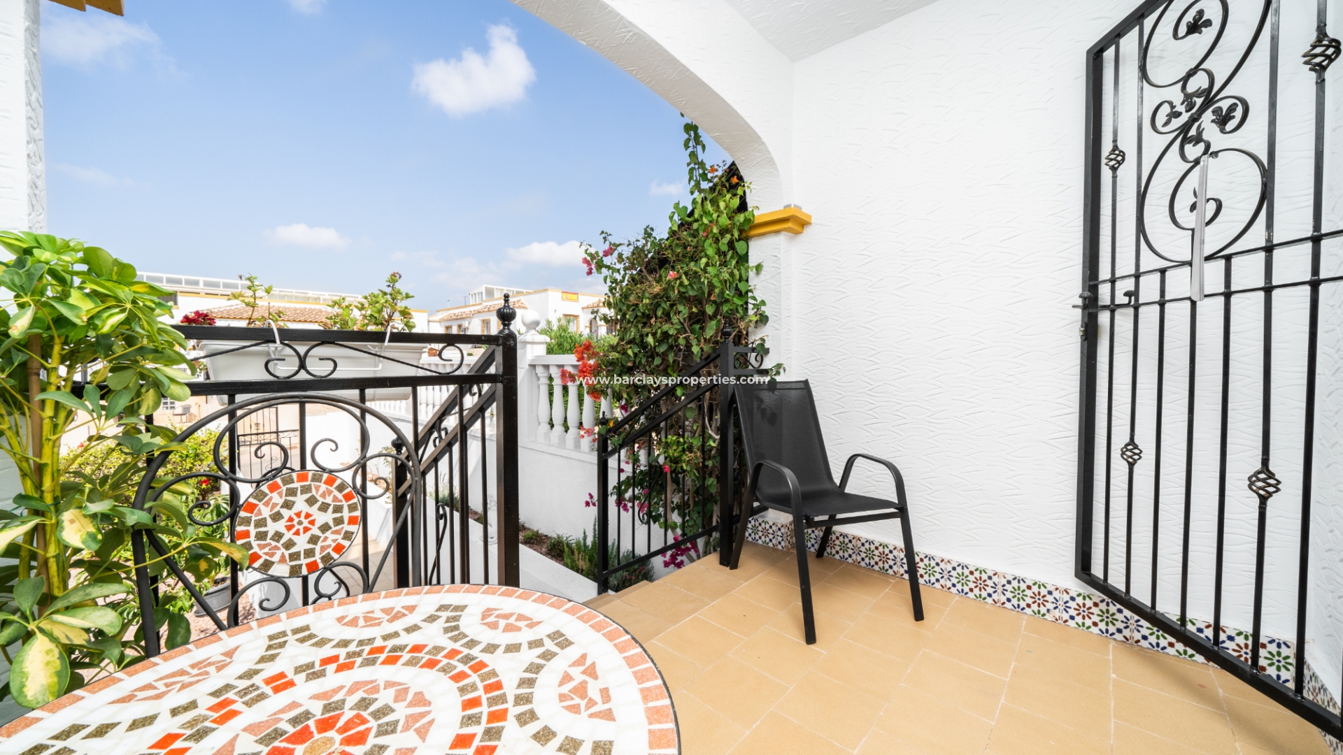 We presenteren deze populaire quad-woning, een "Isabel" model, gelegen in een privé gemeenschap op een toplocatie, zeer dicht bij het populaire Consum winkelgebied ✅ met een supermarkt en een verscheidenheid aan tapasbars, cafés en restaurants. De bewoners van deze gemeenschap hebben toegang tot een groot gemeenschappelijk zwembad omringd door goed onderhouden tuinen, en er zijn schaduwrijke plekken om te ontspannen en van de rustige omgeving te genieten.