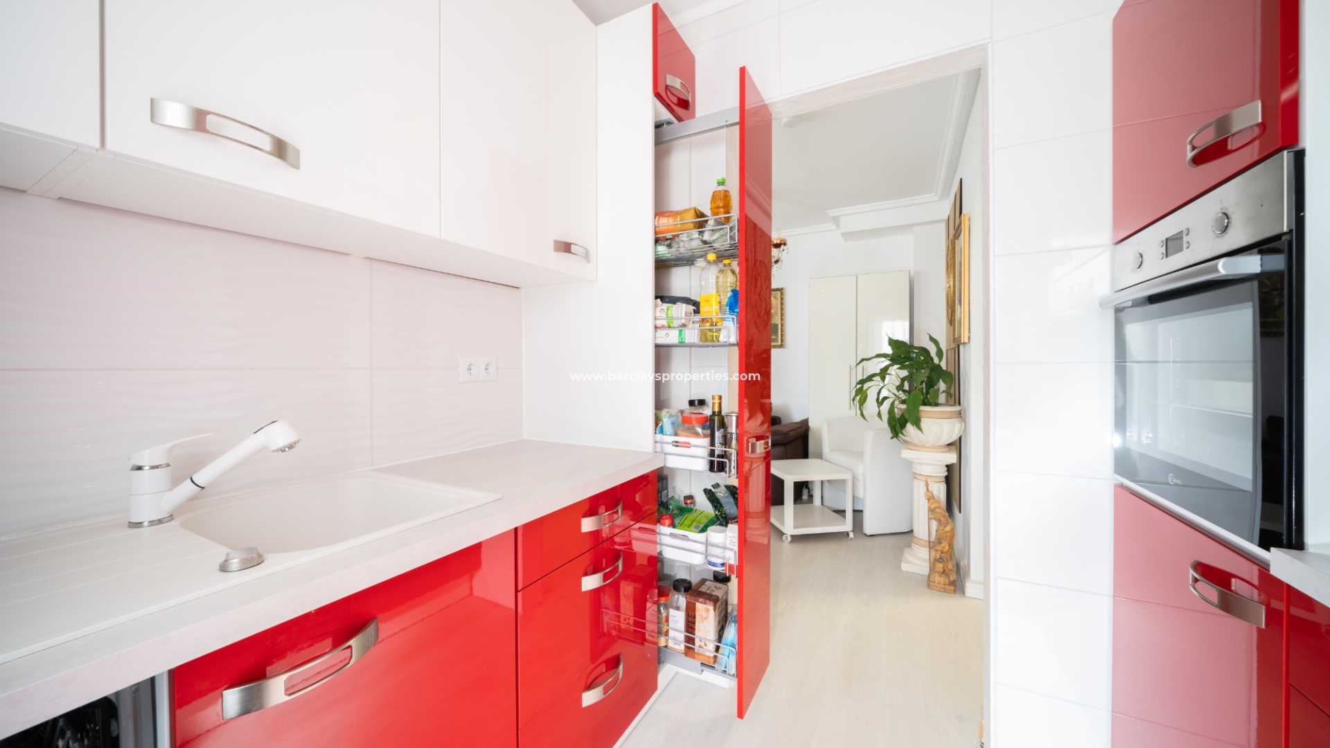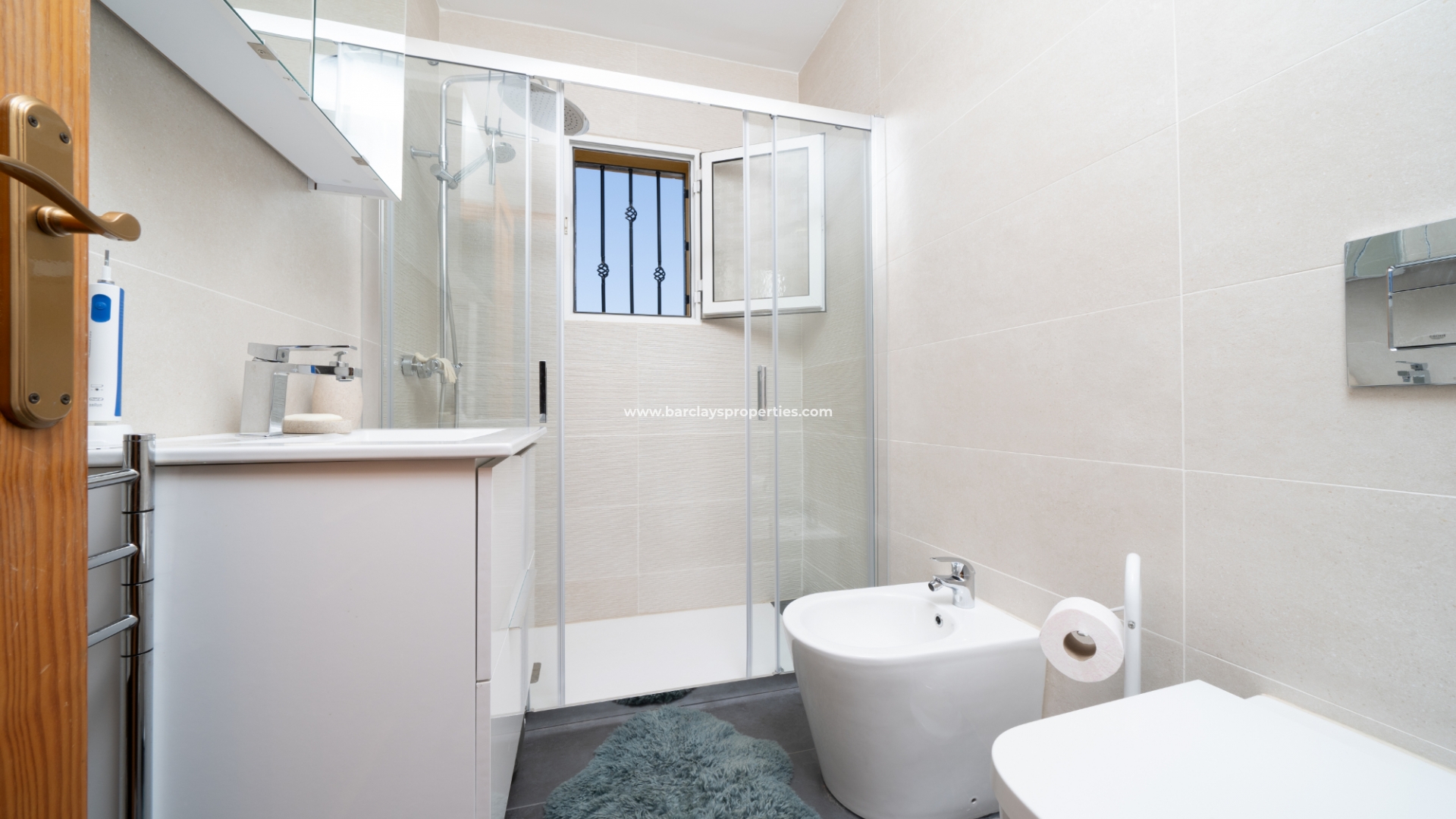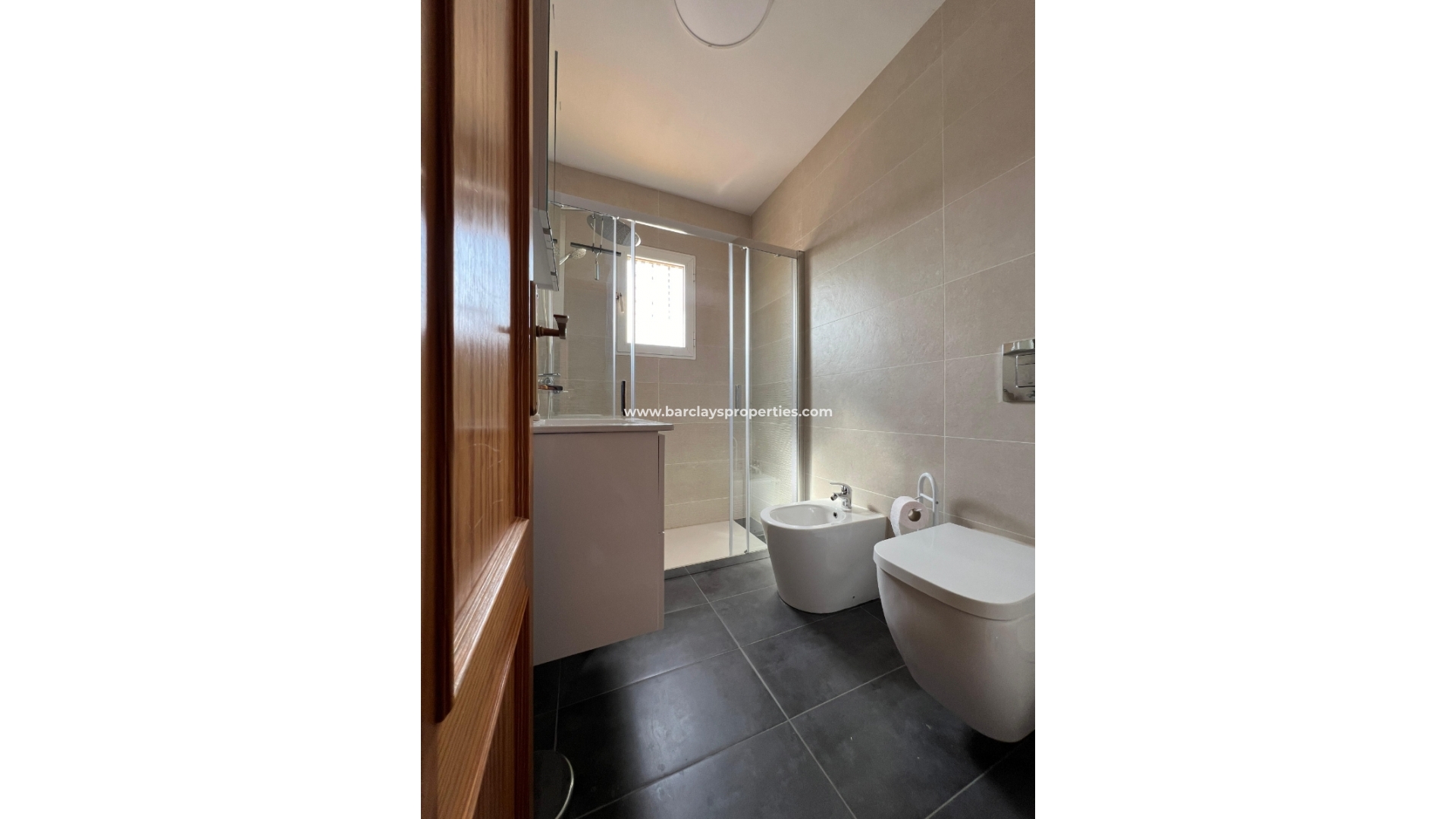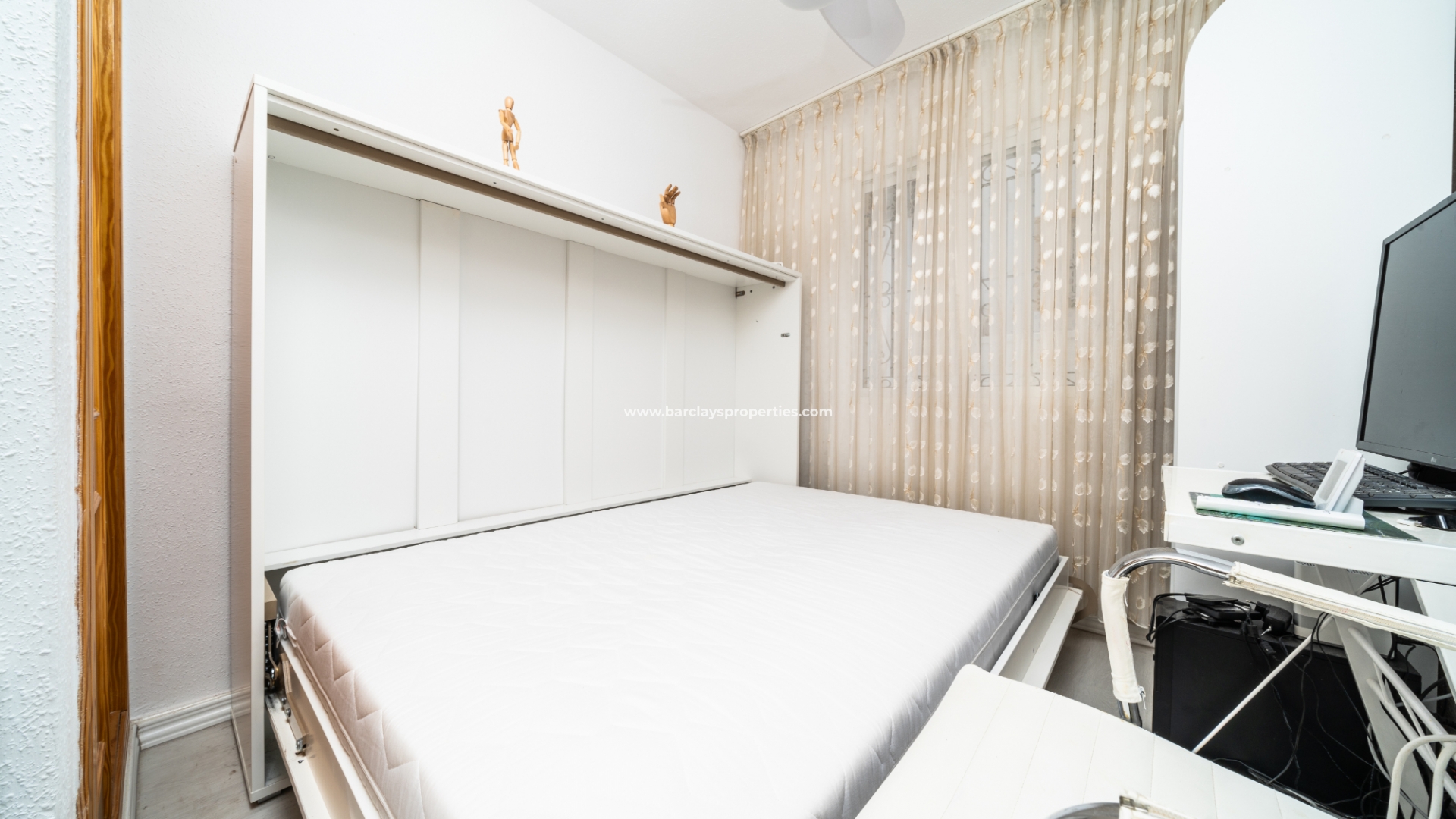 De keuken is onlangs gerenoveerd ✅ en volledig uitgerust met moderne apparatuur zoals een vaatwasser, kookplaat en oven, en heeft een deur naar de tuin. De woning biedt drie slaapkamers. Een daarvan heeft een plafondventilator en een ingebouwde kast met een opklapbed, momenteel in gebruik als kantoor. De hoofdslaapkamer heeft een ingebouwde kast en een privé zonneterras met uitzicht op het zwembad en de bergen. De derde slaapkamer, momenteel in gebruik als tweede woonkamer, heeft ook een ingebouwde kast die voldoende opbergruimte biedt.