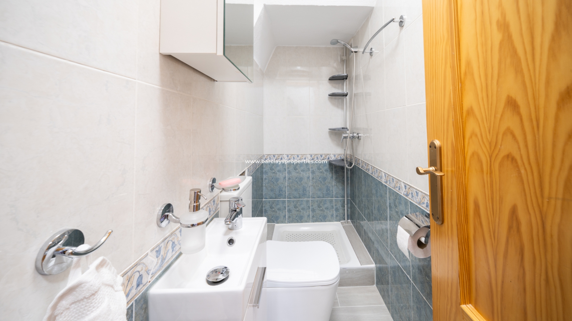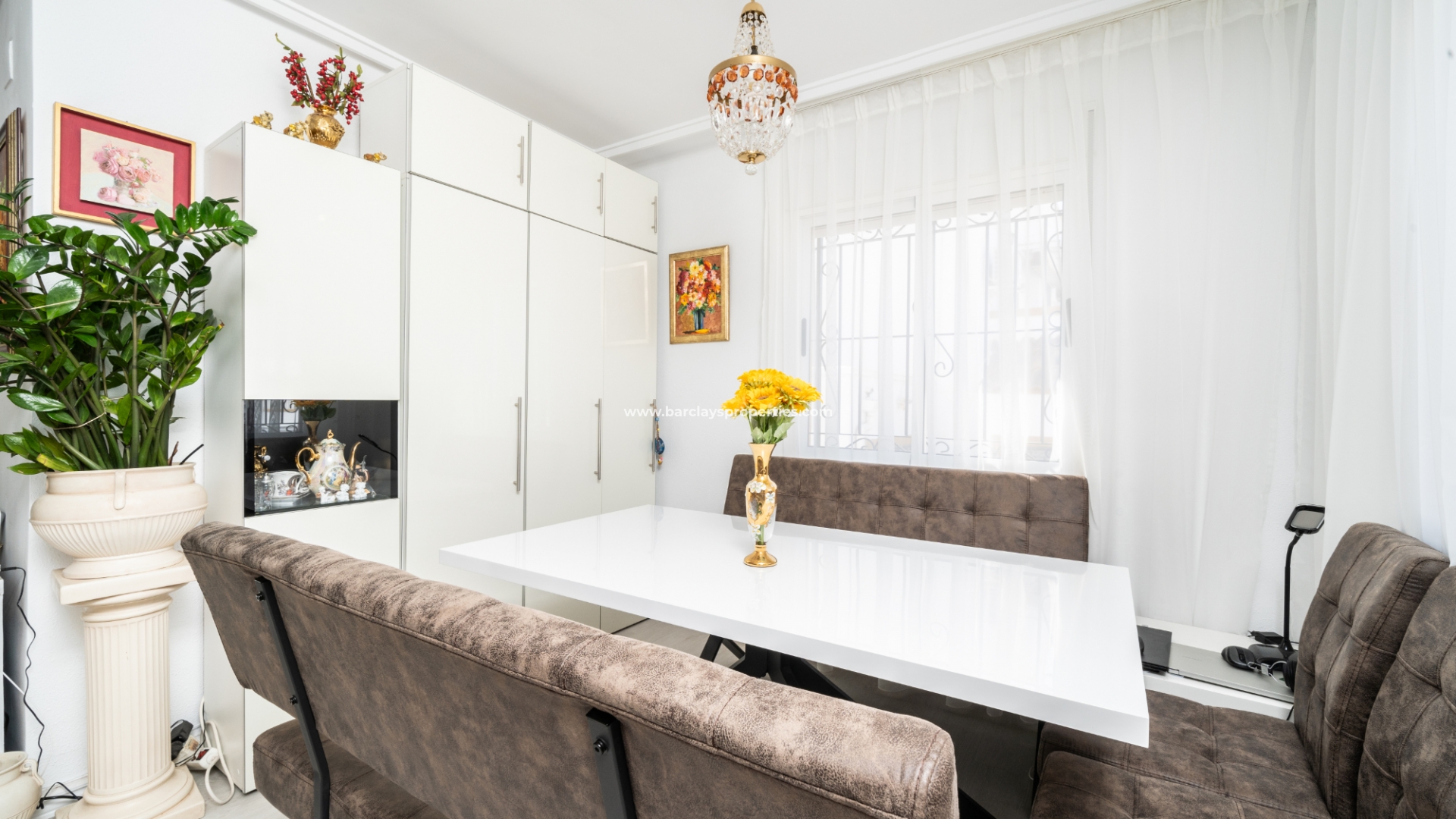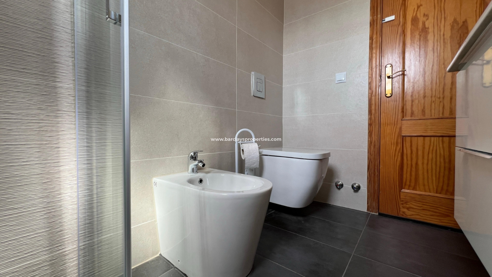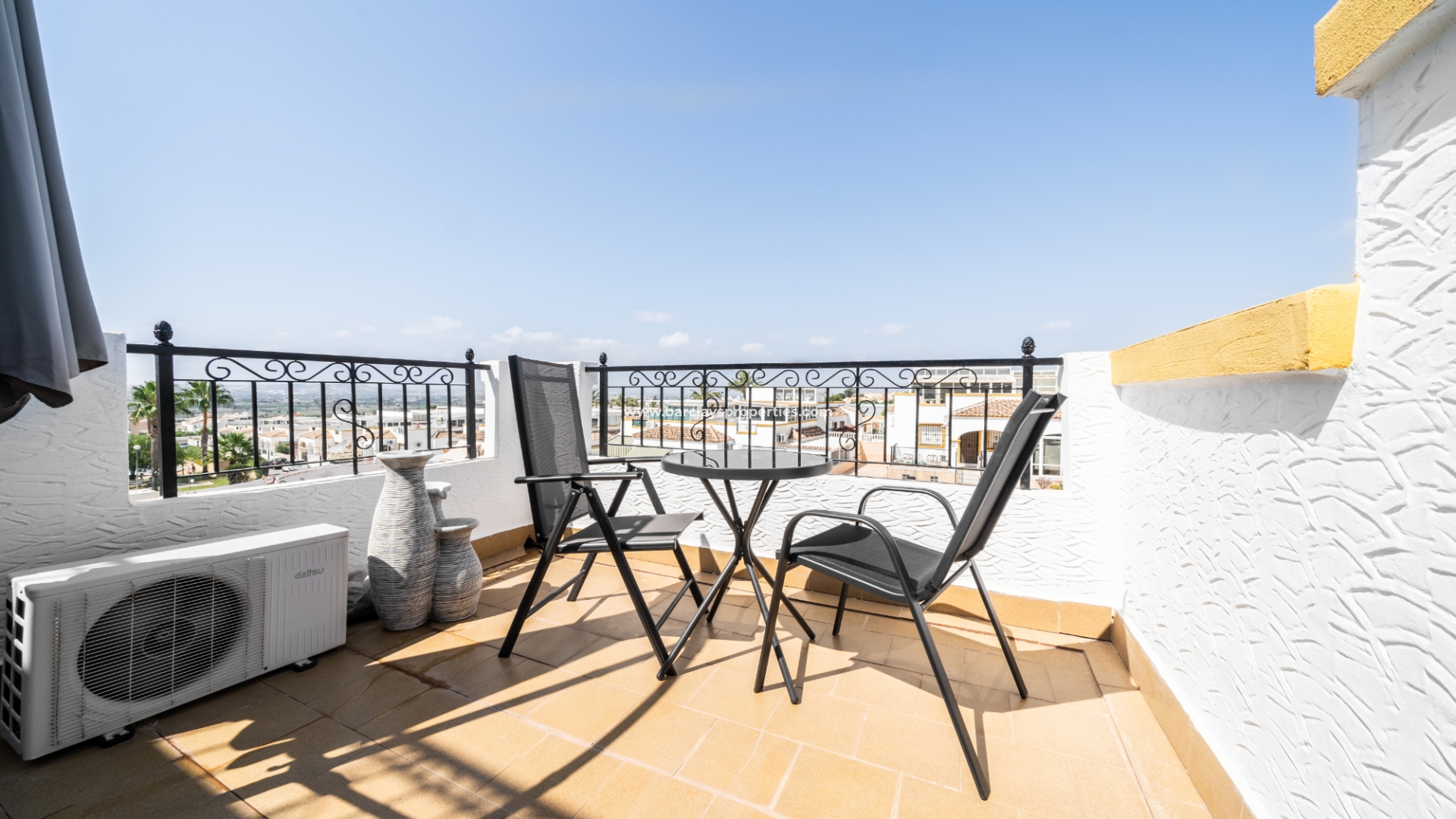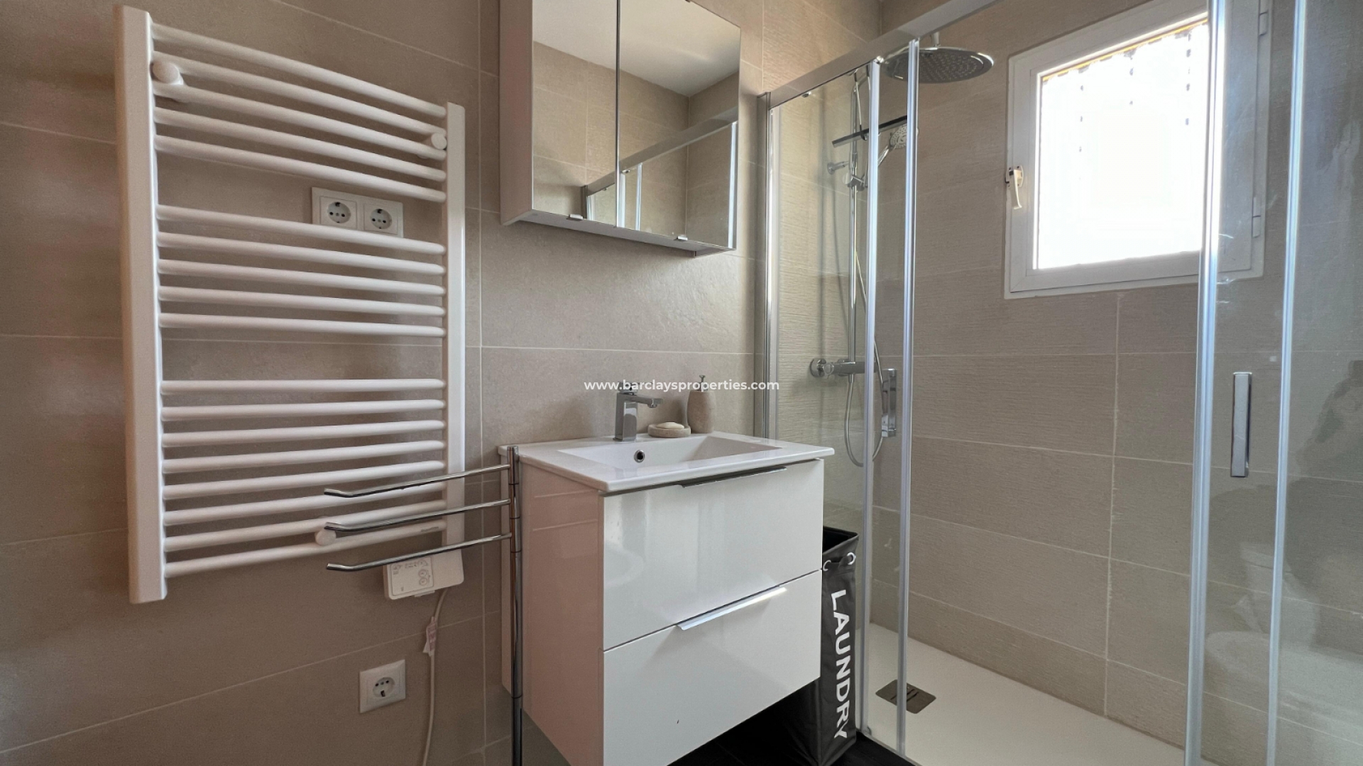 De keuken is onlangs gerenoveerd ✅ en volledig uitgerust met moderne apparatuur zoals een vaatwasser, kookplaat en oven, en heeft een deur naar de tuin. De woning biedt drie slaapkamers. Een daarvan heeft een plafondventilator en een ingebouwde kast met een opklapbed, momenteel in gebruik als kantoor. De hoofdslaapkamer heeft een ingebouwde kast en een privé zonneterras met uitzicht op het zwembad en de bergen. De derde slaapkamer, momenteel in gebruik als tweede woonkamer, heeft ook een ingebouwde kast die voldoende opbergruimte biedt.