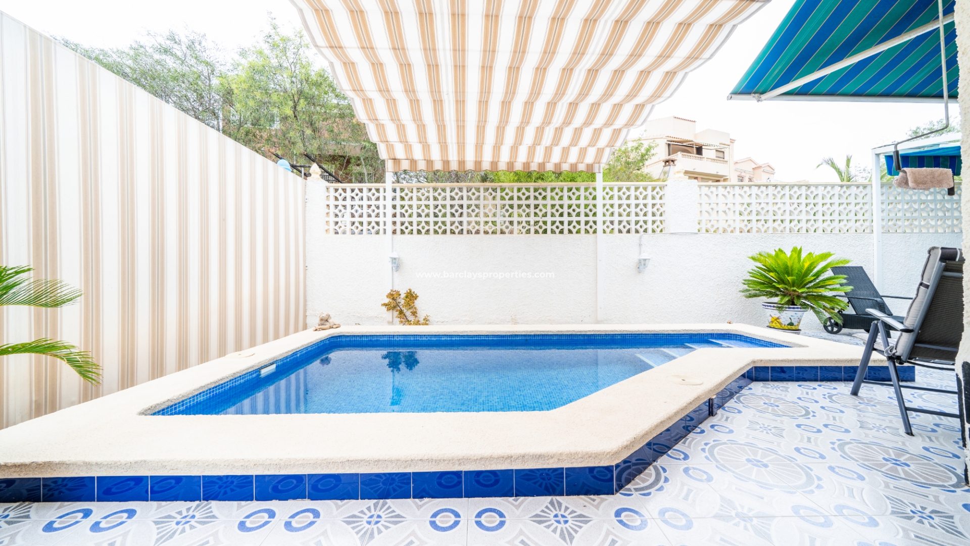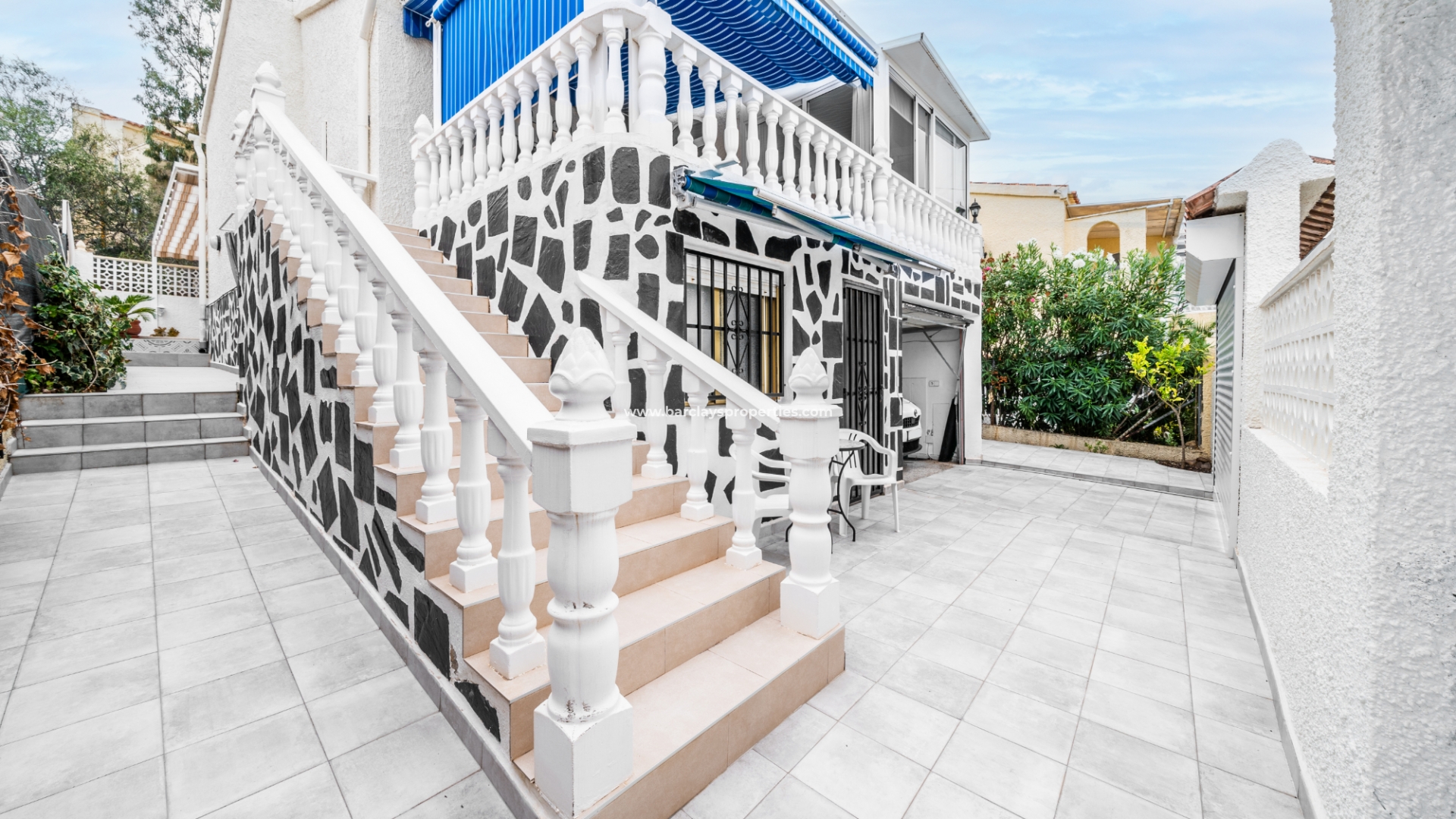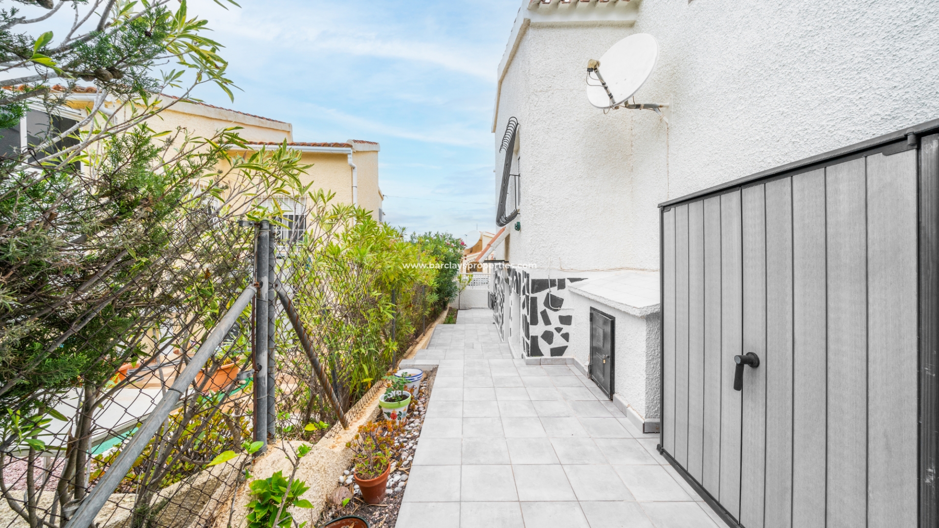 Deze charmante vrijstaande woning, bekend als model “Lola”, ligt op slechts 2 minuten lopen van de populaire “Consum Square” commerciële zone en is gelegen in een rustige cul-de-sac. Deze op het westen gelegen woning heeft ➡️ een privézwembad dat een vredig toevluchtsoord biedt aan de achterkant van het pand. Voor strandliefhebbers: het met een blauwe vlag bekroonde strand van La Marina Village en het ➡️ kristalheldere water van de Middellandse Zee bereik je met de auto in slechts 5 minuten! Twintig minuten verder langs de kustroute ligt de luchthaven van Alicante en het treinstation van Alicante voor al je reisbenodigdheden.