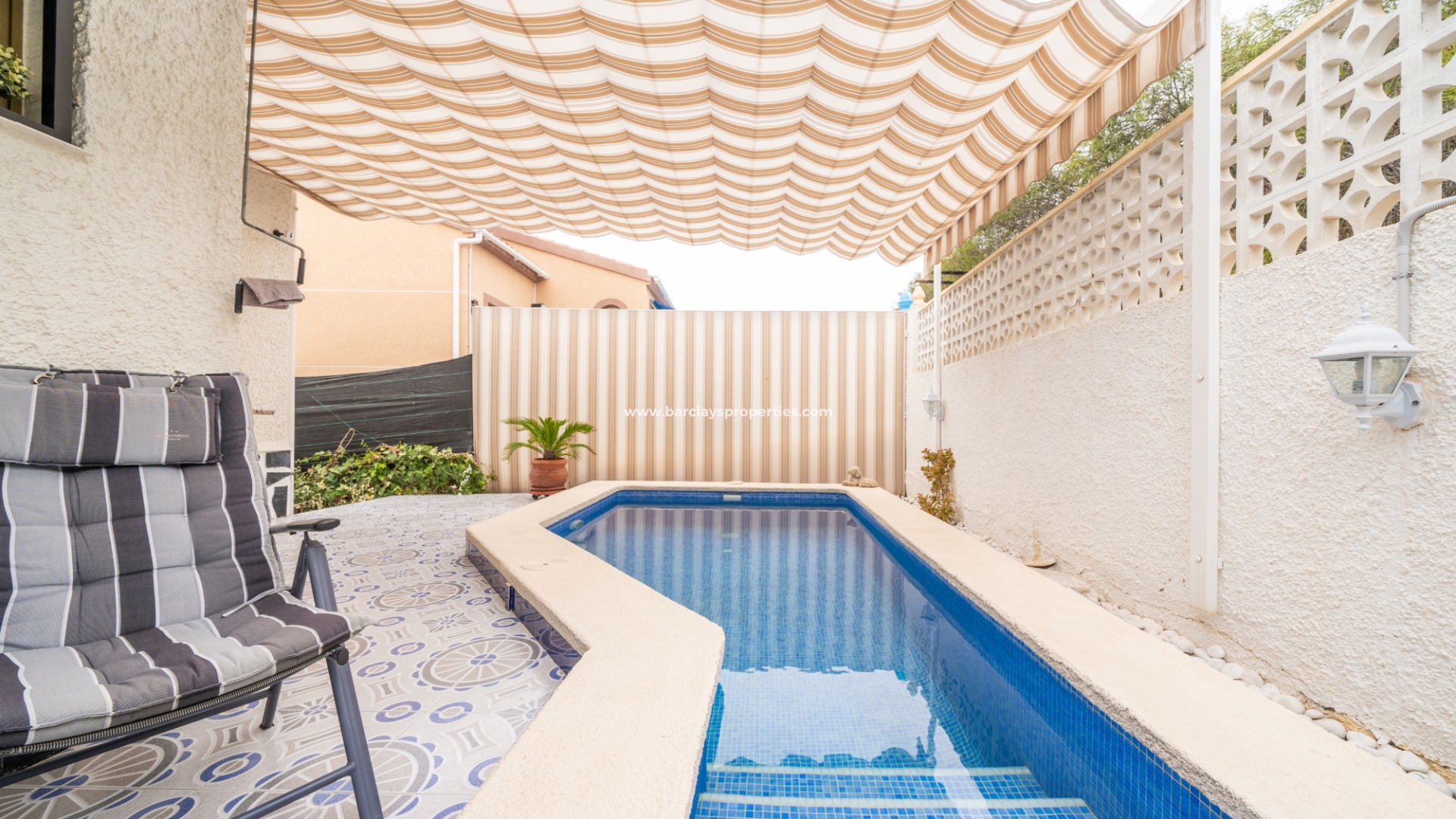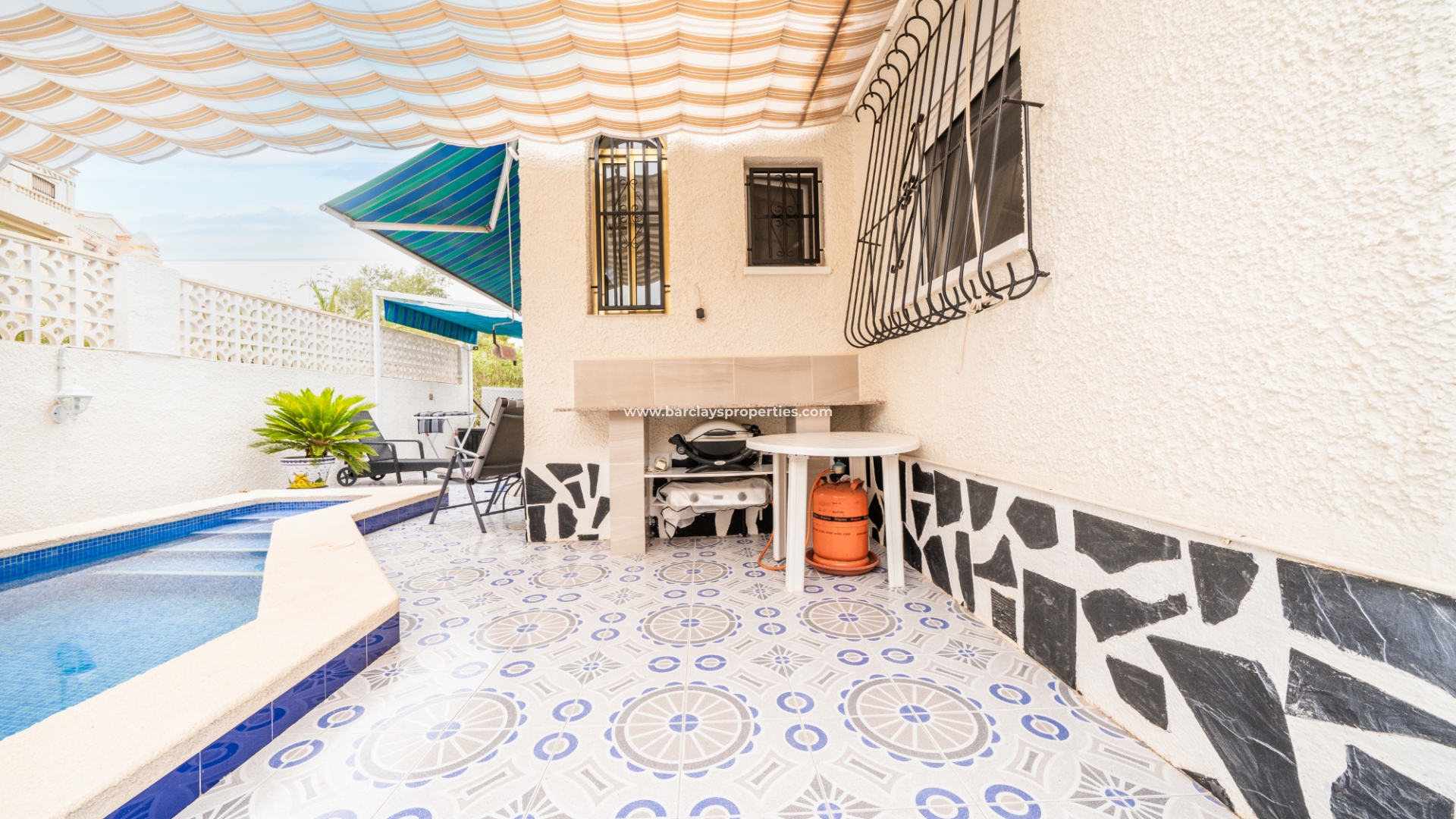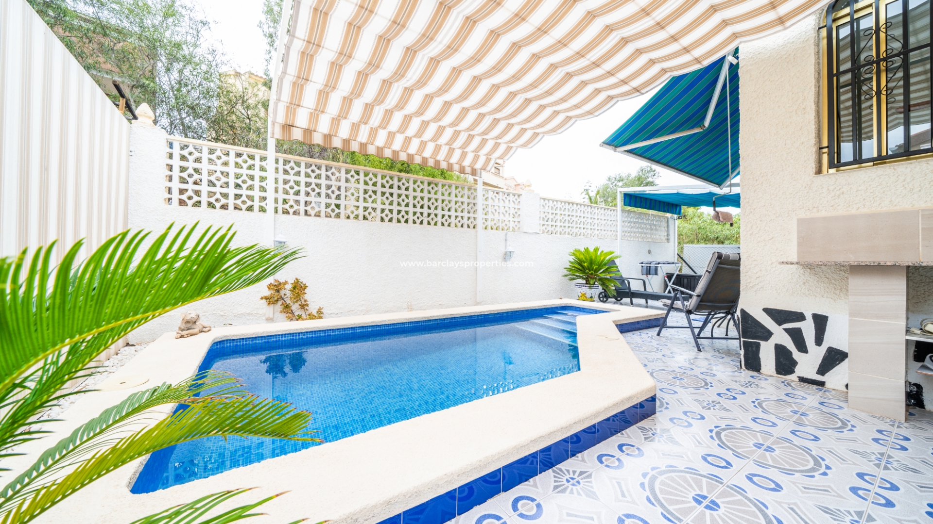 Deze charmante vrijstaande woning, bekend als model “Lola”, ligt op slechts 2 minuten lopen van de populaire “Consum Square” commerciële zone en is gelegen in een rustige cul-de-sac. Deze op het westen gelegen woning heeft ➡️ een privézwembad dat een vredig toevluchtsoord biedt aan de achterkant van het pand. Voor strandliefhebbers: het met een blauwe vlag bekroonde strand van La Marina Village en het ➡️ kristalheldere water van de Middellandse Zee bereik je met de auto in slechts 5 minuten! Twintig minuten verder langs de kustroute ligt de luchthaven van Alicante en het treinstation van Alicante voor al je reisbenodigdheden.