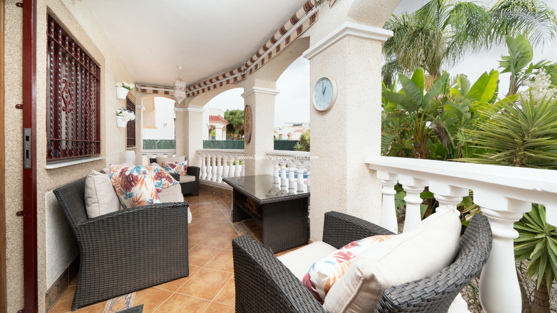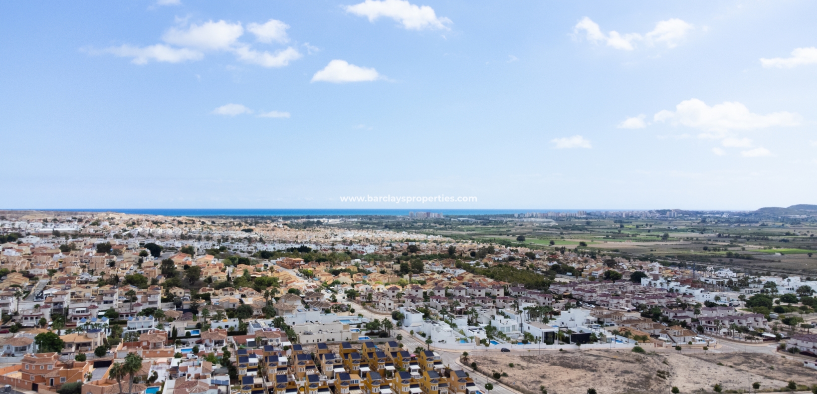 Deze prachtige villa van het model "Maria", gelegen in het gewilde Urb La Marina, San Fulgencio, biedt een ideaal familiehuis met een scala aan moderne voorzieningen en buitenruimtes, perfect om te genieten van de mediterrane levensstijl. Deze mooie villa ligt op een gunstige locatie in de buurt van lokale voorzieningen zoals winkels, supermarkten, een dokterspraktijk, een apotheek en diverse bars en restaurants, wat het de perfecte combinatie van comfort en gemak maakt.