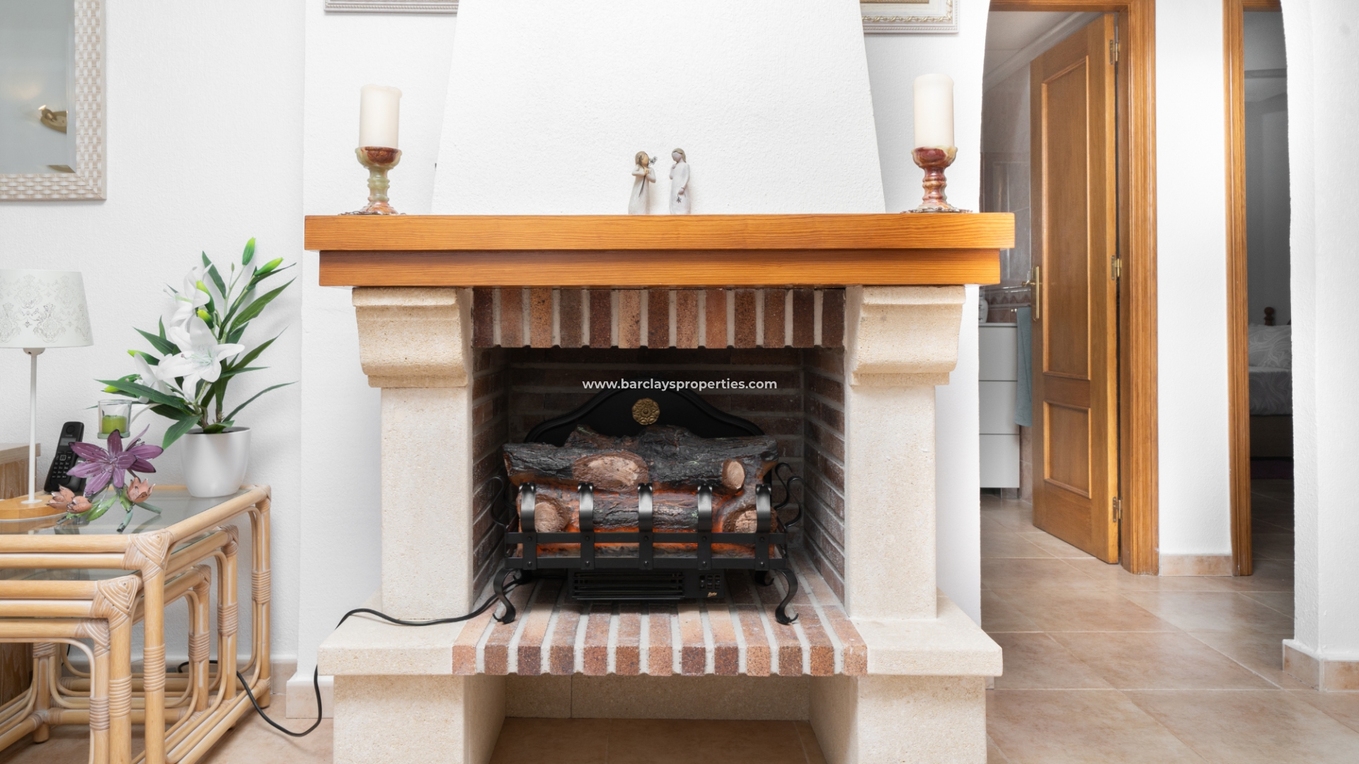 Binnen is de ruime woonkamer gevuld met natuurlijk licht, dankzij de grote ramen en hoge plafonds. De kamer beschikt ook over een open haard en ✅geïntegreerde airconditioning voor comfort het hele jaar door.