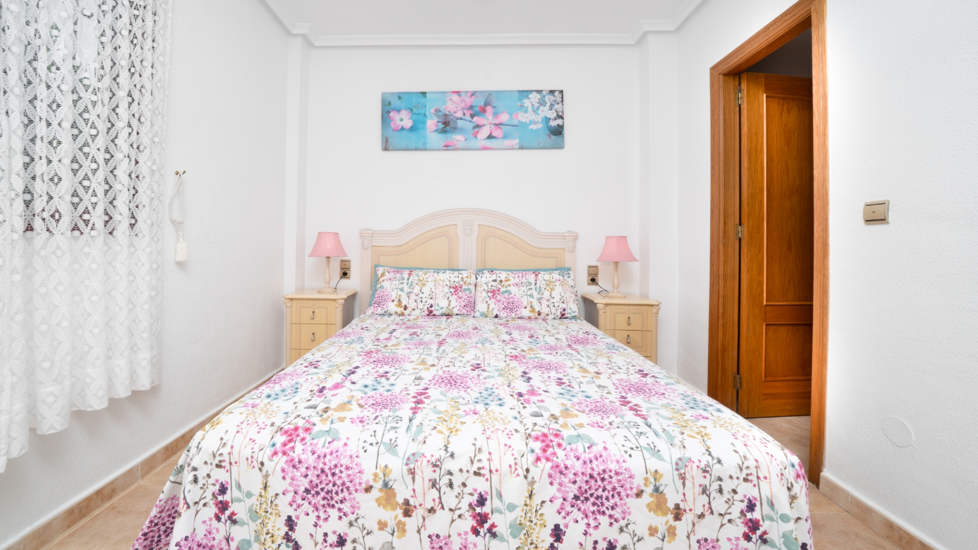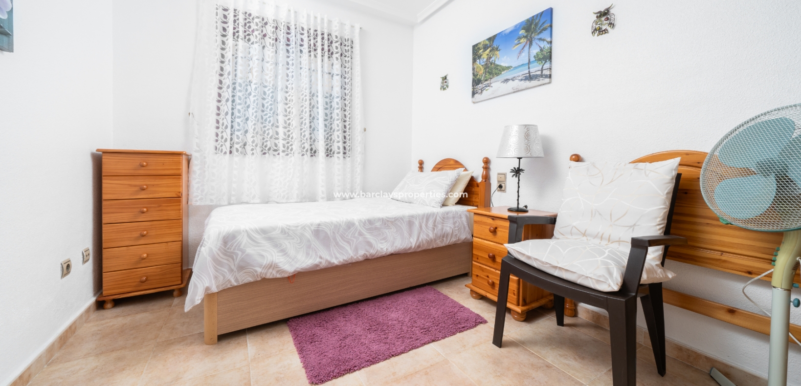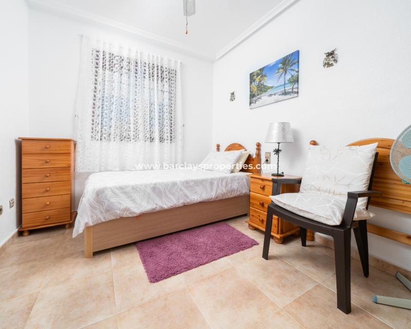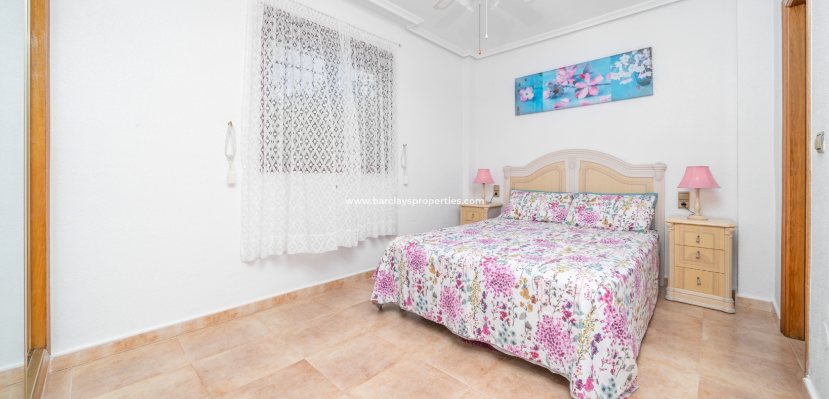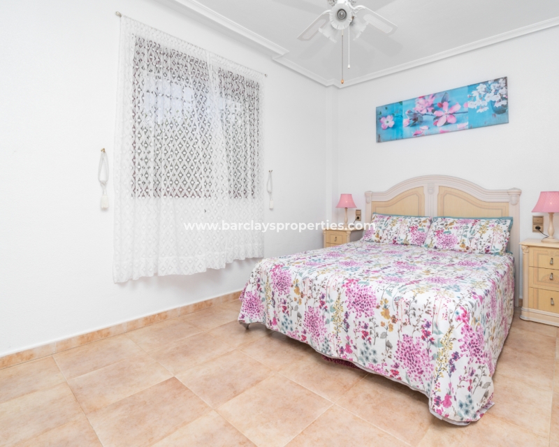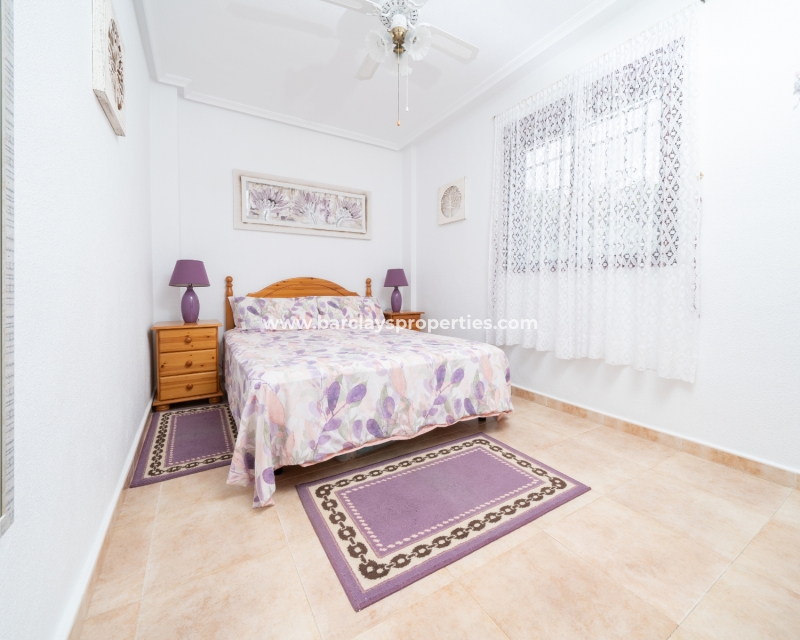 - Slaapkamer 3: Nog een ruime tweepersoonsslaapkamer met inbouwkasten en een plafondventilator.