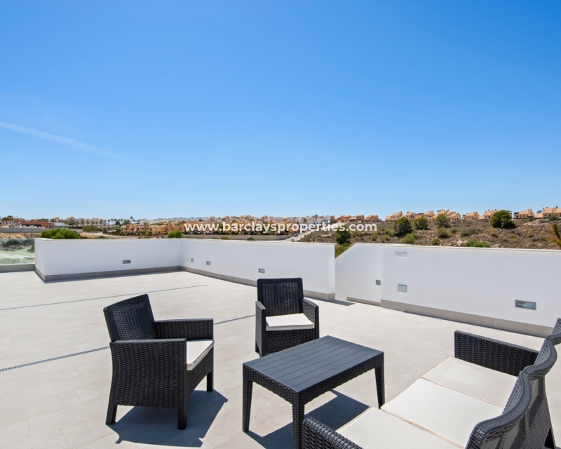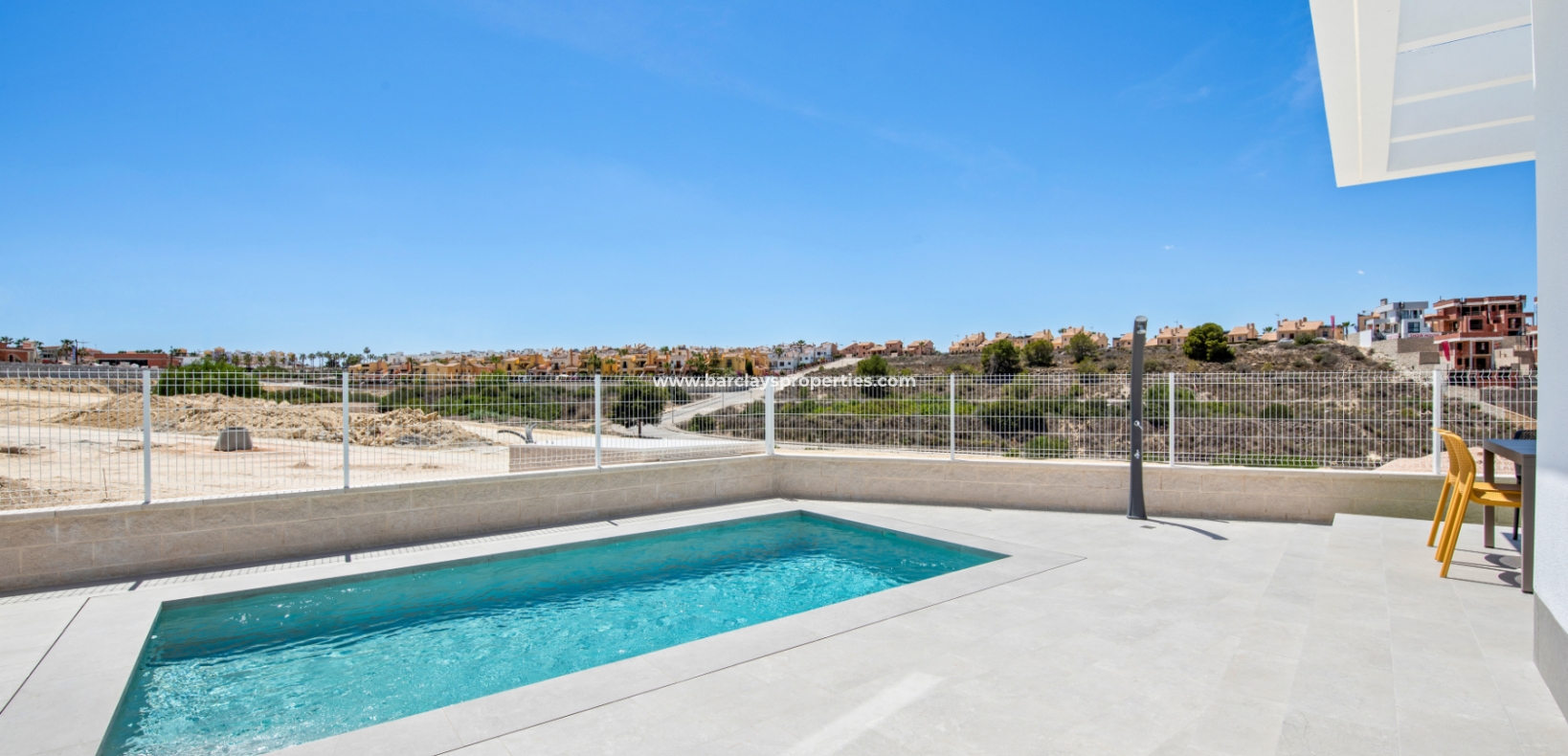 Deze moderne, ➡️ gelijkvloerse nieuwbouw villa in La Finca Golf, Algorfa, biedt eigentijds wonen in een rustige maar gunstige locatie. De woning beschikt over 3 ruime slaapkamers, 2 strakke badkamers en een open keuken verspreid over 104 m² woonoppervlak, gelegen op een perceel van 252 m². De privétuin omvat een prachtig zwembad, ideaal voor ontspanning en entertainment.