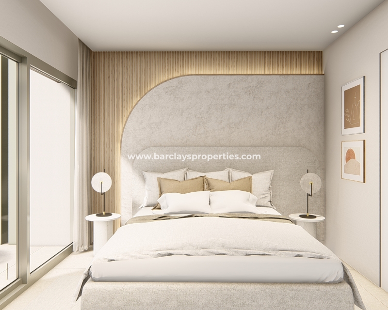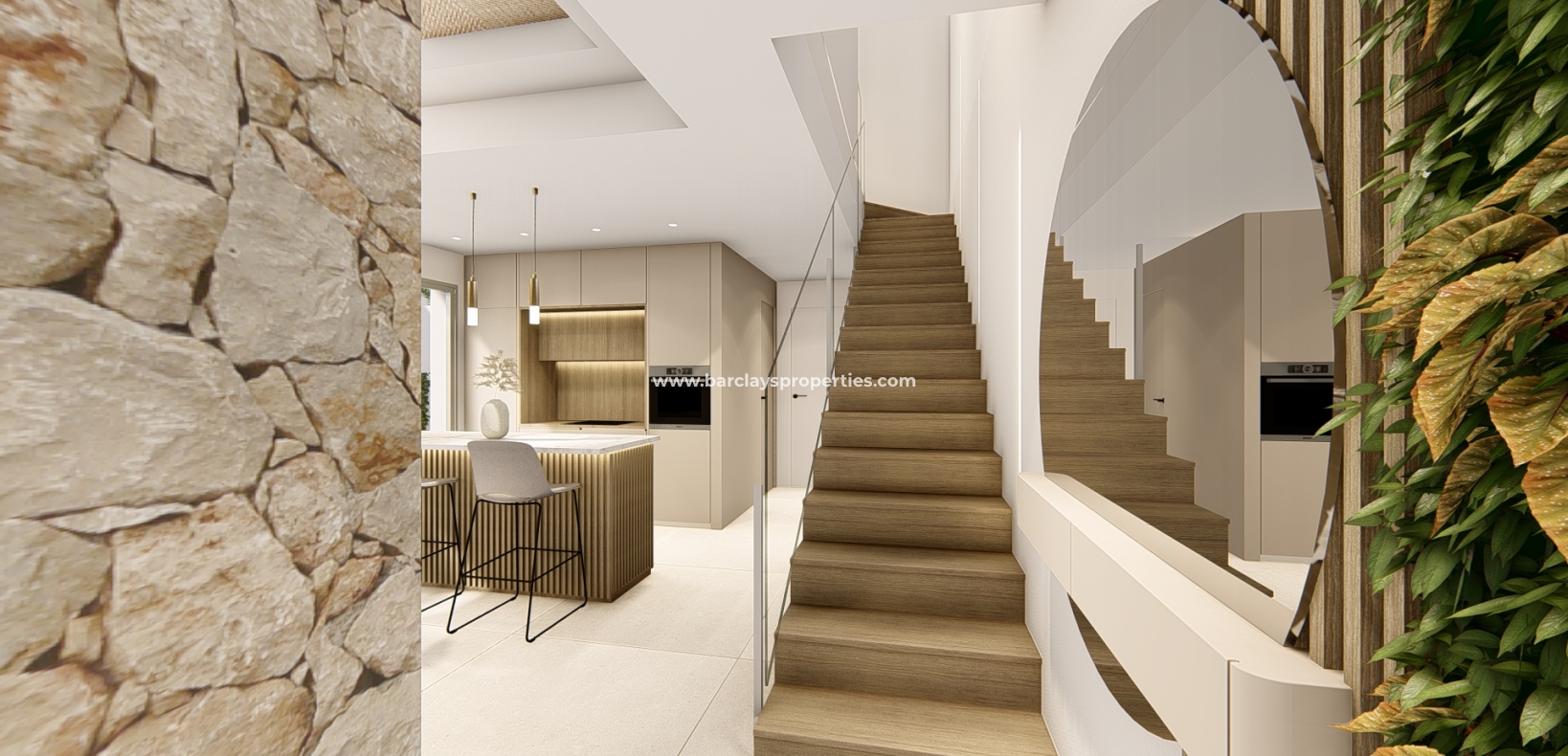 Deze nieuwbouwvilla's met twee verdiepingen in Ciudad Quesada bieden een perfecte mix van stijl en gemak. Met 93 m² woonoppervlak beschikken ze over 3 slaapkamers, 2 badkamers en een open keuken. De privé-tuin heeft een zwembad, buitendouche en parkeerplaats. Slechts 500 meter van voorzieningen en 8 km van het strand, hebben deze woningen hoogwaardige kenmerken: versterkte veiligheidsdeuren, elektrische rolluiken, dubbel glas, airconditioning en een garantie van 10 jaar. Het aerothermische watersysteem zorgt voor energie-efficiëntie, terwijl de rustige maar toegankelijke locatie dit een geweldige investering voor verhuur maakt.