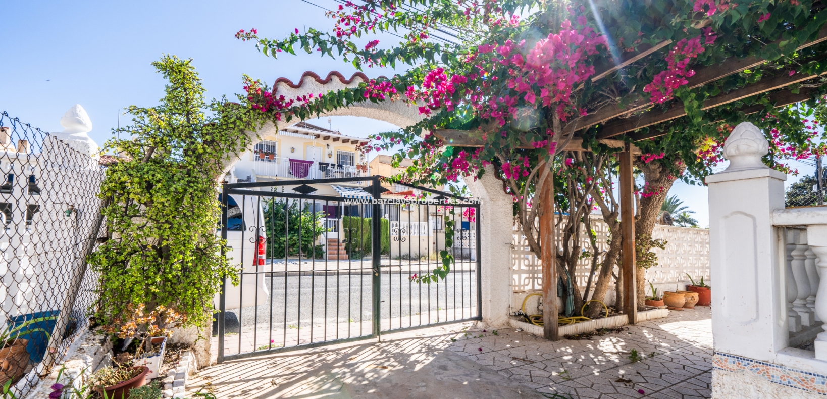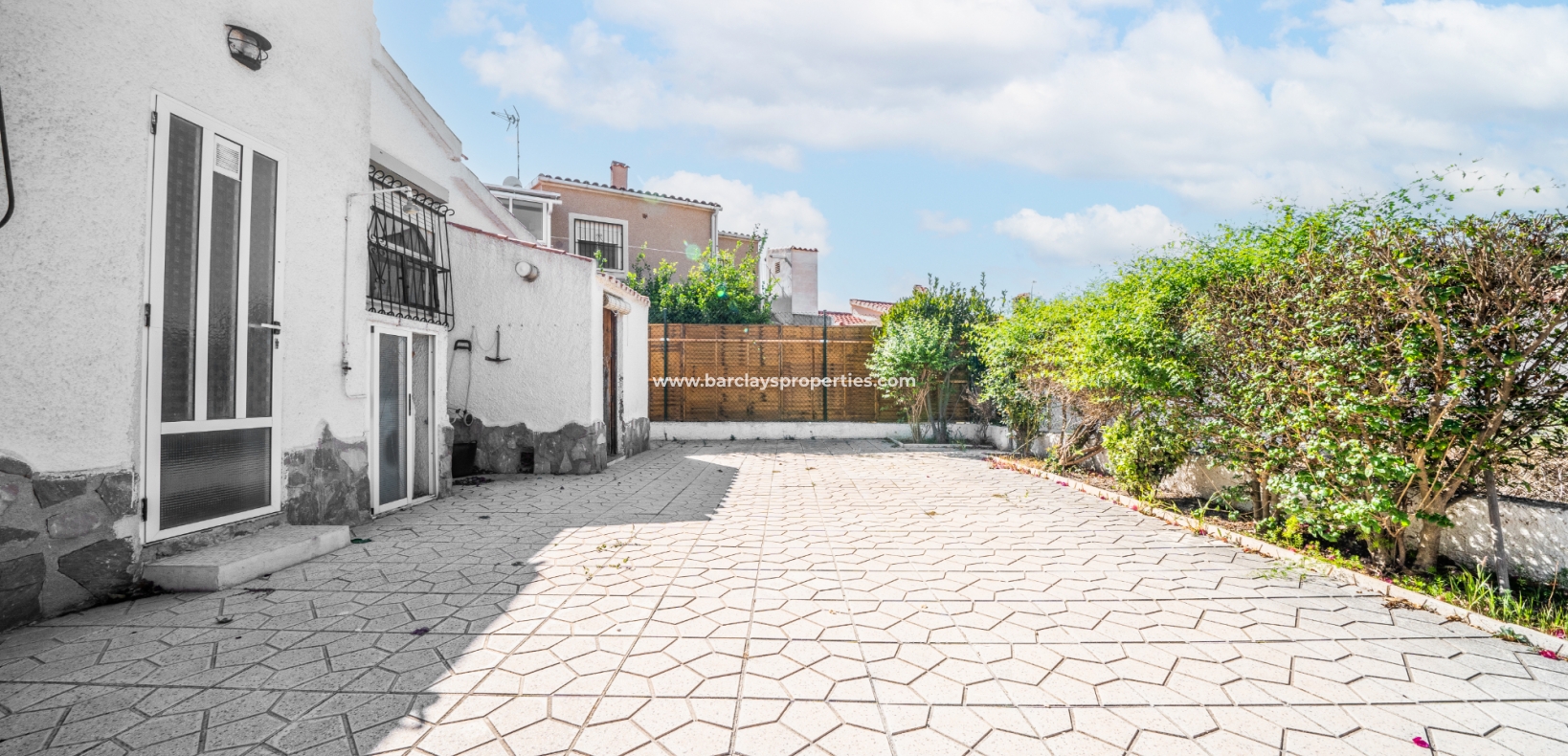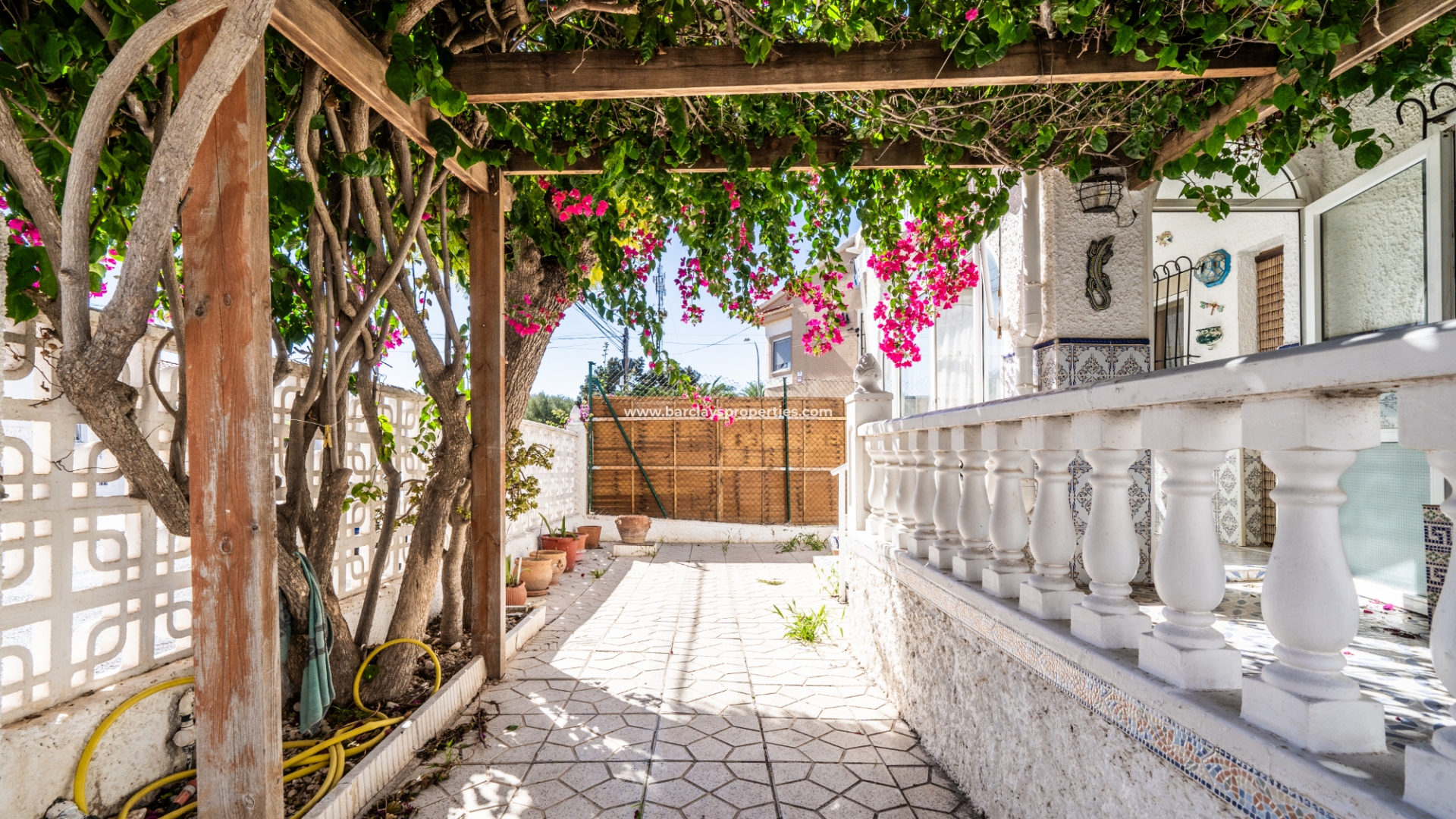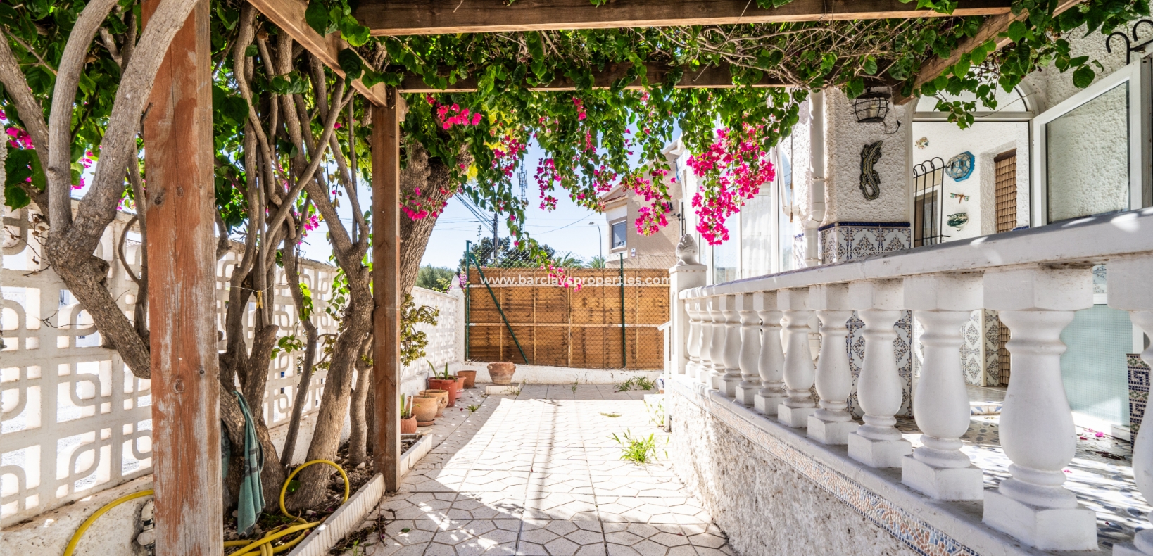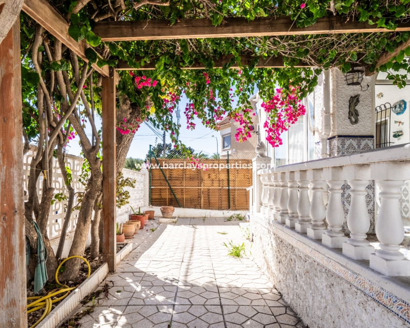 Gelegen op een volledig betegeld, vlak perceel biedt deze woning drie slaapkamers en één badkamer. De oostgerichte woning heeft een houten pergola met prachtige bougainvillea die een schaduwrijk gebied biedt en doorloopt naar het zonneterras, perfect voor ontspanning in de buitenlucht. Een parkeerplaats op eigen terrein en een buitenbergruimte zorgen voor extra functionaliteit.
