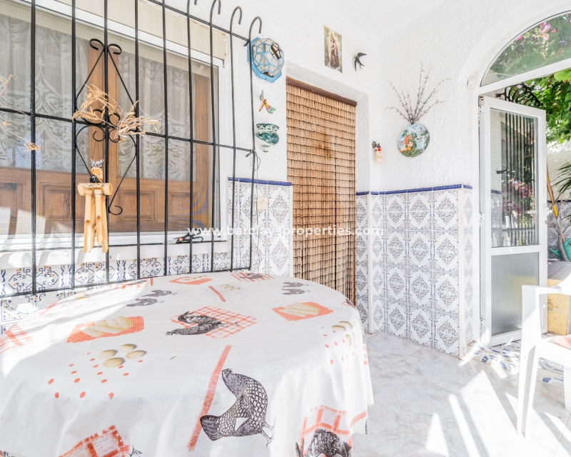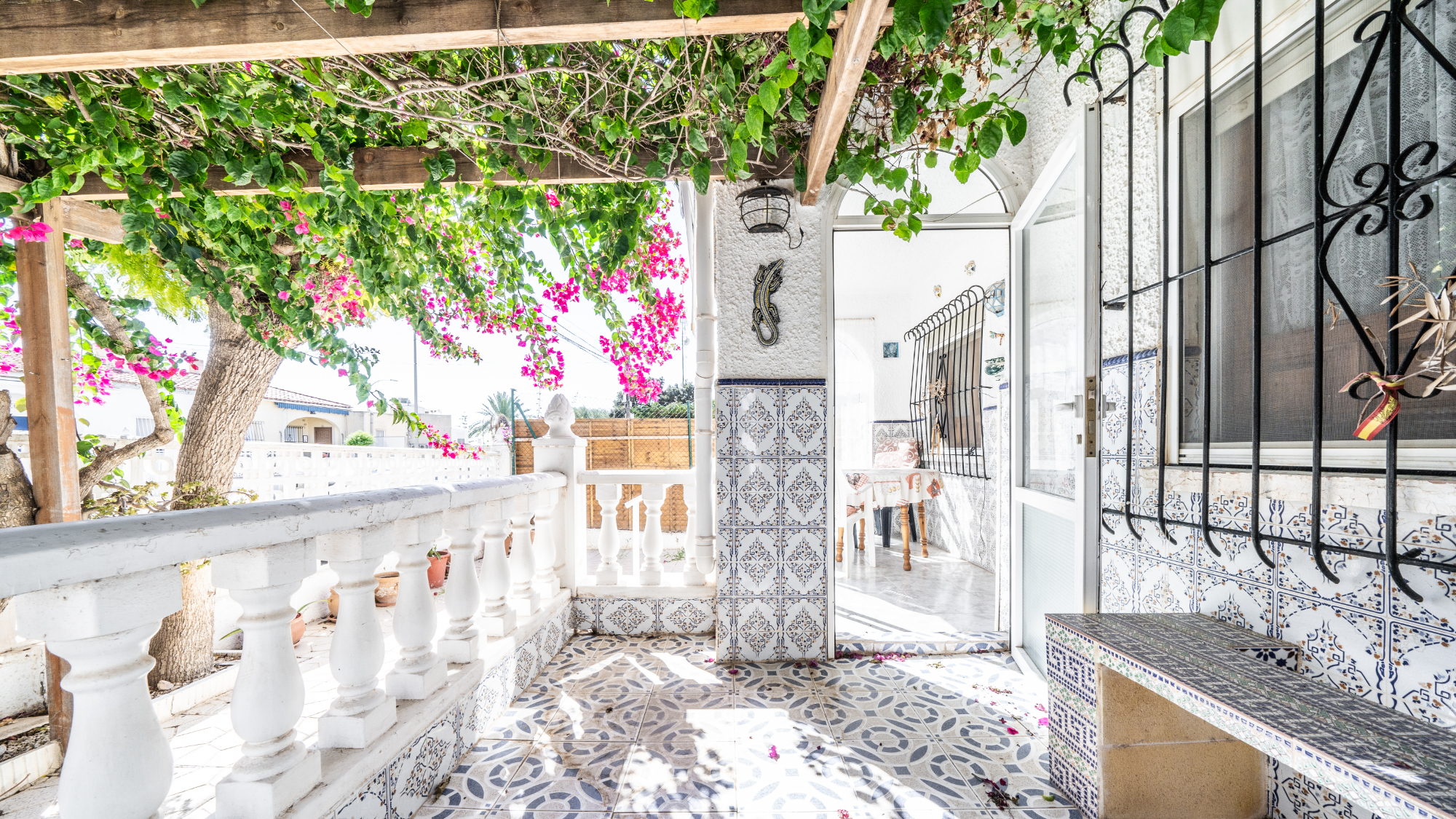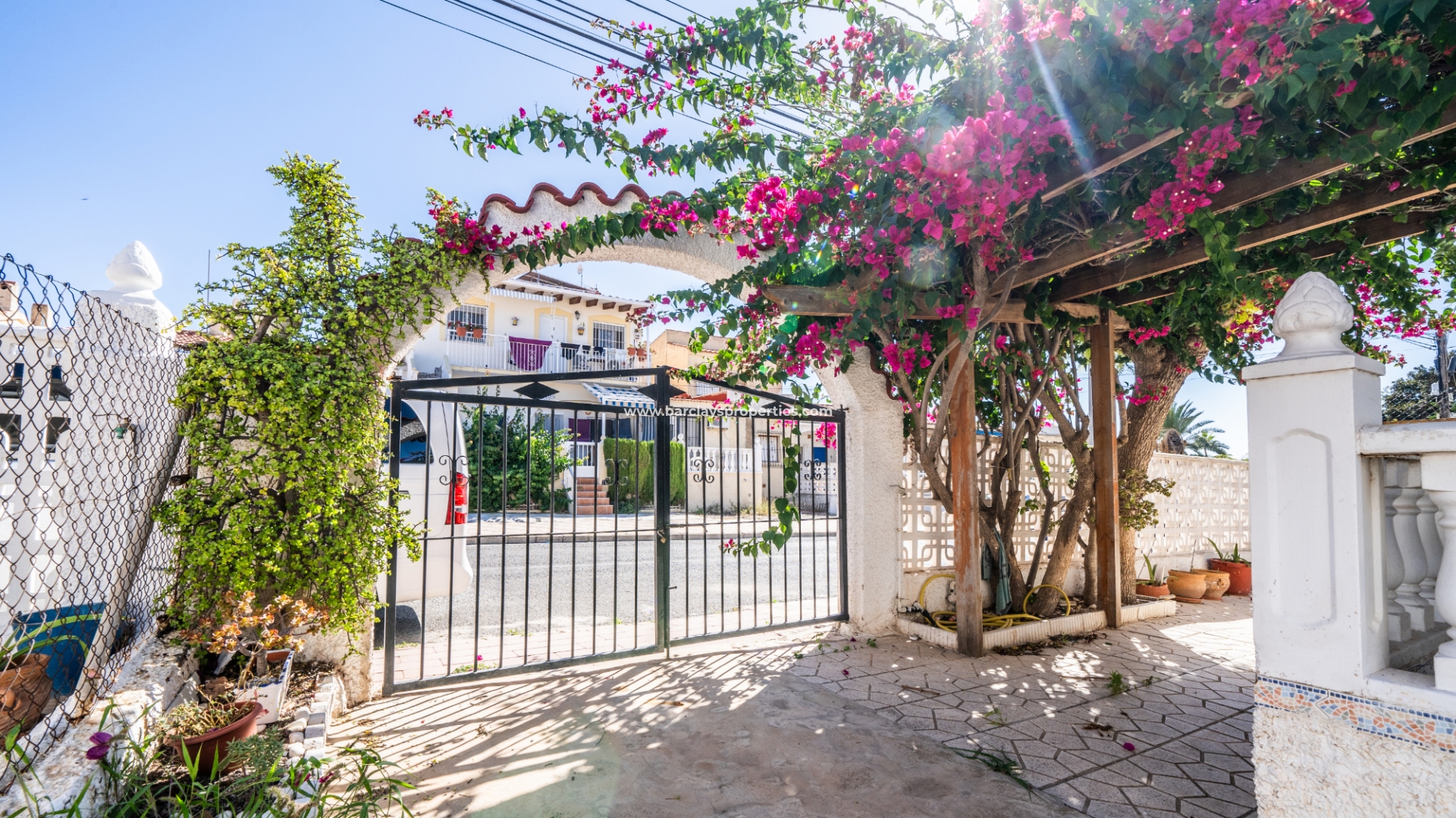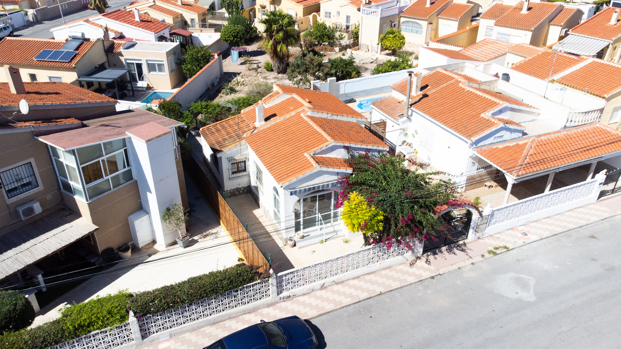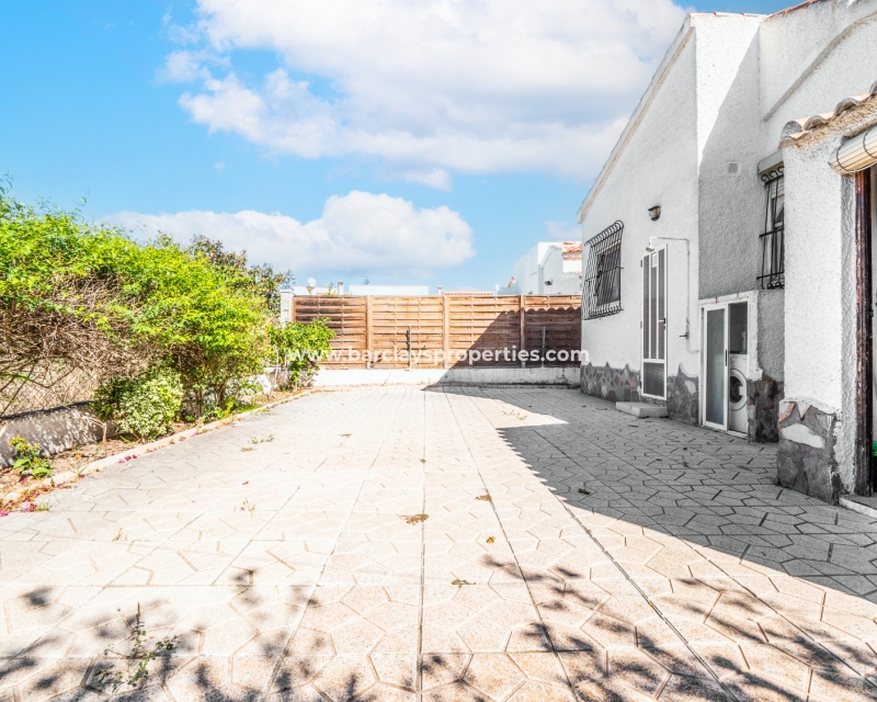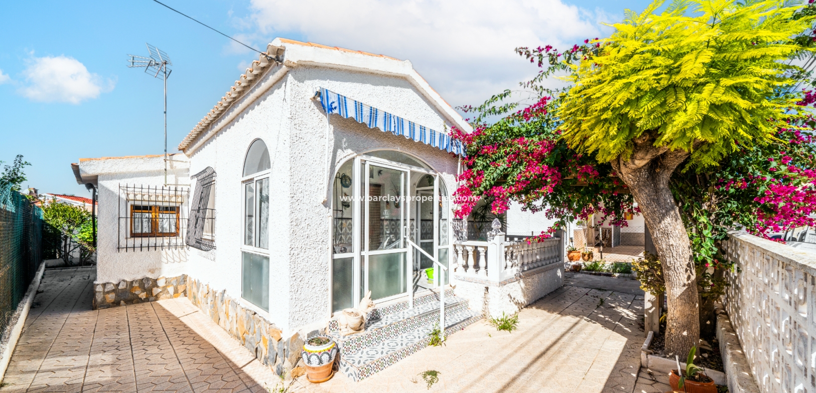 Gelegen op een volledig betegeld, vlak perceel biedt deze woning drie slaapkamers en één badkamer. De oostgerichte woning heeft een houten pergola met prachtige bougainvillea die een schaduwrijk gebied biedt en doorloopt naar het zonneterras, perfect voor ontspanning in de buitenlucht. Een parkeerplaats op eigen terrein en een buitenbergruimte zorgen voor extra functionaliteit.