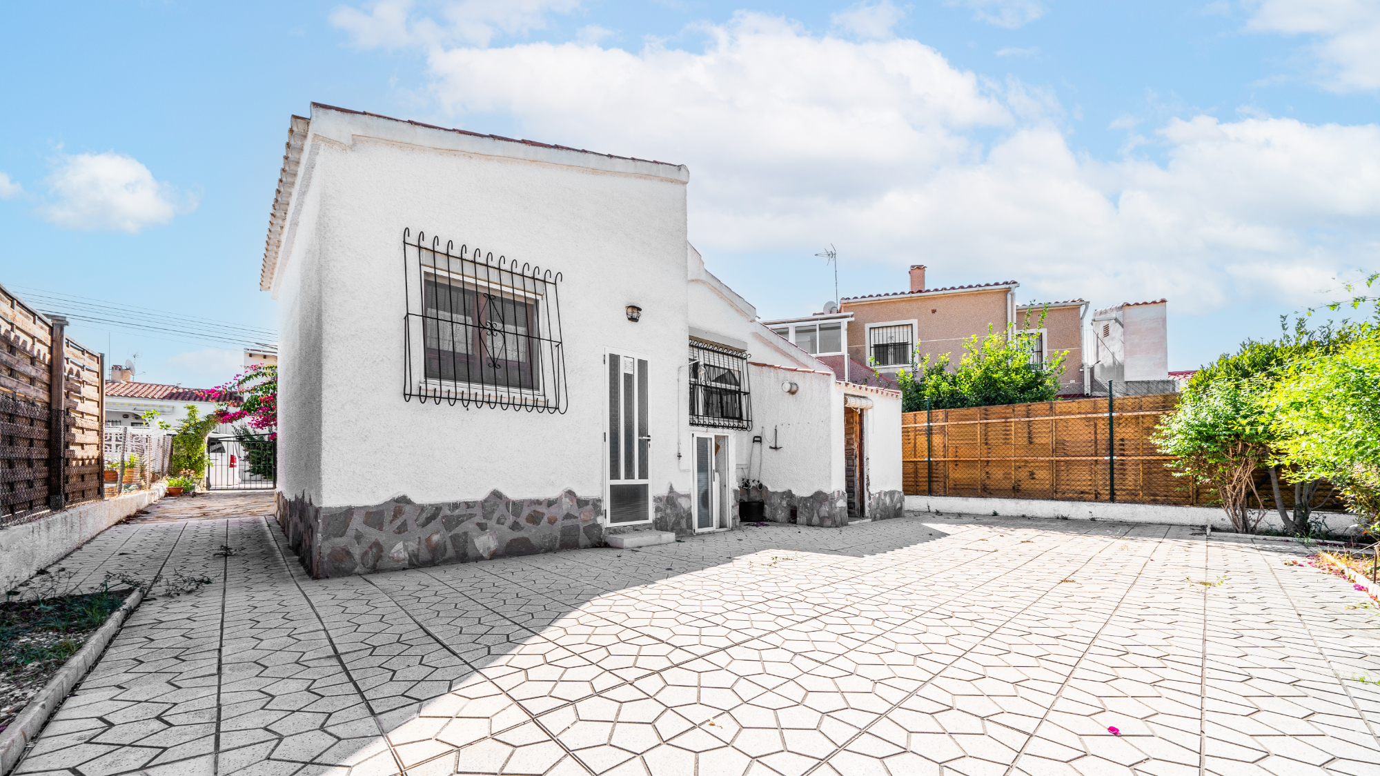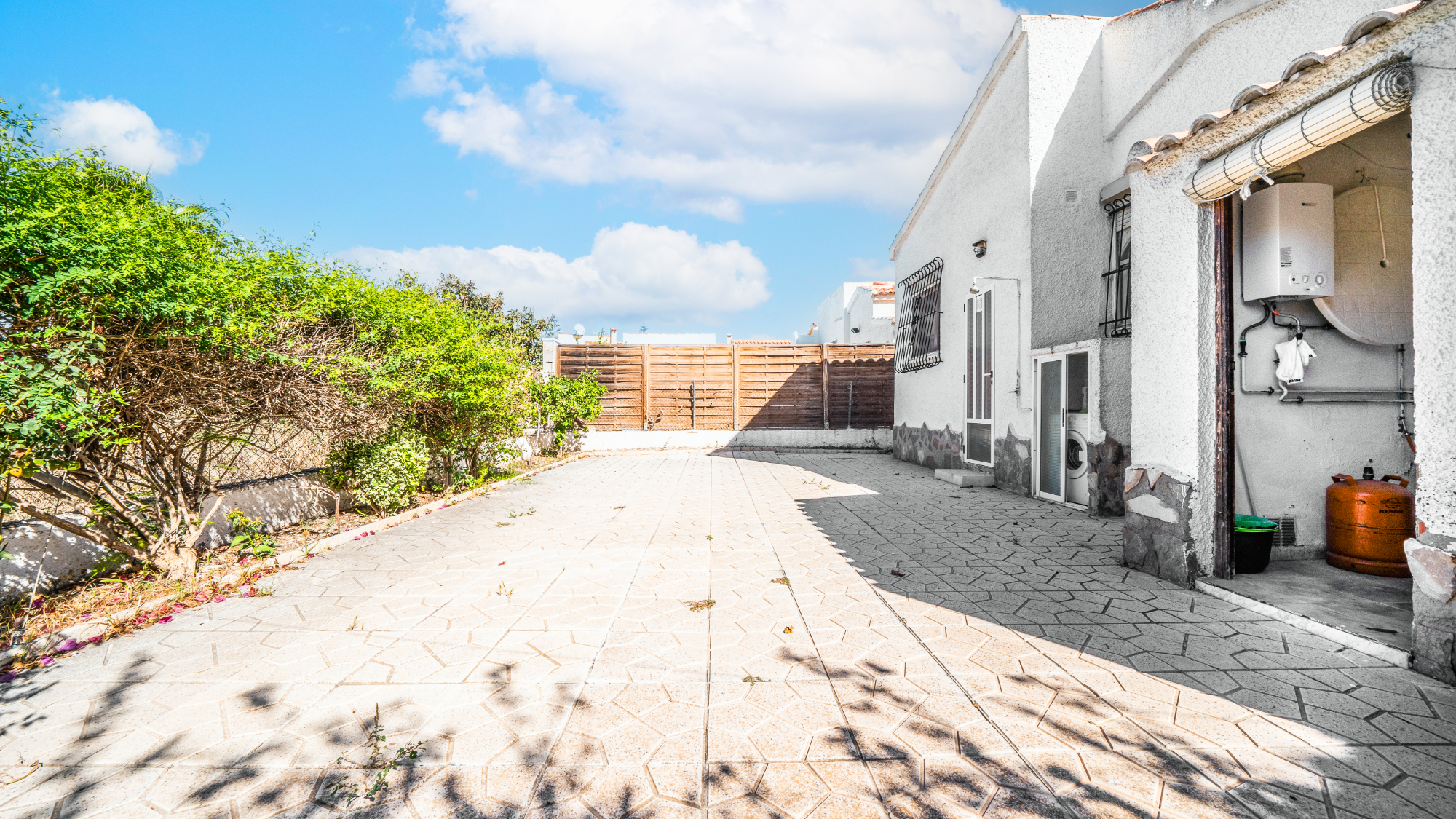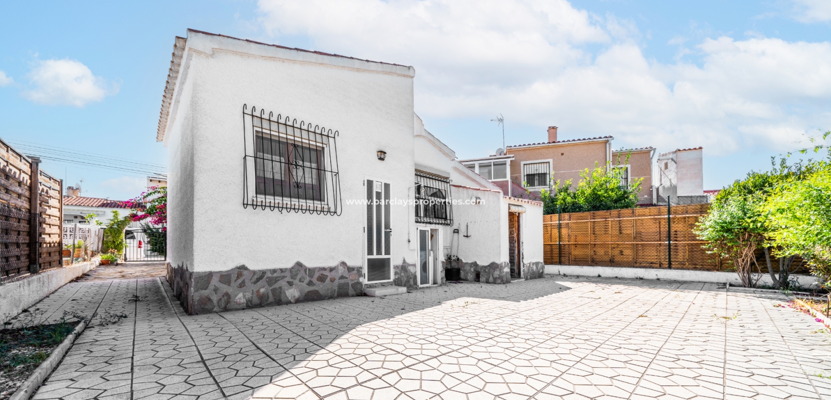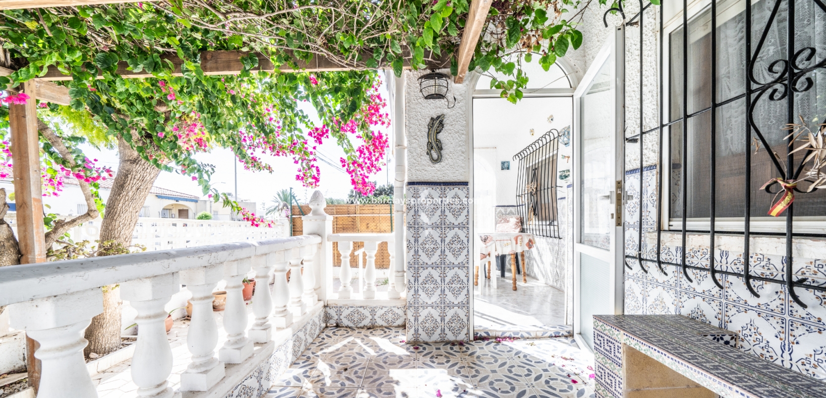 Gelegen op een volledig betegeld, vlak perceel biedt deze woning drie slaapkamers en één badkamer. De oostgerichte woning heeft een houten pergola met prachtige bougainvillea die een schaduwrijk gebied biedt en doorloopt naar het zonneterras, perfect voor ontspanning in de buitenlucht. Een parkeerplaats op eigen terrein en een buitenbergruimte zorgen voor extra functionaliteit.
