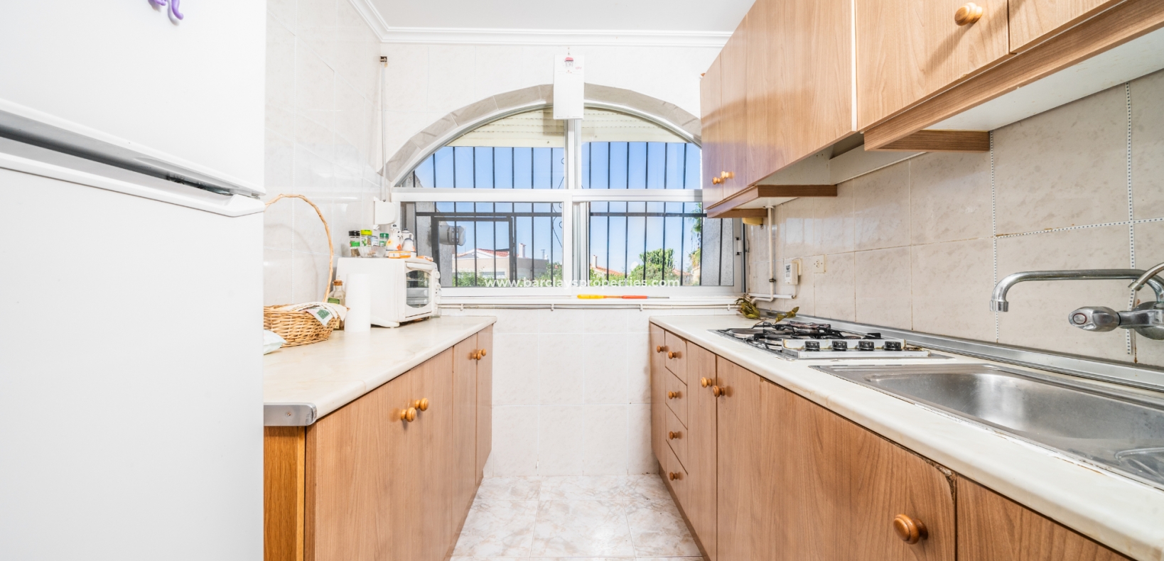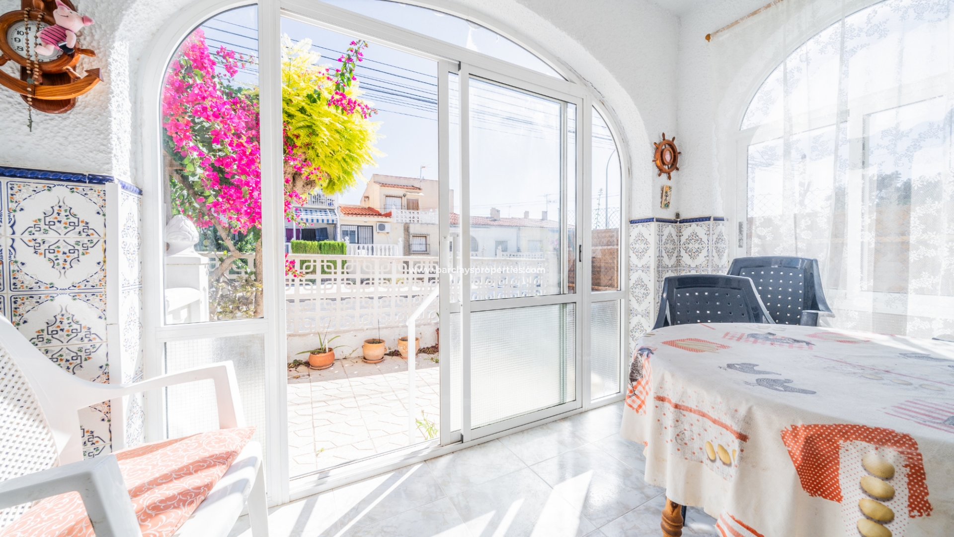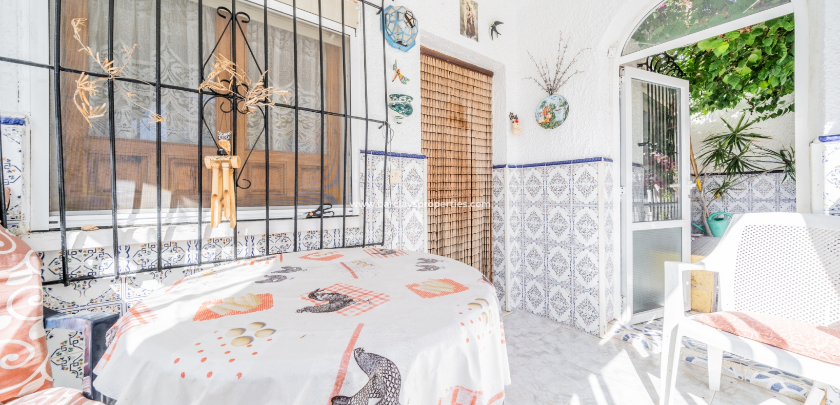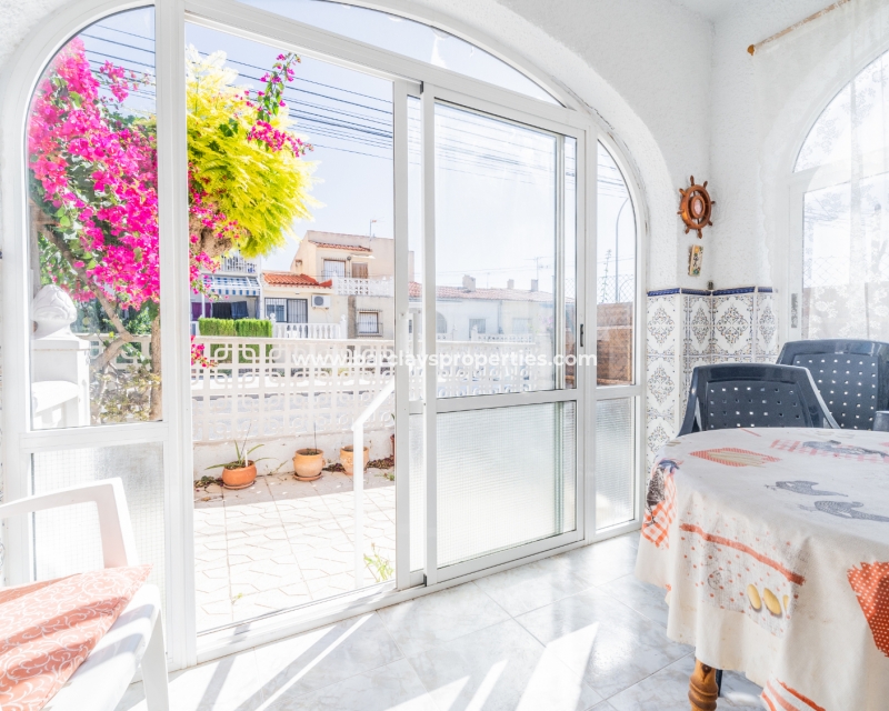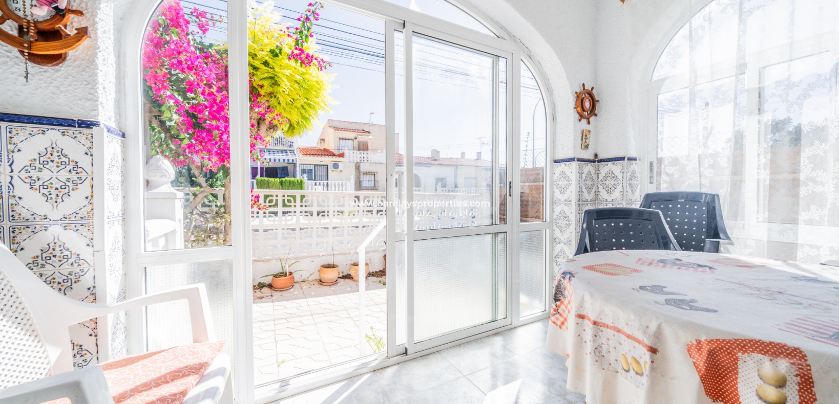 Gelegen op een volledig betegeld, vlak perceel biedt deze woning drie slaapkamers en één badkamer. De oostgerichte woning heeft een houten pergola met prachtige bougainvillea die een schaduwrijk gebied biedt en doorloopt naar het zonneterras, perfect voor ontspanning in de buitenlucht. Een parkeerplaats op eigen terrein en een buitenbergruimte zorgen voor extra functionaliteit.