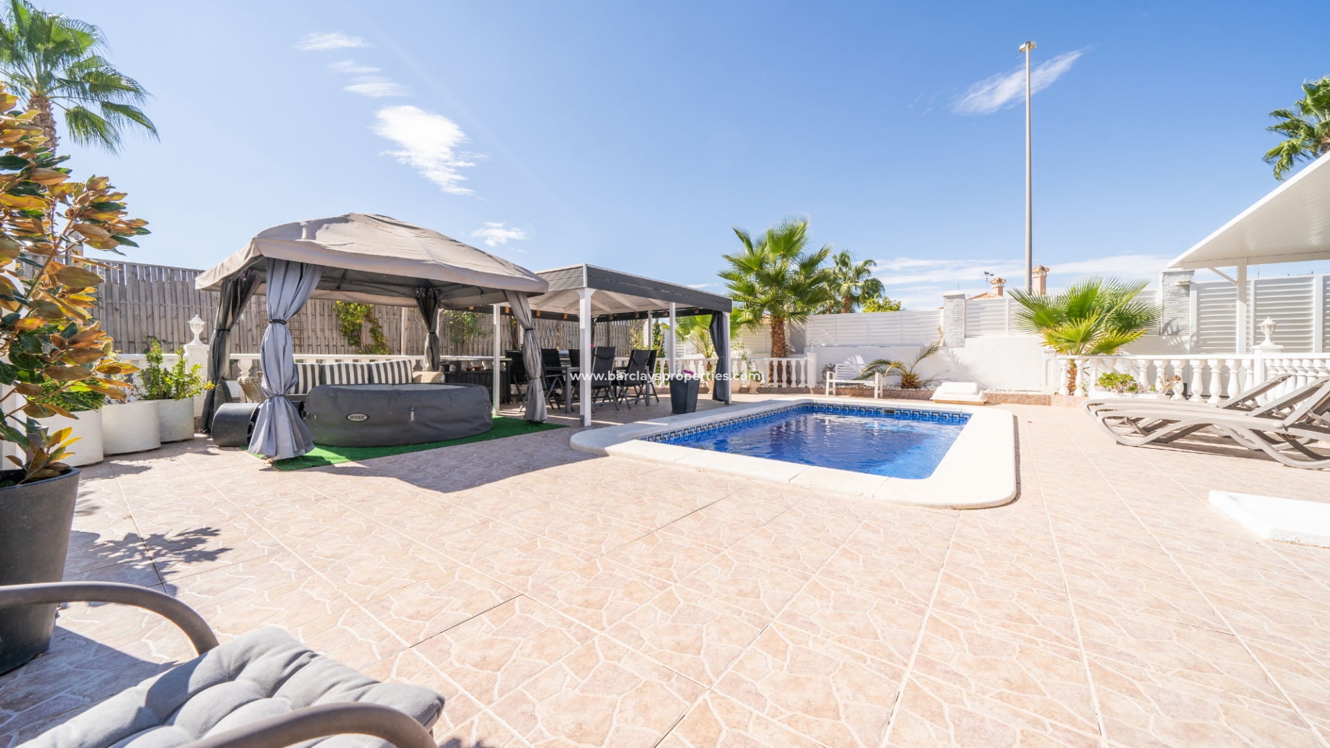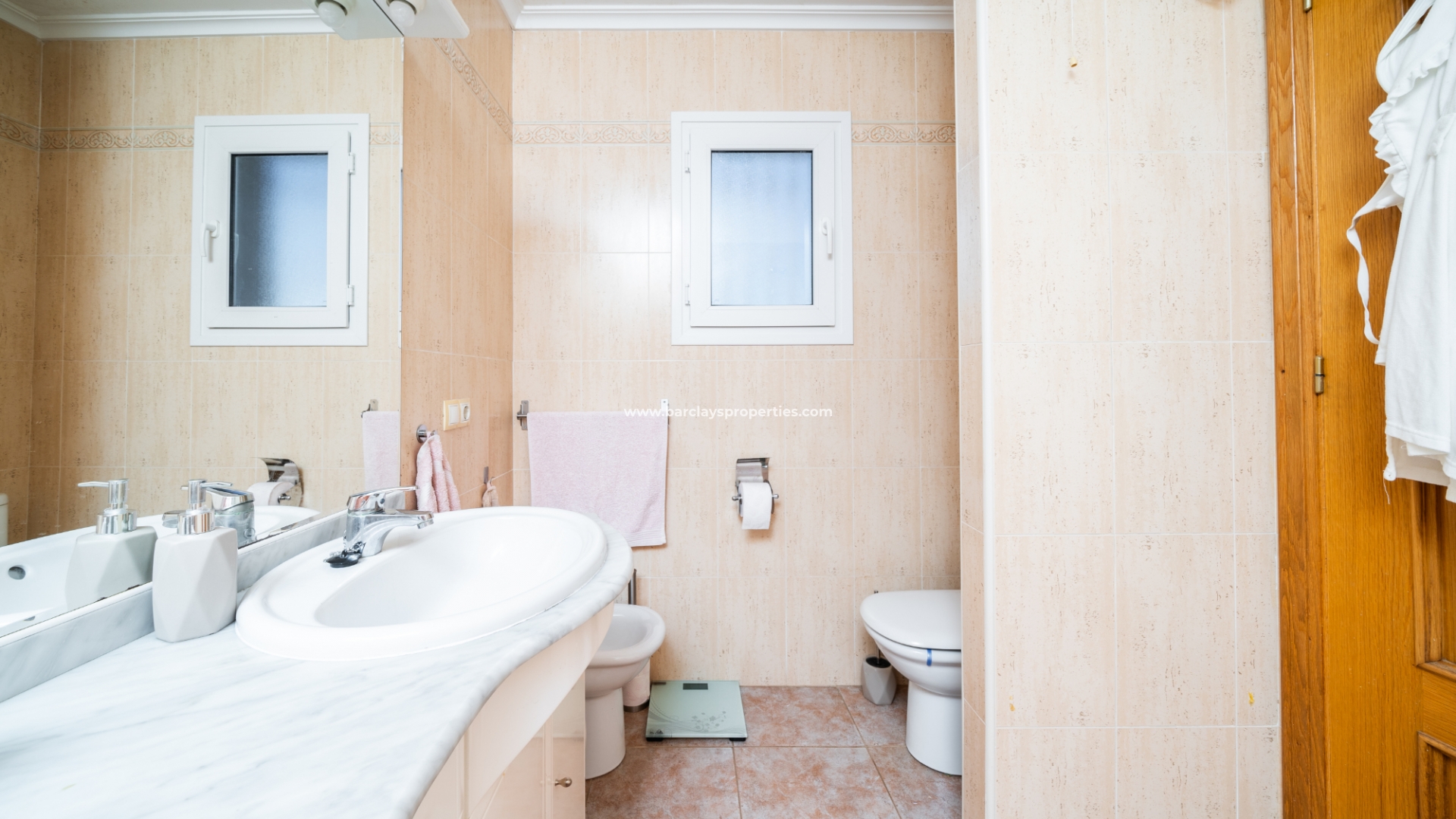 Deze ruime "Erika" model villa combineert modern comfort met veel buitenruimte. De woning beschikt over een glazen veranda met een plafondventilator en een zithoek met een eigenzinnige barstijl voor vermaak, die leidt naar een lichte woonkamer met airconditioning en een aparte keuken die verbonden is met een bijkeuken met een deur naar de achtertuin. De master bedroom beschikt over een inloopkast, airconditioning, een plafondventilator en een ensuite badkamer met een hoekbad, dubbele wastafel, bidet en toilet. Twee extra slaapkamers zijn voorzien van airconditioning en plafondventilatoren, waarvan één met een ingebouwde kledingkast. De hoofdbadkamer maakt het interieur van deze villa compleet en is voorzien van een inloopdouche, toilet, wastafel en bidet.