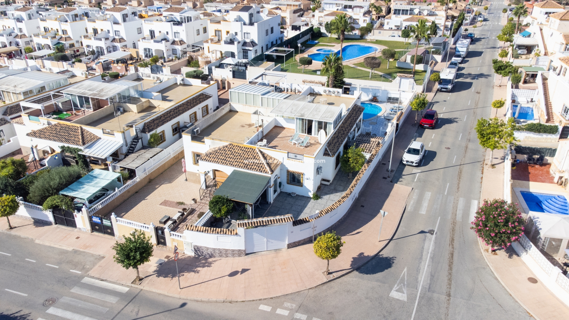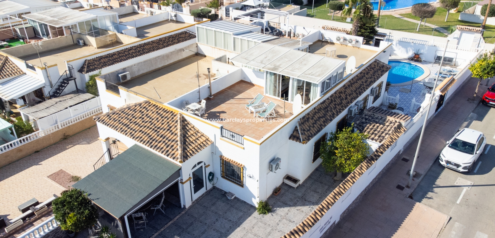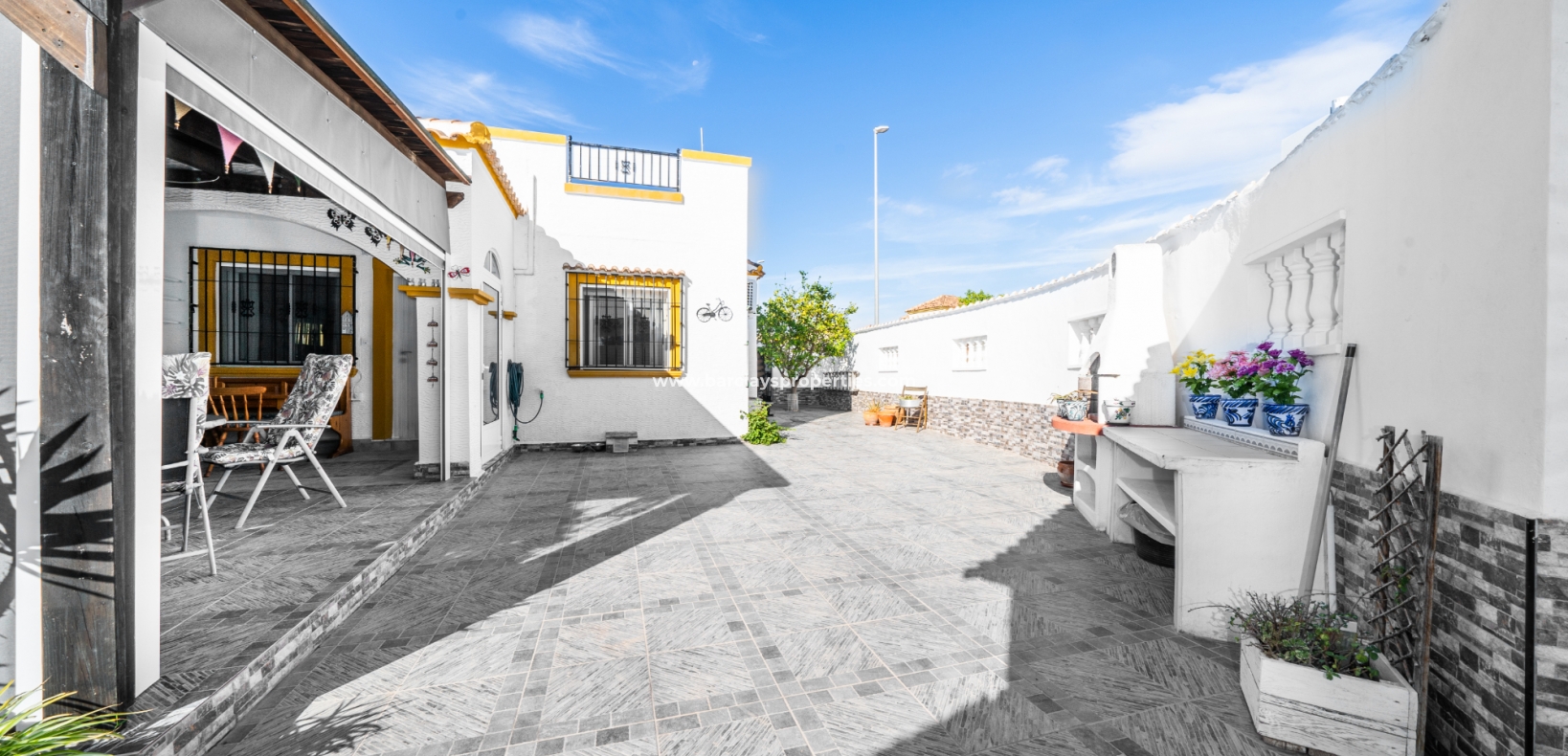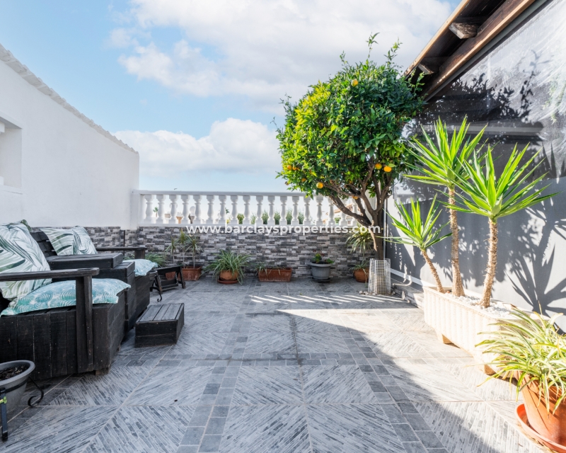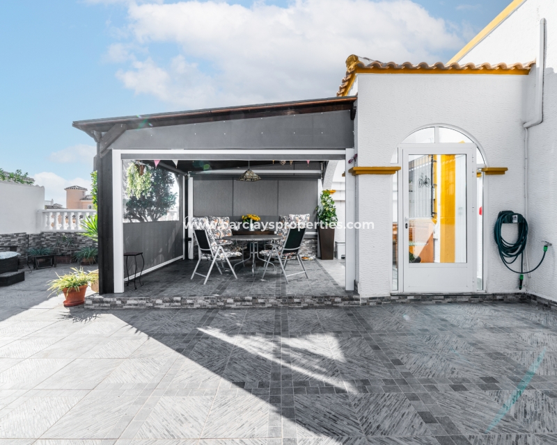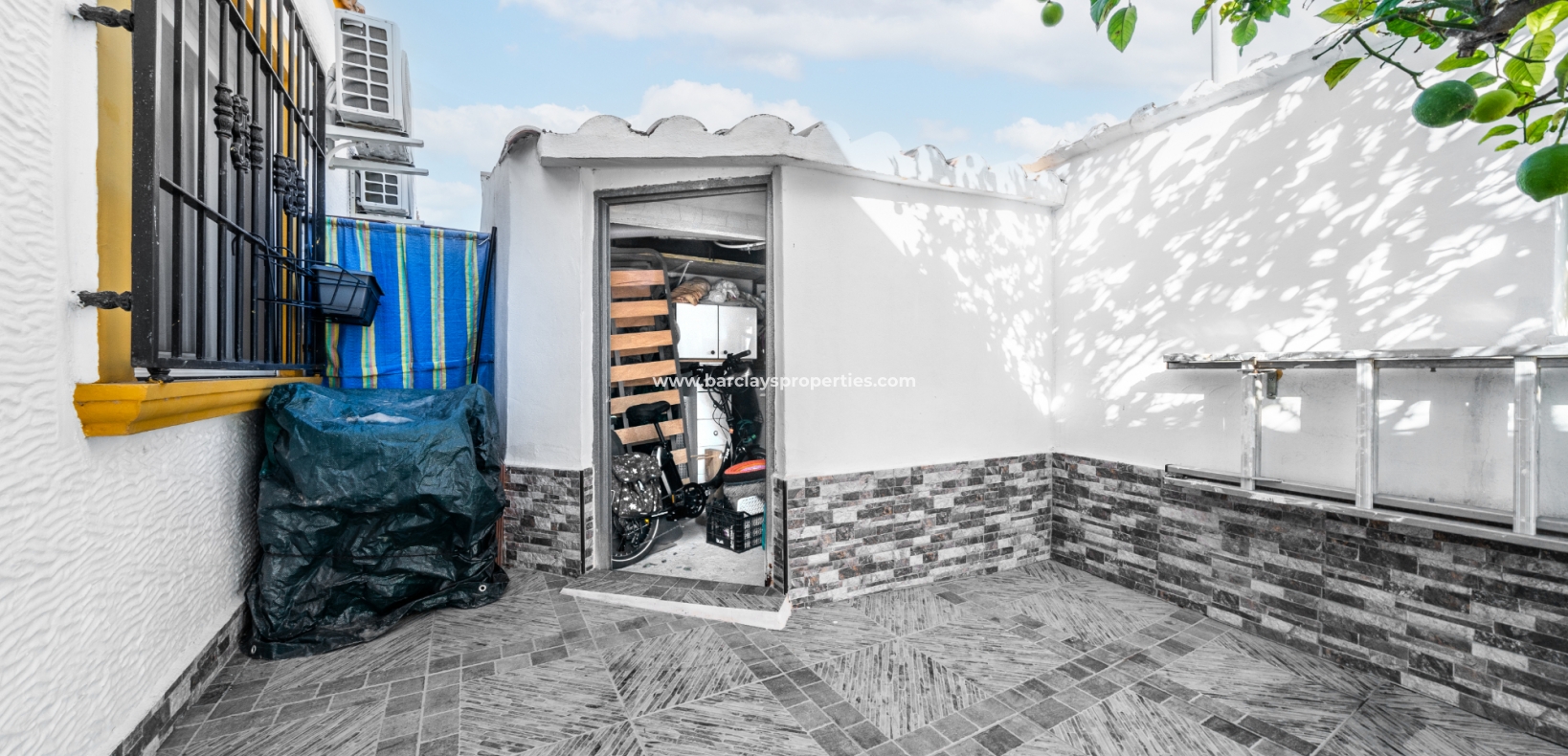 De villa beschikt over een ✅ betegende hoektuin, perfect voor buitenvermaak of gewoon om te genieten van het mediterrane klimaat. Binnen vind je 2 ruime slaapkamers, waarbij de master bedroom een ✅ eigen badkamer en inloopkast heeft. De woonkamer is helder en open, met een aangrenzende gerenoveerde keuken die is uitgerust met moderne apparaten. De keuken leidt naar een galerie, die open gaat naar een conservatorium op het dak-solarim, dat nu als derde slaapkamer wordt gebruikt. Deze ruimte op het dak biedt een fantastische plek om te zonnen of buiten te dineren.