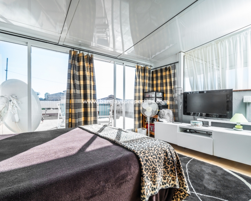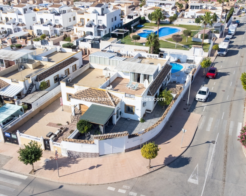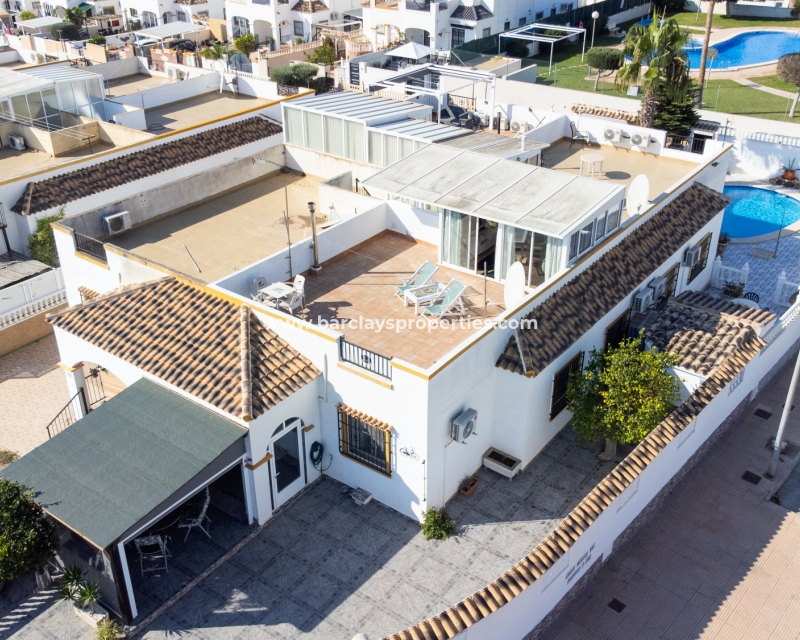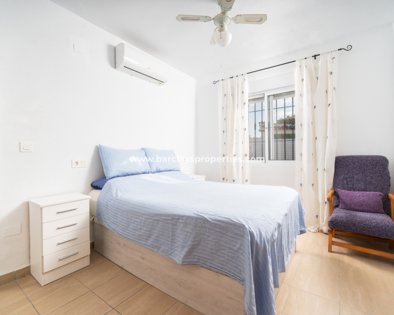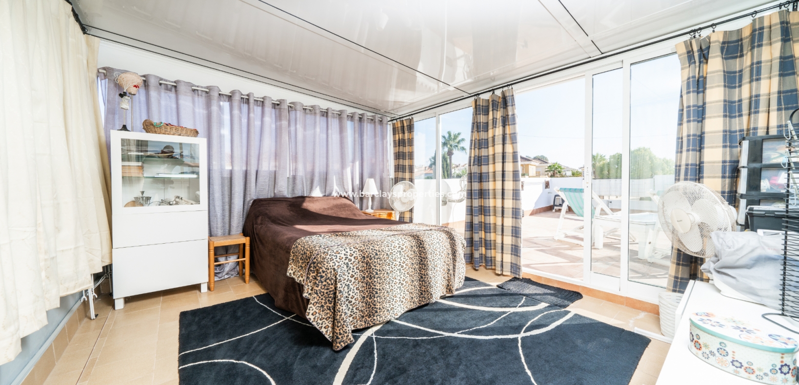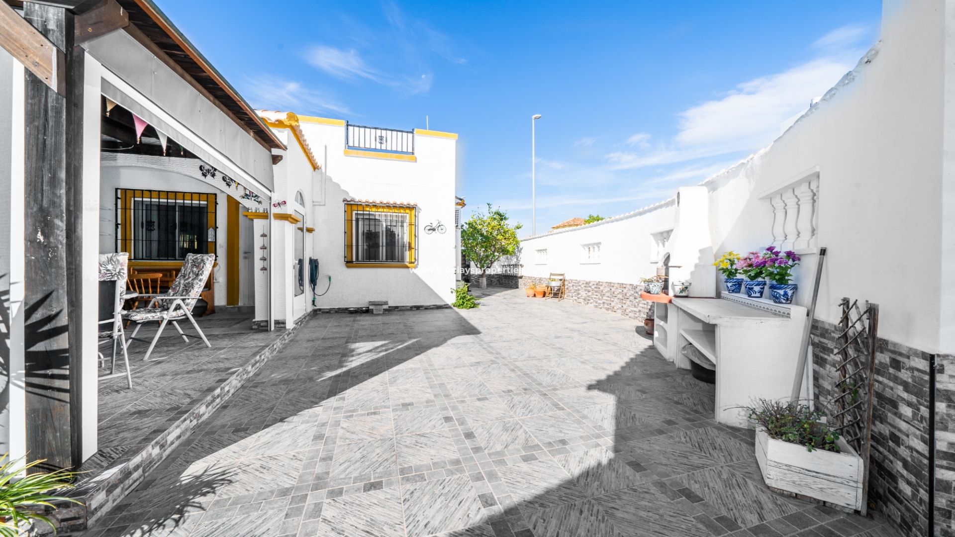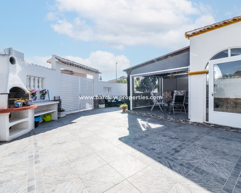 De villa beschikt over een ✅ betegende hoektuin, perfect voor buitenvermaak of gewoon om te genieten van het mediterrane klimaat. Binnen vind je 2 ruime slaapkamers, waarbij de master bedroom een ✅ eigen badkamer en inloopkast heeft. De woonkamer is helder en open, met een aangrenzende gerenoveerde keuken die is uitgerust met moderne apparaten. De keuken leidt naar een galerie, die open gaat naar een conservatorium op het dak-solarim, dat nu als derde slaapkamer wordt gebruikt. Deze ruimte op het dak biedt een fantastische plek om te zonnen of buiten te dineren.