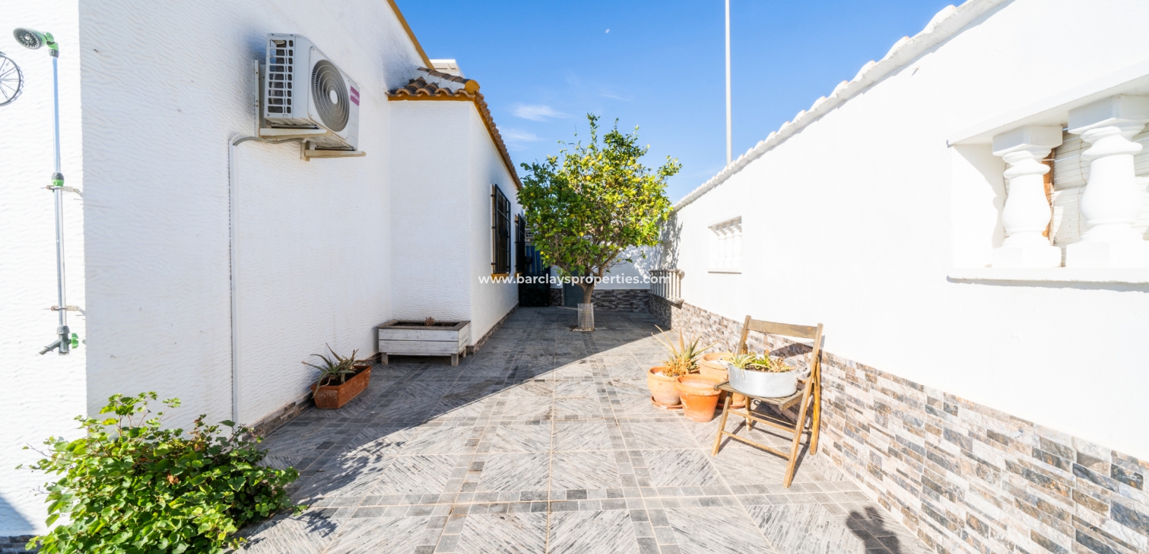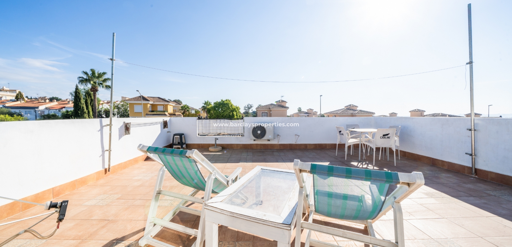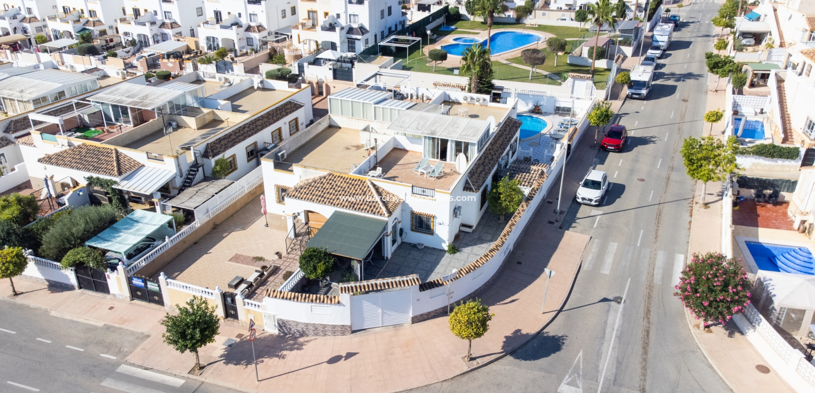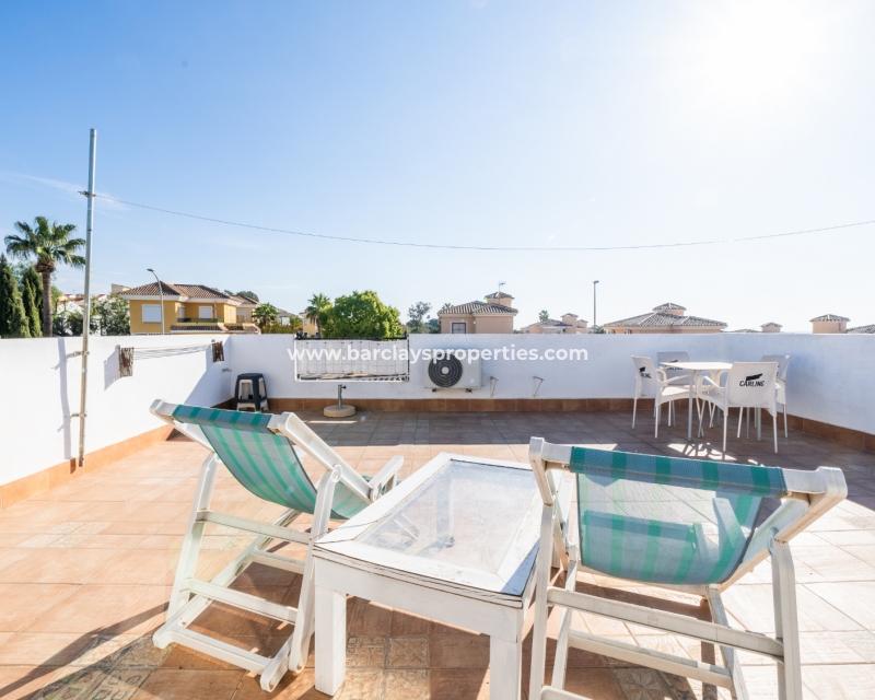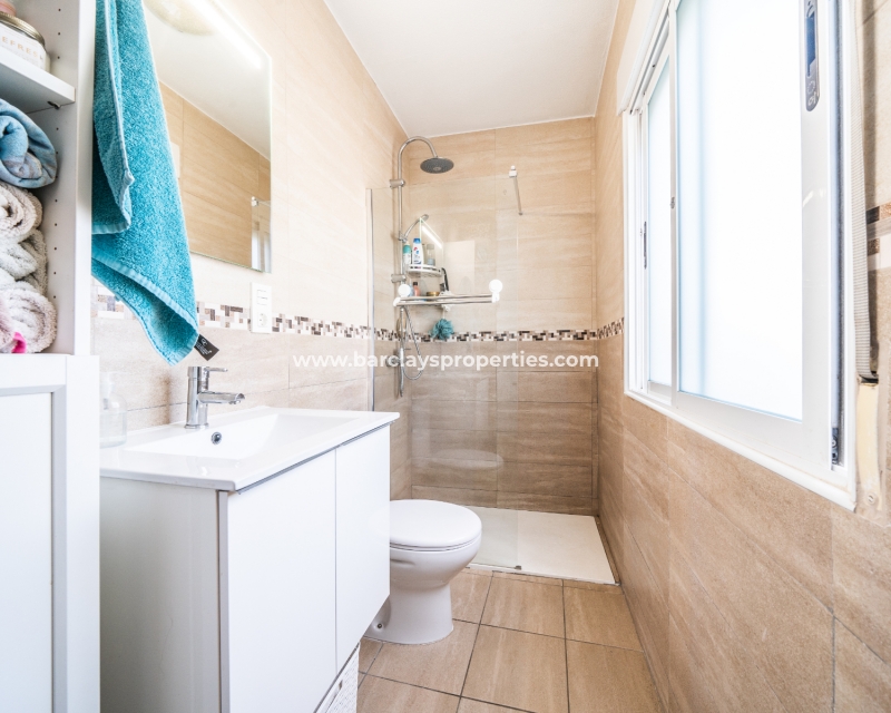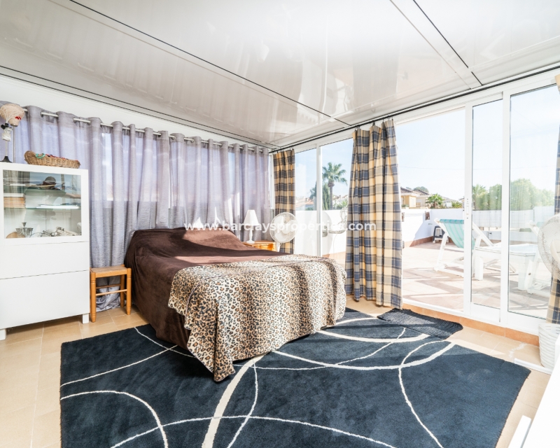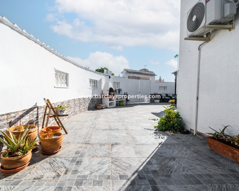 De villa beschikt over een ✅ betegende hoektuin, perfect voor buitenvermaak of gewoon om te genieten van het mediterrane klimaat. Binnen vind je 2 ruime slaapkamers, waarbij de master bedroom een ✅ eigen badkamer en inloopkast heeft. De woonkamer is helder en open, met een aangrenzende gerenoveerde keuken die is uitgerust met moderne apparaten. De keuken leidt naar een galerie, die open gaat naar een conservatorium op het dak-solarim, dat nu als derde slaapkamer wordt gebruikt. Deze ruimte op het dak biedt een fantastische plek om te zonnen of buiten te dineren.