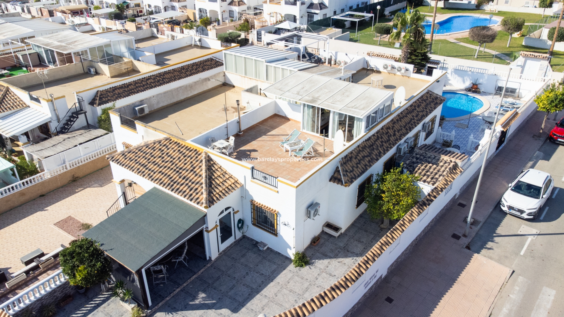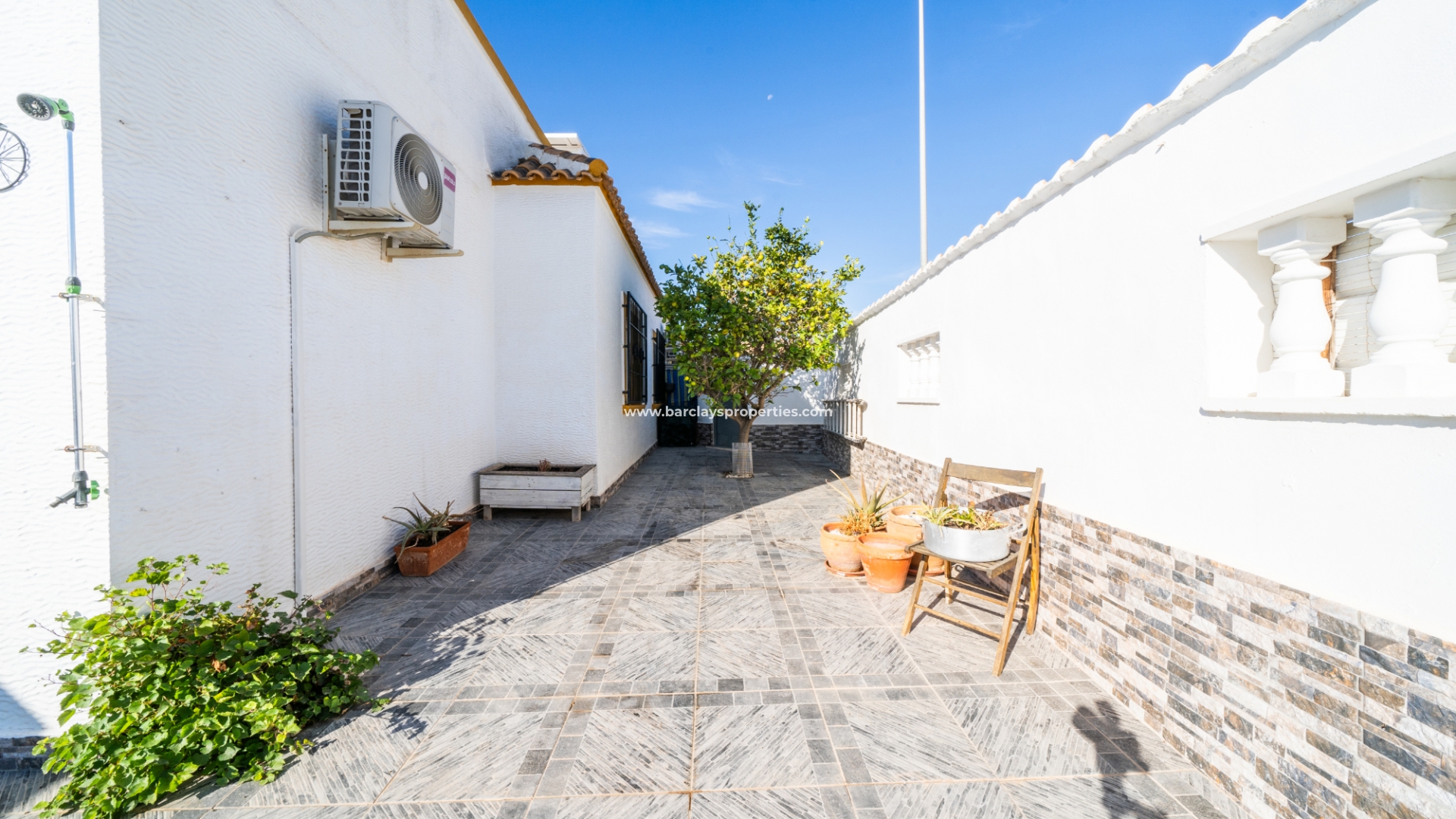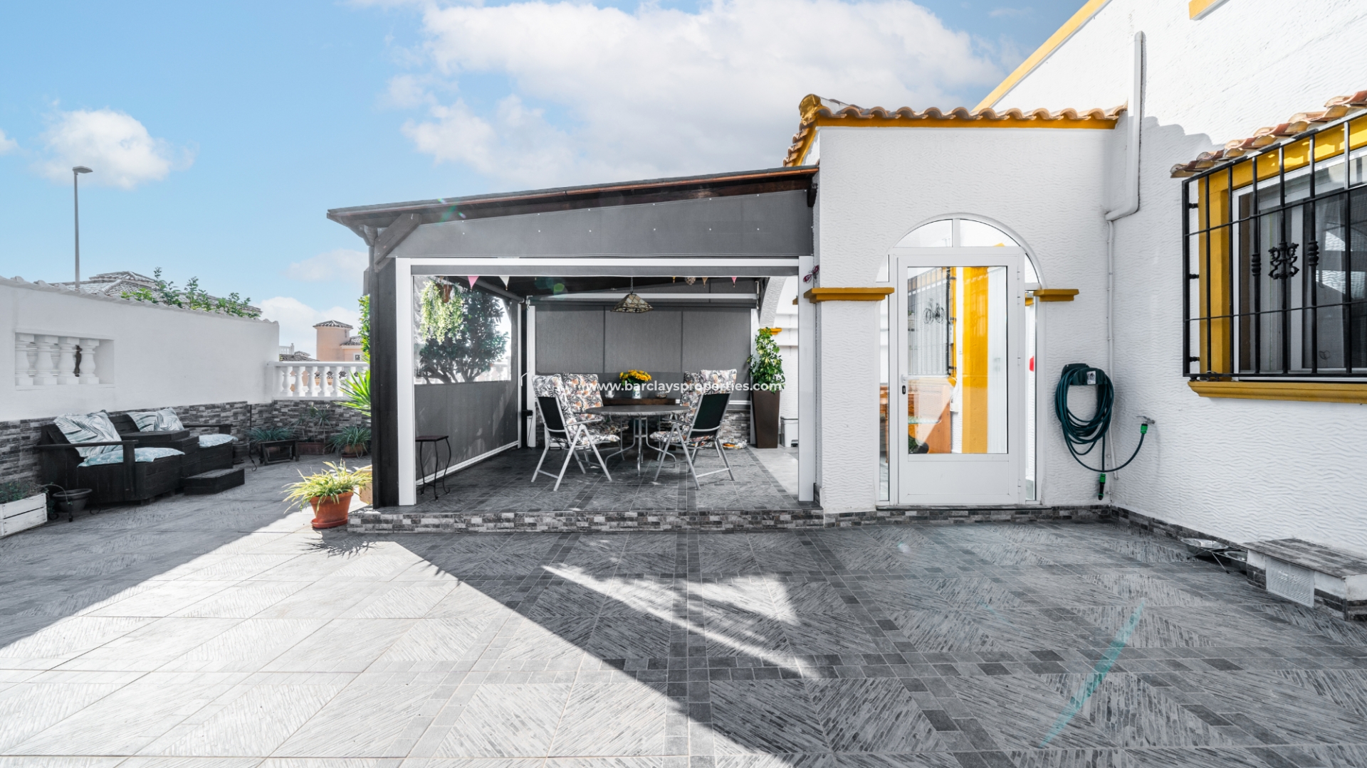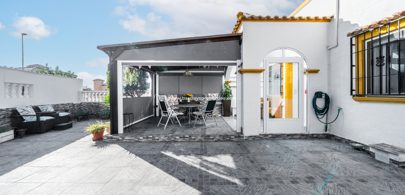 De villa beschikt over een ✅ betegende hoektuin, perfect voor buitenvermaak of gewoon om te genieten van het mediterrane klimaat. Binnen vind je 2 ruime slaapkamers, waarbij de master bedroom een ✅ eigen badkamer en inloopkast heeft. De woonkamer is helder en open, met een aangrenzende gerenoveerde keuken die is uitgerust met moderne apparaten. De keuken leidt naar een galerie, die open gaat naar een conservatorium op het dak-solarim, dat nu als derde slaapkamer wordt gebruikt. Deze ruimte op het dak biedt een fantastische plek om te zonnen of buiten te dineren.
