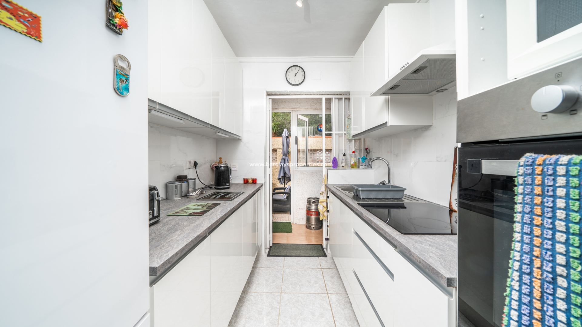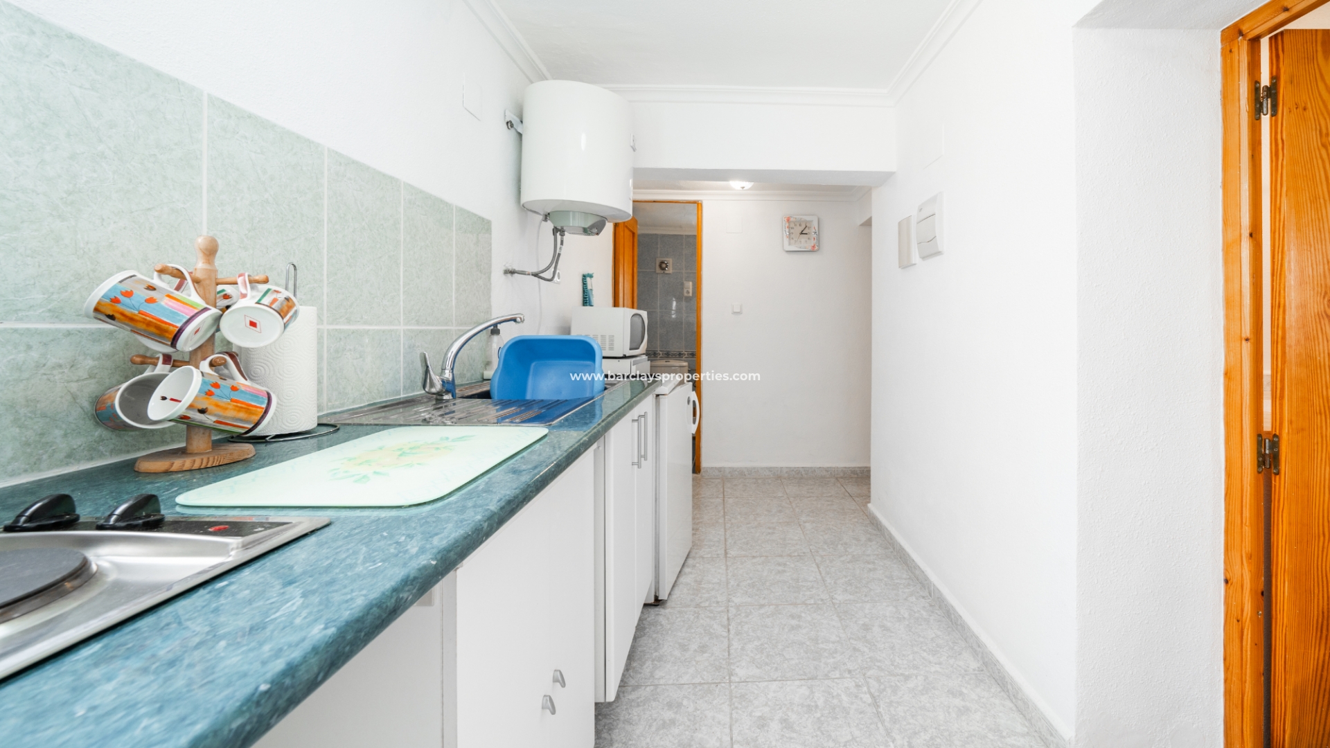 De gerenoveerde, volledig elektrische keuken van de villa is uitgerust met nieuwe apparatuur en kasten. De bijkeuken aan de achterzijde beschikt over een wasmachine, een boiler en een deur naar de tuin met een eetgedeelte buiten, zitplaatsen en parkeergelegenheid.