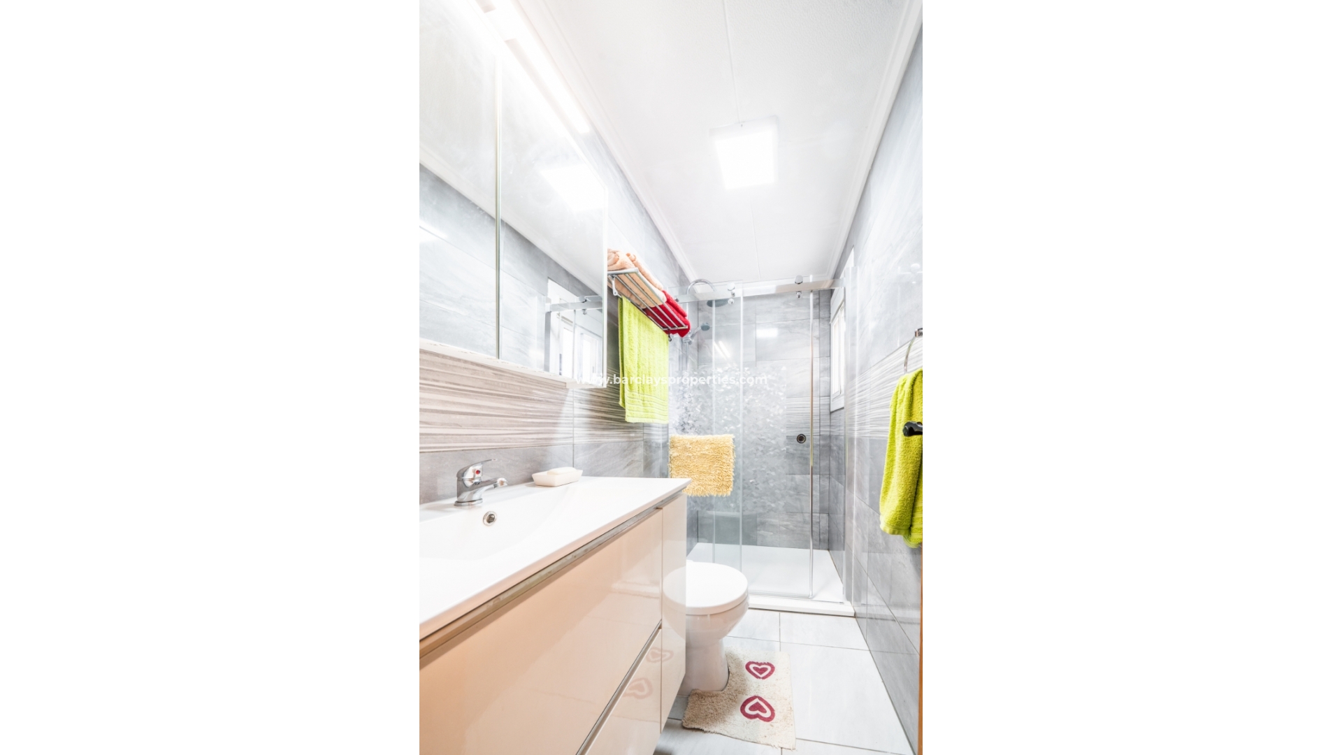 Slaapkamer 1 heeft een en-suite badkamer met een recent gerenoveerde, ruime wand-tot-wand-douche en een stijlvolle wastafel. Slaapkamer 2 biedt een rustige sfeer en Slaapkamer 3 is uitgerust met twee eenpersoonsbedden. De hoofd badkamer is ook volledig gerenoveerd met een wand-tot-wand-douche en een moderne wastafel.