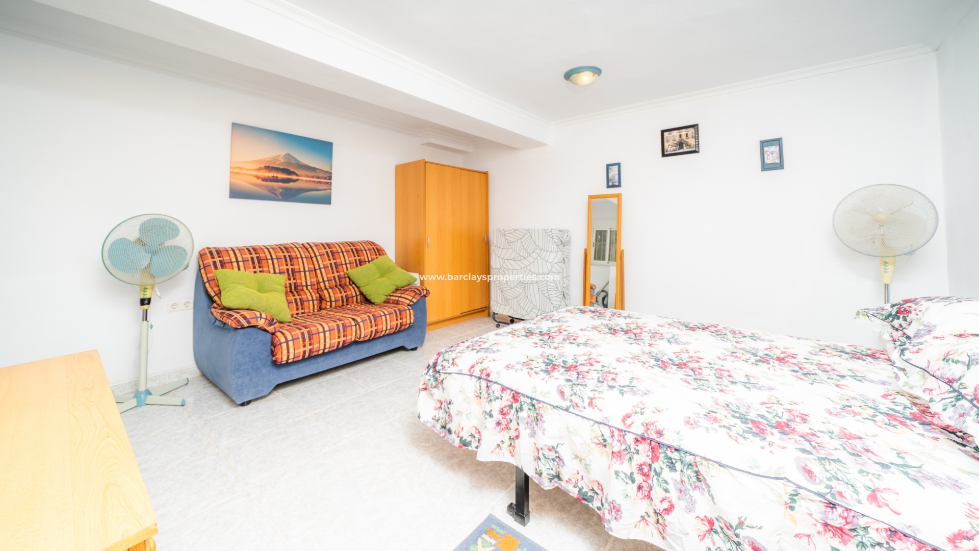 De villa heeft een souterrain dat extra opslagruimte en woonopties biedt. Hier vindt u een tweede woonkamer met een kleine keuken, een badkamer met een douche en wastafel, en twee extra kamers (momenteel in gebruik als slaapruimte), waardoor deze benedenverdieping ideaal is voor familie of gasten.