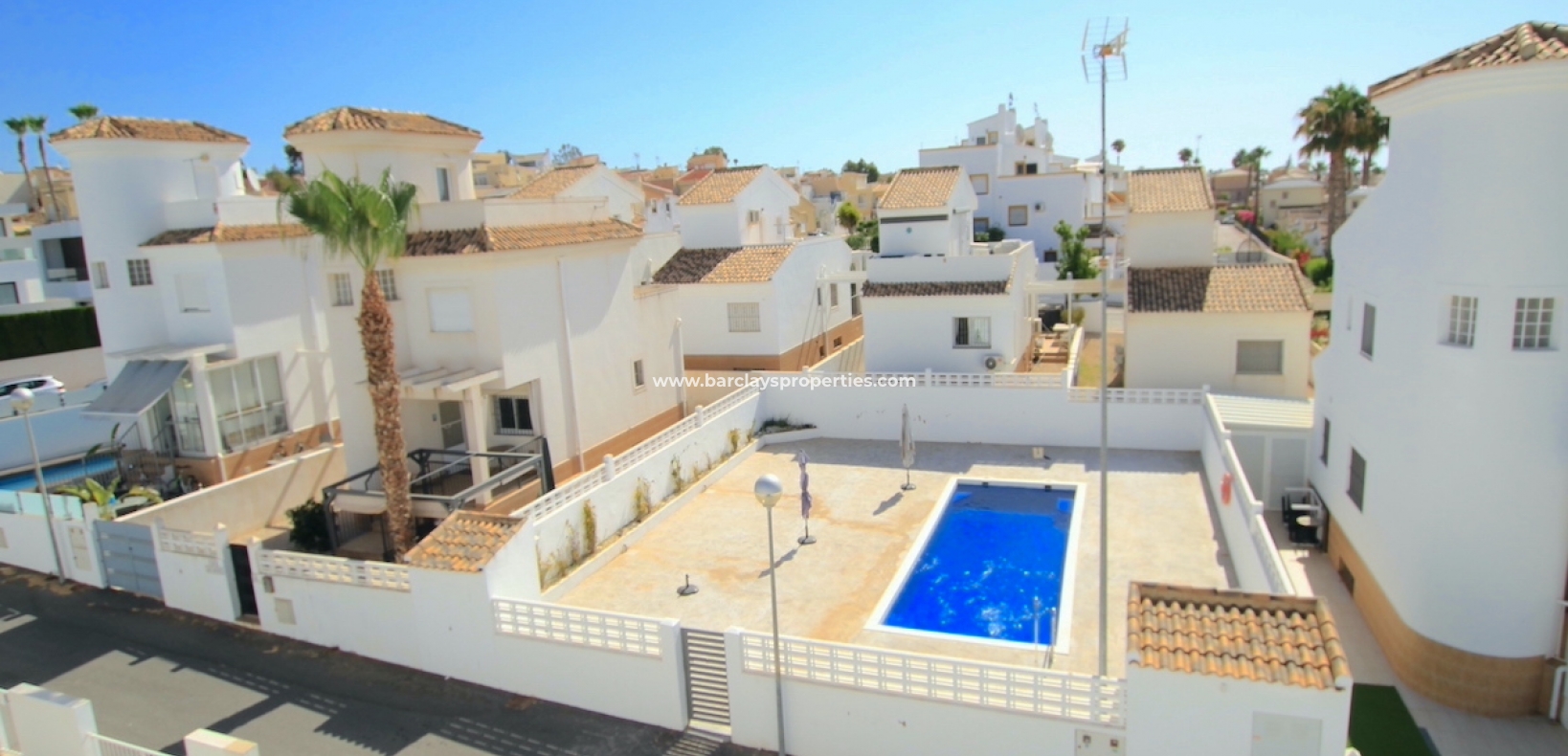 Deze elegante villa met 4 slaapkamers en 3 badkamers in het gewilde La Marina, Costa Blanca Zuid, ligt perfect op slechts 3 km van goudgele zandstranden en op een snelle 25 minuten rijden van de luchthaven van Alicante. Gelegen in de exclusieve gemeenschap ‘Puertas Al Mar VIII’, biedt deze woning een rustige, privé sfeer met het gemak van een ➡️ gemeenschappelijk zwembad voor bewoners.