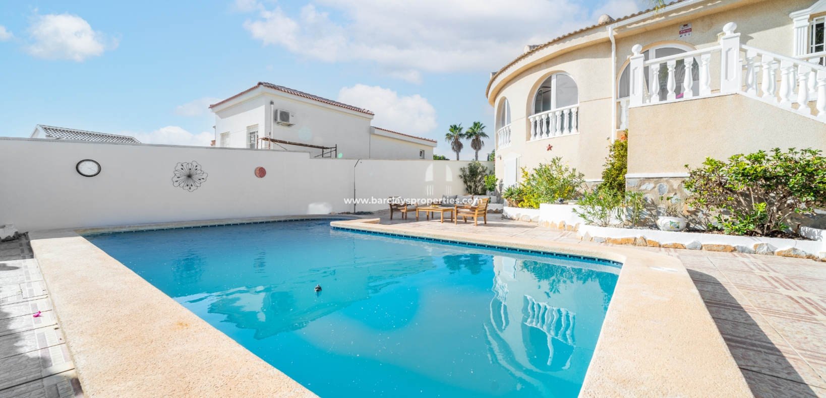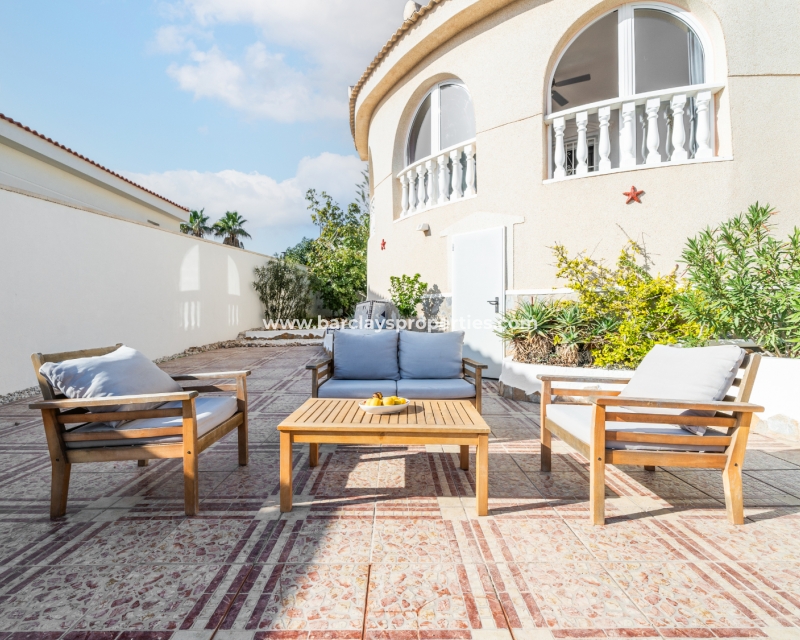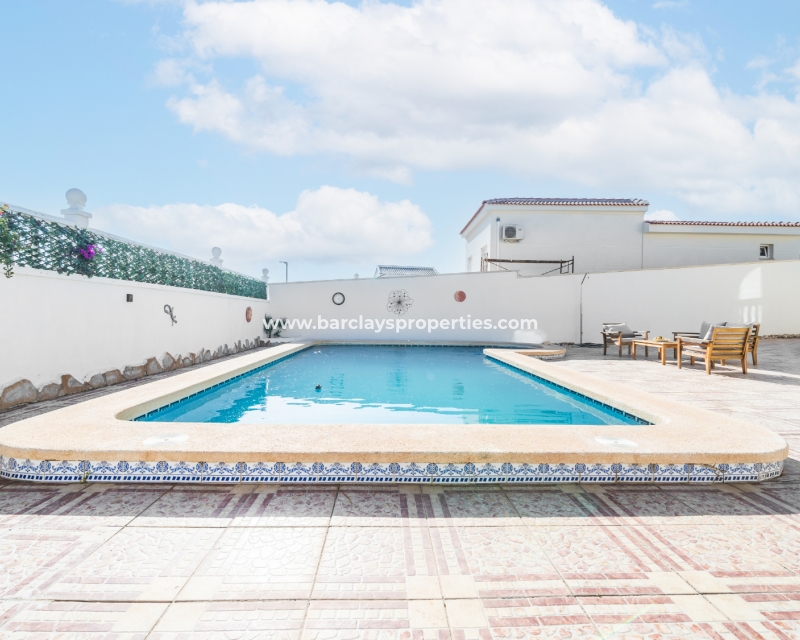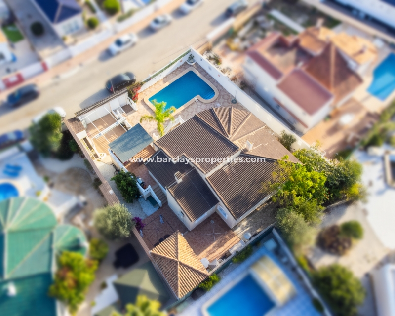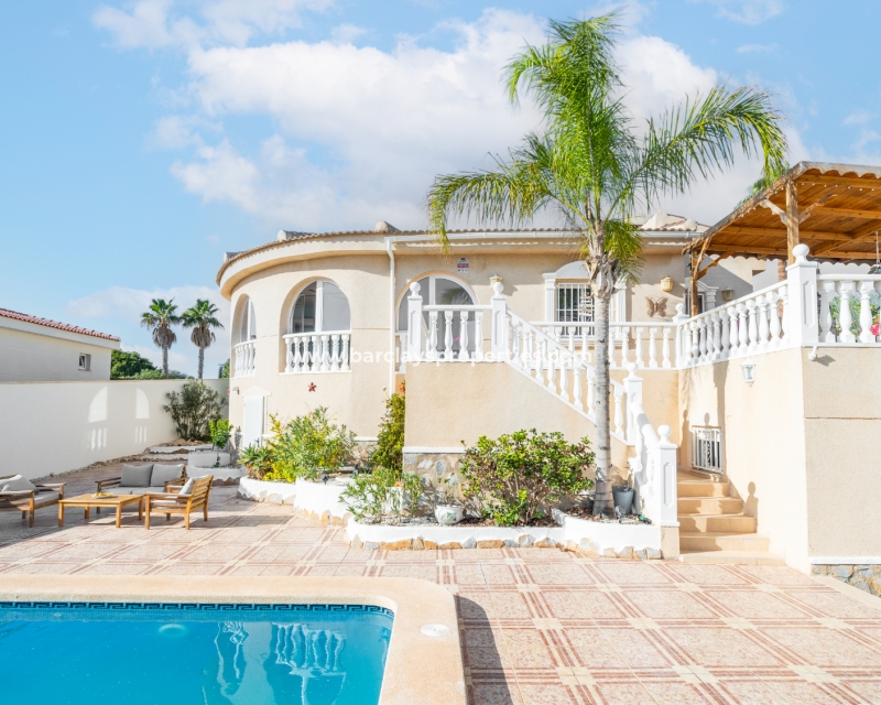 Deze ruime vrijstaande villa in Ciudad Quesada, Rojales, is perfect gelegen ➡️ op slechts 5 minuten rijden van lokale voorzieningen en dicht bij het schilderachtige El Recorral Park. De villa is op het zuiden gericht, waardoor er veel licht binnenvalt, en biedt een doordacht ontwerp met diverse voorzieningen voor comfort en gemak.