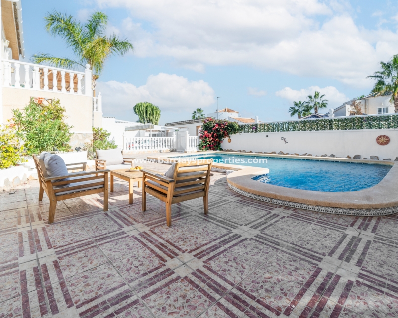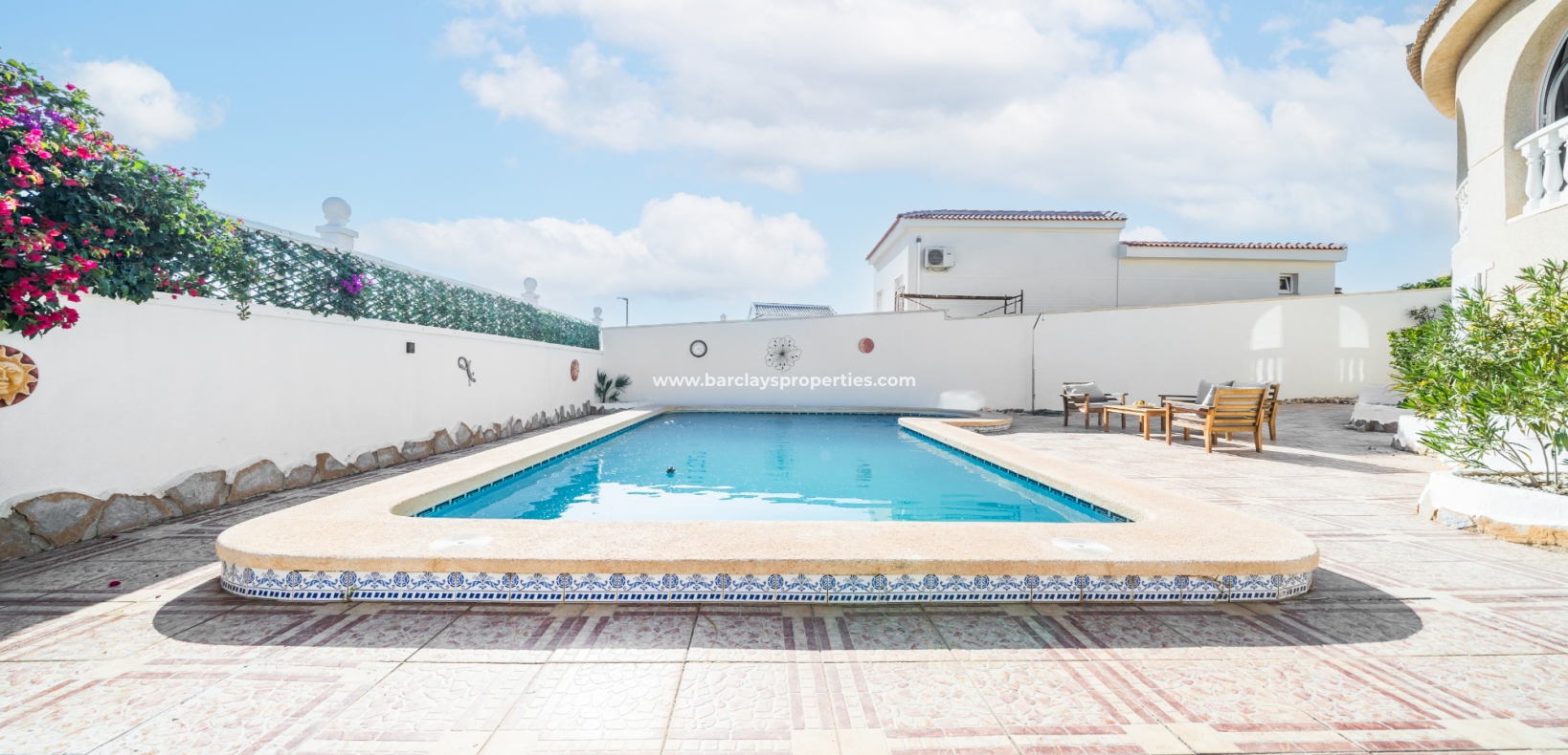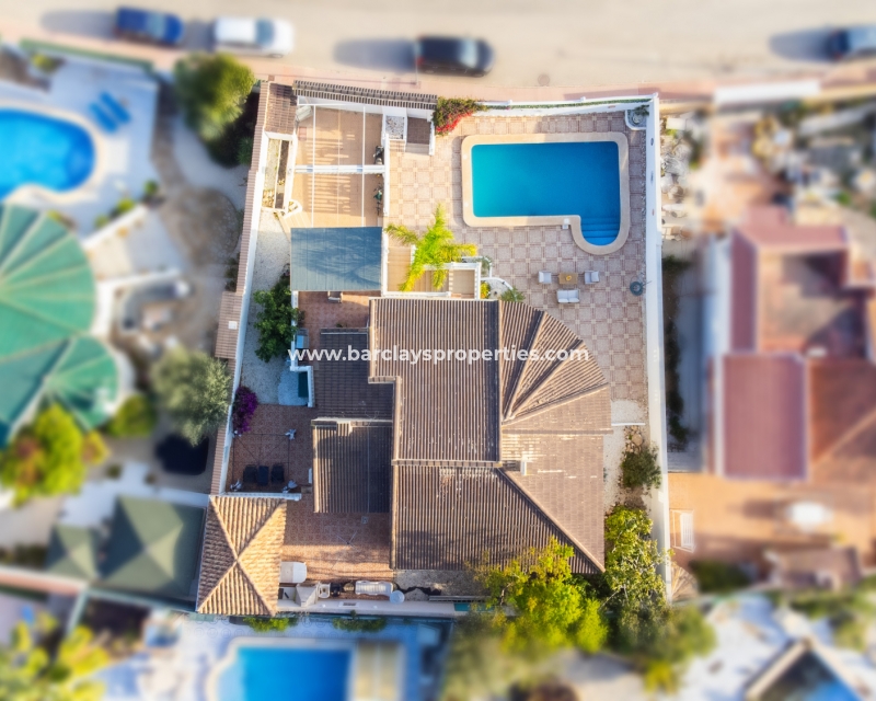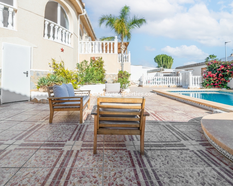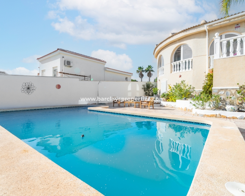 Deze ruime vrijstaande villa in Ciudad Quesada, Rojales, is perfect gelegen ➡️ op slechts 5 minuten rijden van lokale voorzieningen en dicht bij het schilderachtige El Recorral Park. De villa is op het zuiden gericht, waardoor er veel licht binnenvalt, en biedt een doordacht ontwerp met diverse voorzieningen voor comfort en gemak.