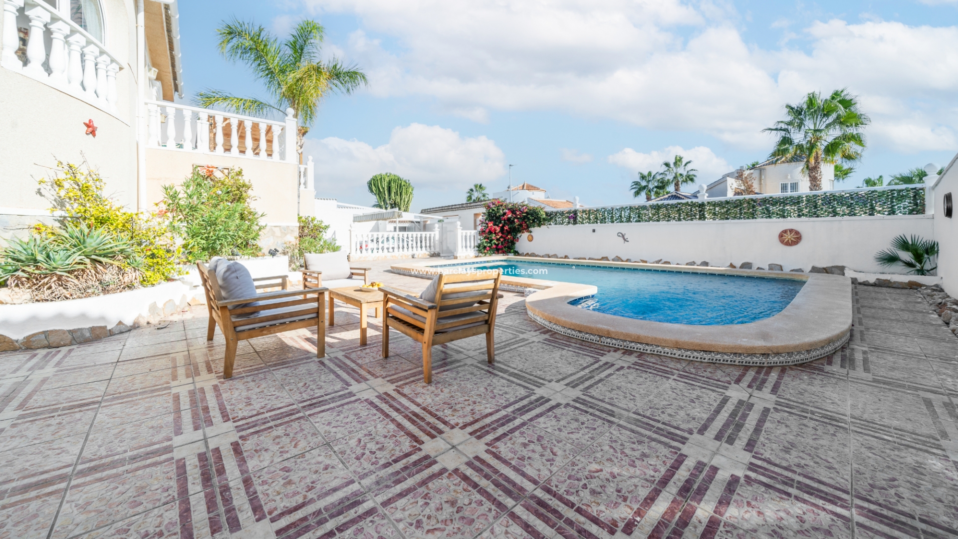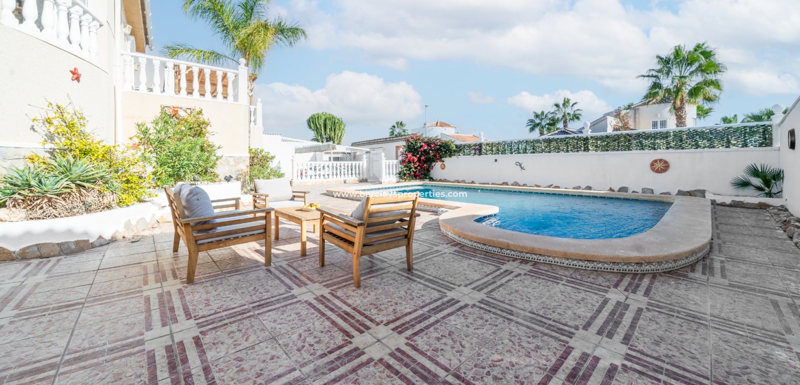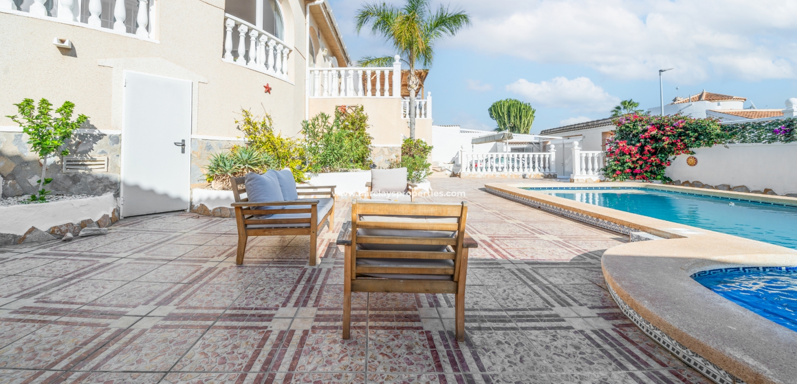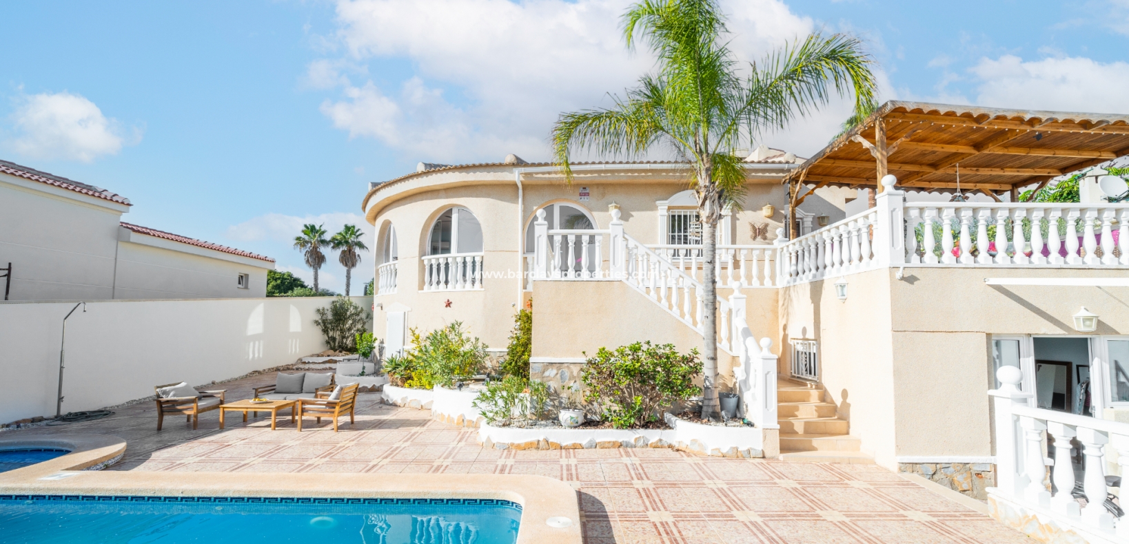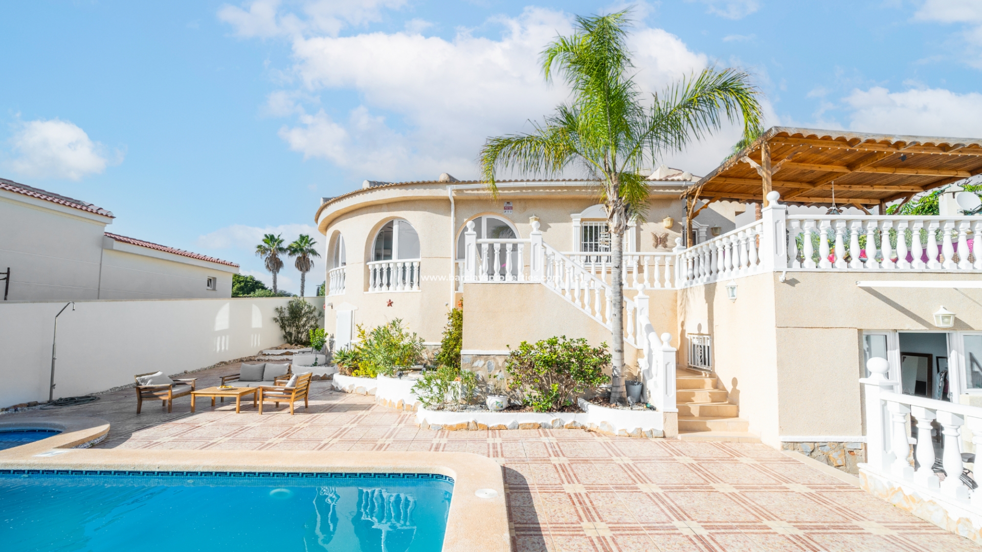 ➡️ De woning staat op een perceel van 600m² en beschikt over een hoofdwoning van 166m² en aparte gastenaccommodatie. De buitenruimte omvat een groot verhoogd terras met een pergola, perfect om te ontspannen of buiten te dineren, en een ➡️ fantastische privézwembad van 8 x 4 meter met een buitendouche en diverse zitjes buiten. Praktische extra's zijn onder andere een pompruimte voor het zwembad, een stookruimte met elektrische en gasboilers, een wasruimte en een ruime opslagruimte.