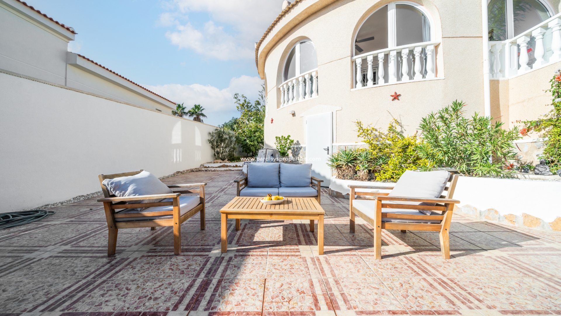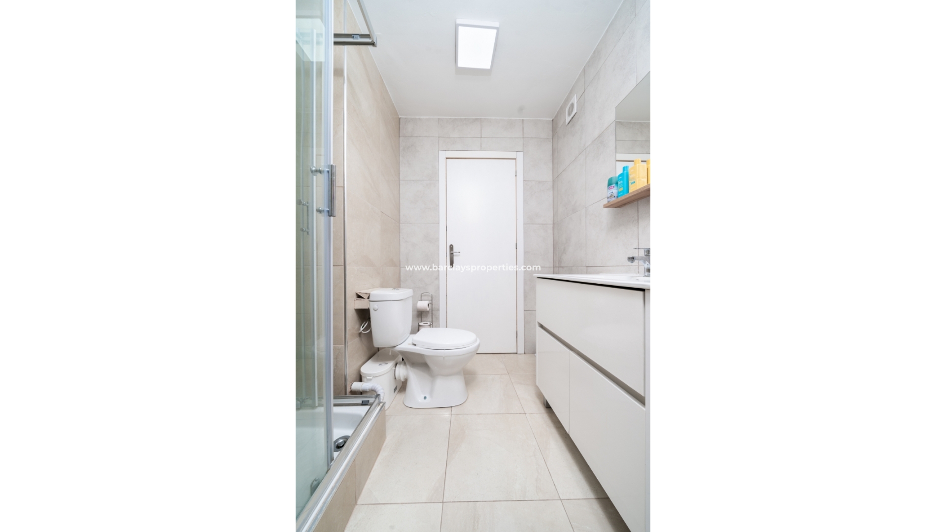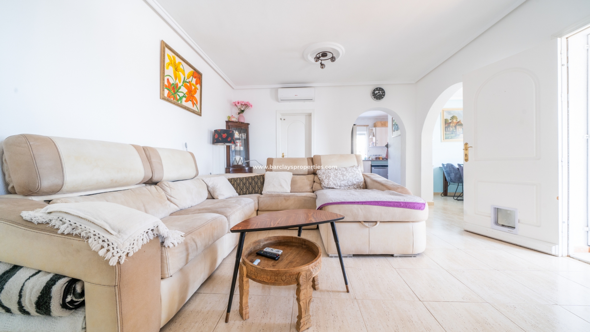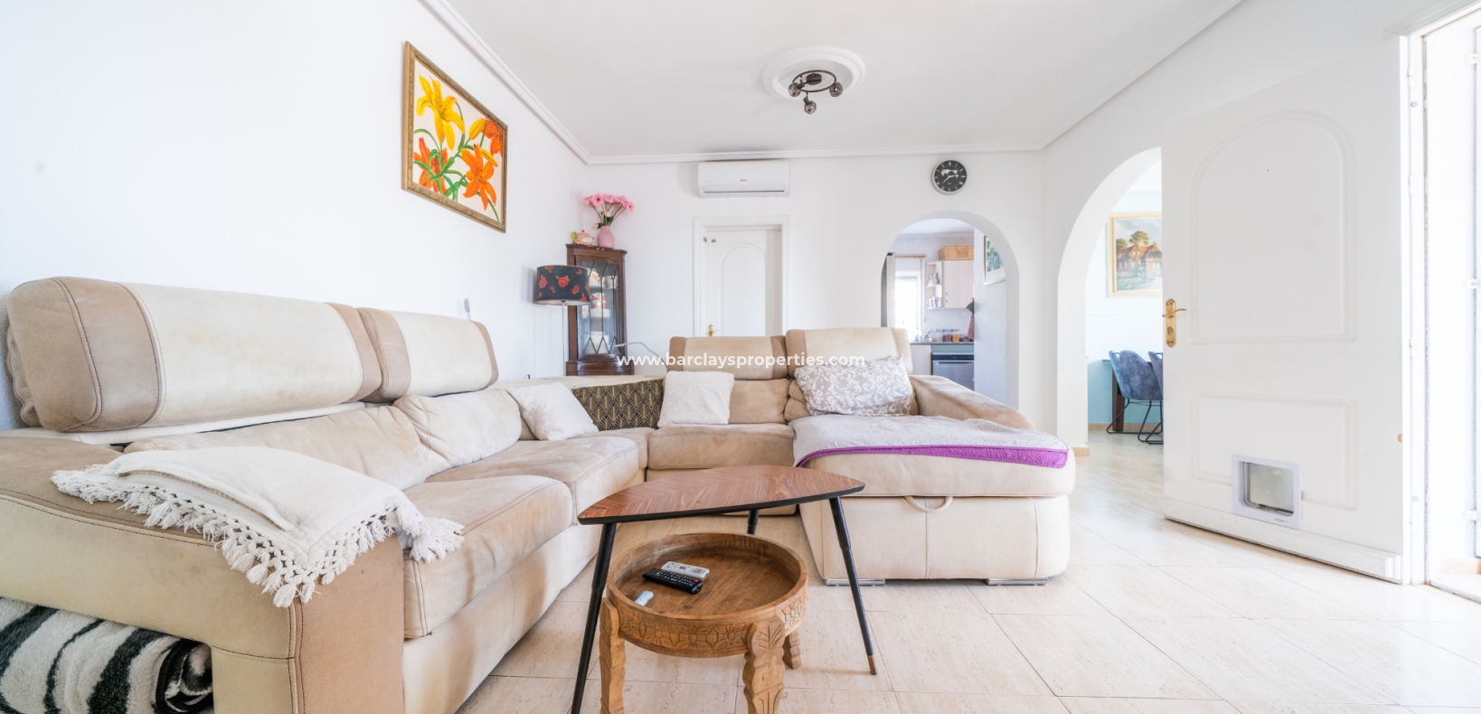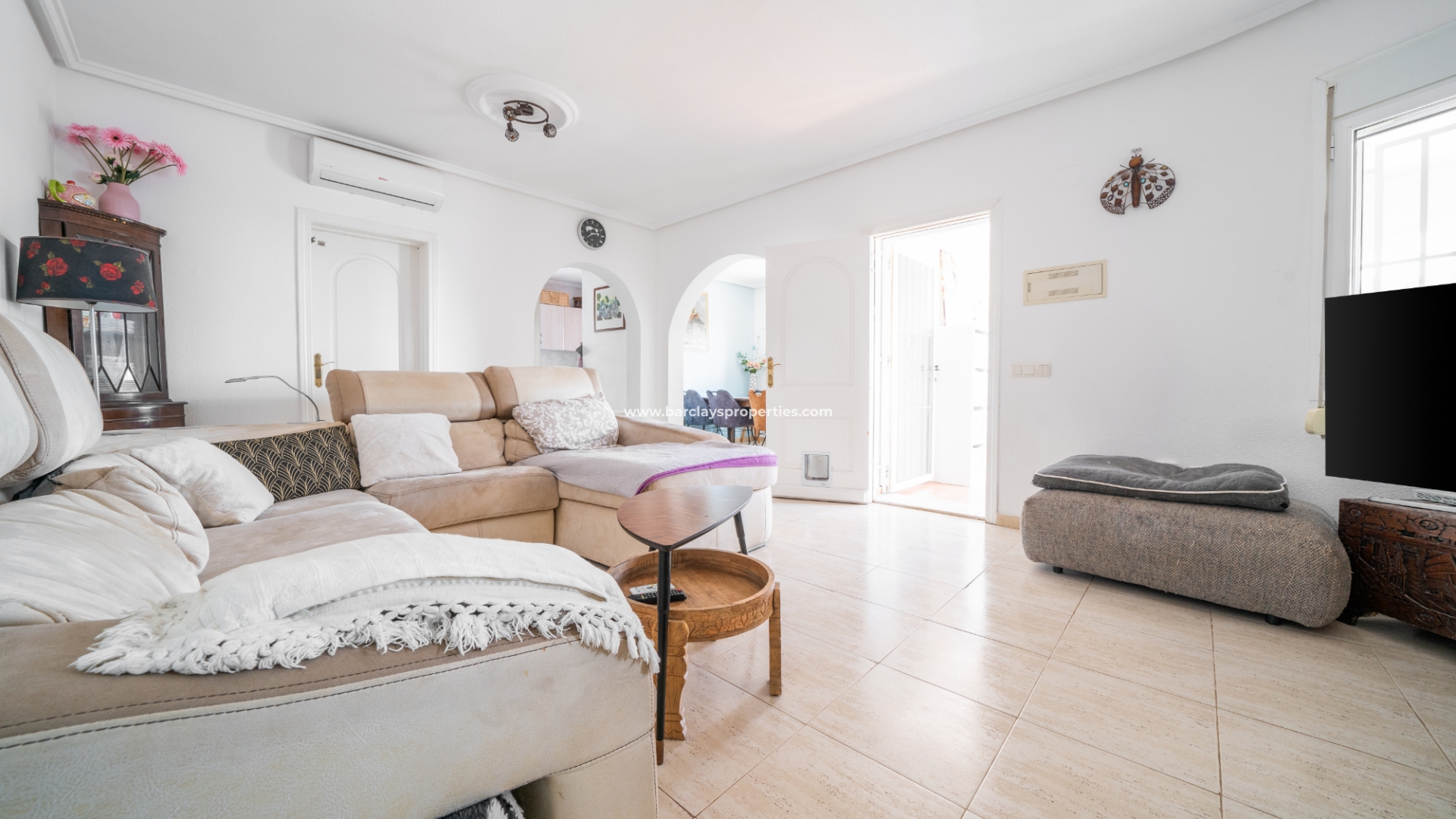 De hoofdslaapkamer is een ruime tweepersoonskamer met een en-suite badkamer, inclusief douche, bidet en dubbele wastafels. Een tweede tweepersoonsslaapkamer beschikt over airconditioning en een ingebouwde kledingkast, terwijl de derde slaapkamer, momenteel gebruikt als kantoor, ook voorzien is van airconditioning en ingebouwde opbergruimte. De hoofd badkamer heeft een bad, wastafelmeubel en toilet.