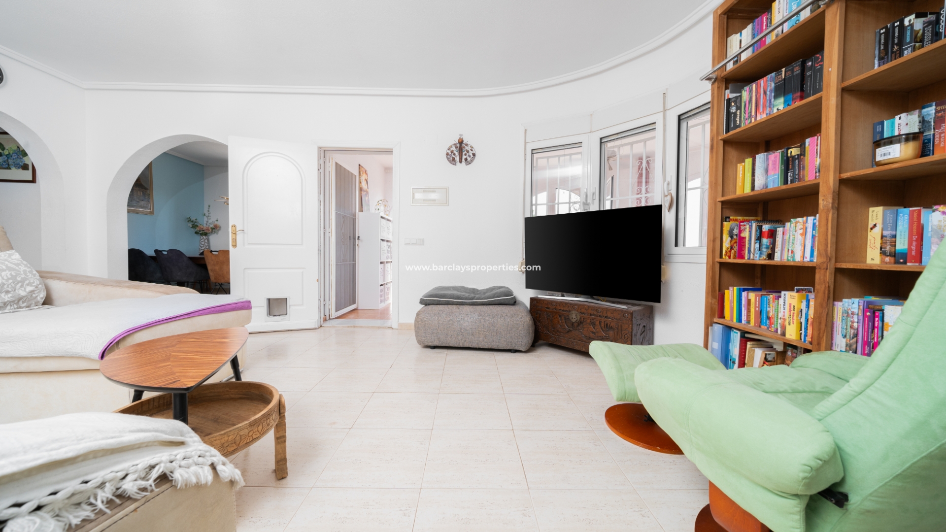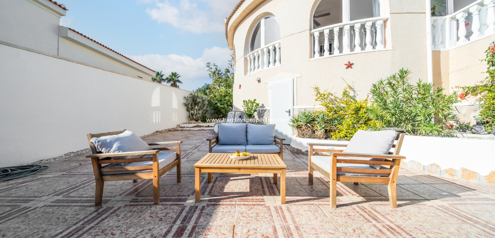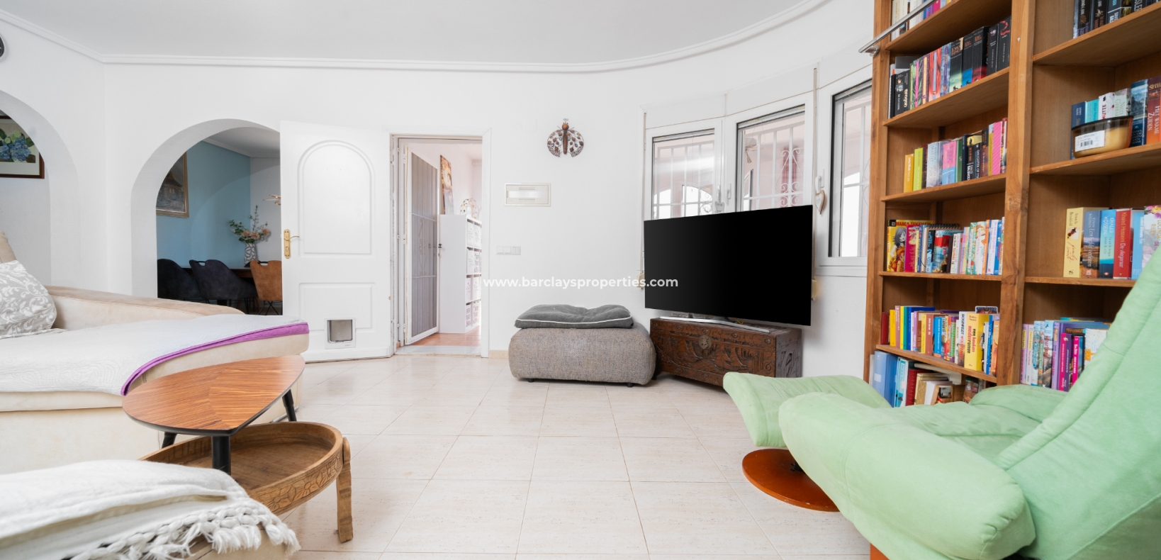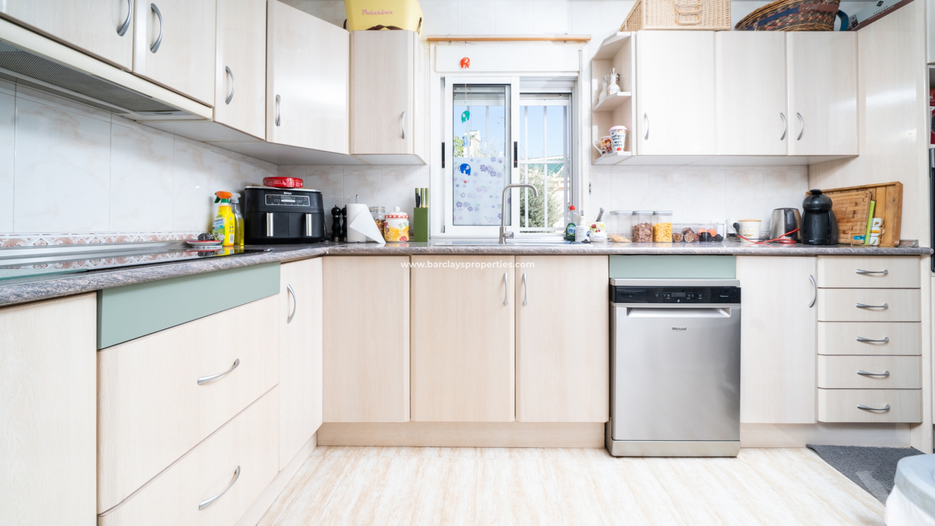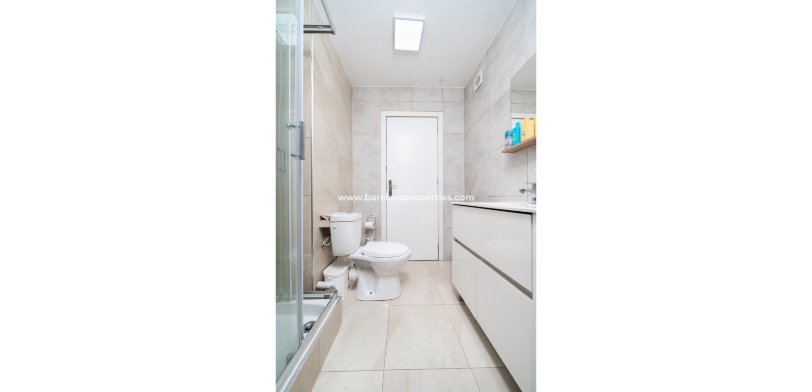 De hoofdslaapkamer is een ruime tweepersoonskamer met een en-suite badkamer, inclusief douche, bidet en dubbele wastafels. Een tweede tweepersoonsslaapkamer beschikt over airconditioning en een ingebouwde kledingkast, terwijl de derde slaapkamer, momenteel gebruikt als kantoor, ook voorzien is van airconditioning en ingebouwde opbergruimte. De hoofd badkamer heeft een bad, wastafelmeubel en toilet.