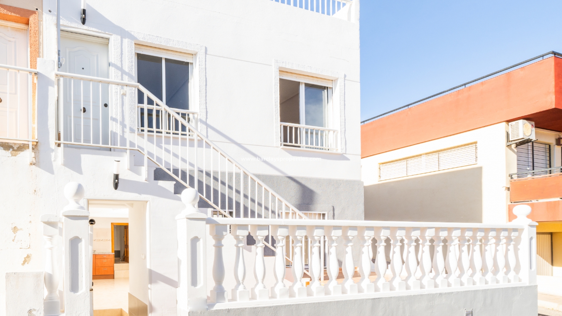 Deze uitgebreide en gerenoveerde woning in Urb. La Marina ligt in een rustige buurt, op loopafstand van lokale voorzieningen. Het biedt een praktische indeling over meerdere niveaus, met een onderbouw die beschikt over een woonkamer en een keuken. Dit kan gemakkelijk worden omgevormd tot ✅ aparte gastenaccommodatie met twee slaapkamers, een badkamer met douche, bidet, wastafel en een berging.