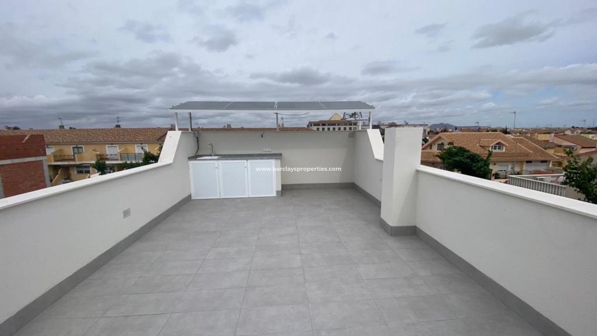 De villa’s bieden ruime buitenruimtes die perfect zijn voor het ontvangen van gasten of het genieten van een moment van ontspanning in de zon. Elke villa beschikt over een privé solarium met een zomerkeuken, inclusief een koelkastaansluiting, een voorbereiding voor een wasmachine en een wit porseleinen gootsteen met een werkblad van grijs graniet. Het privézwembad is ideaal om te genieten van het warme Mediterrane klimaat, terwijl de terrassen en de tuin veel ruimte bieden voor buiten dineren en recreatieve activiteiten.