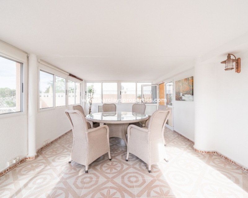 Deze uitzonderlijke villa beschikt ook over een tweede ruime wintertuin, die een eet- en zithoek herbergt, ideaal voor het ontvangen van familie en vrienden en voor een uitgebreidere woonruimte.