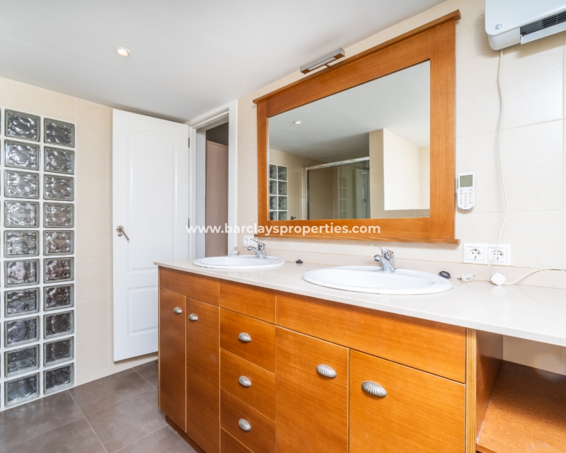 De woning biedt twee tweepersoonsslaapkamers, beide met airconditioning en een met elektrische verwarming. Een van de slaapkamers heeft toegang tot een veelzijdige kamer die momenteel wordt gebruikt als slaapruimte. Aan het einde van de gang bevindt zich een moderne familiebadkamer met glazen baksteenelementen, een wand-voor-wand schuifdeur van glas, een dubbele wastafel, elektrische verwarming en een verwarmde handdoekradiator.