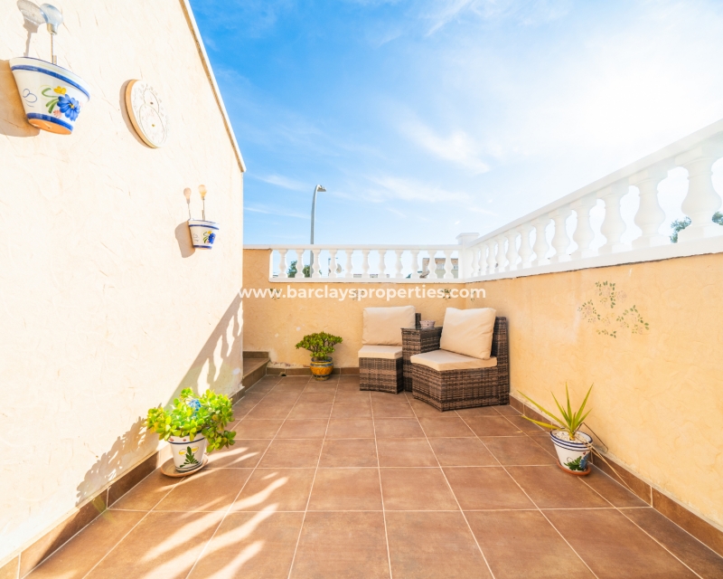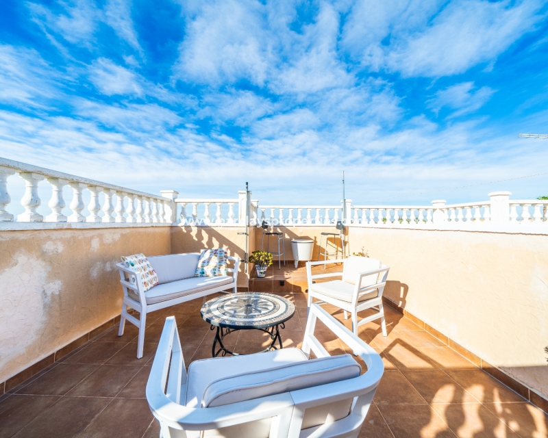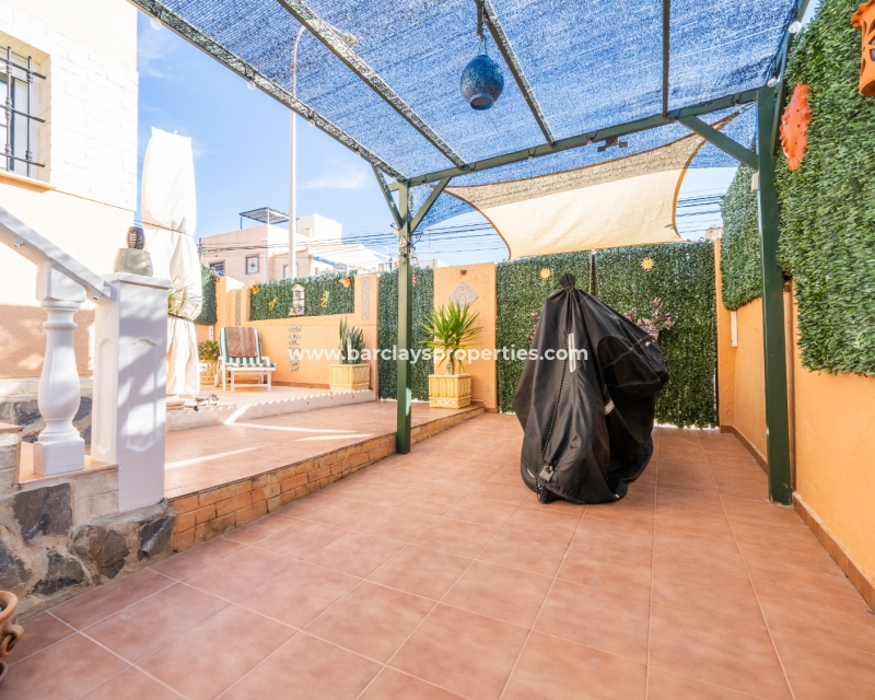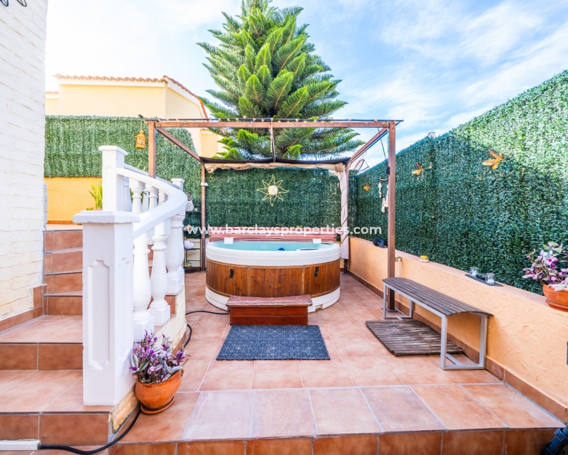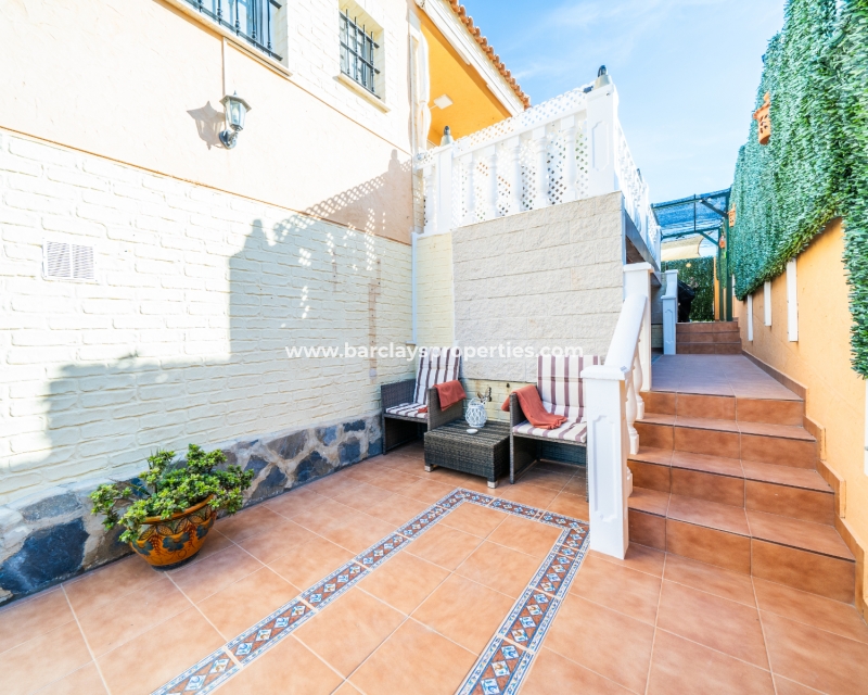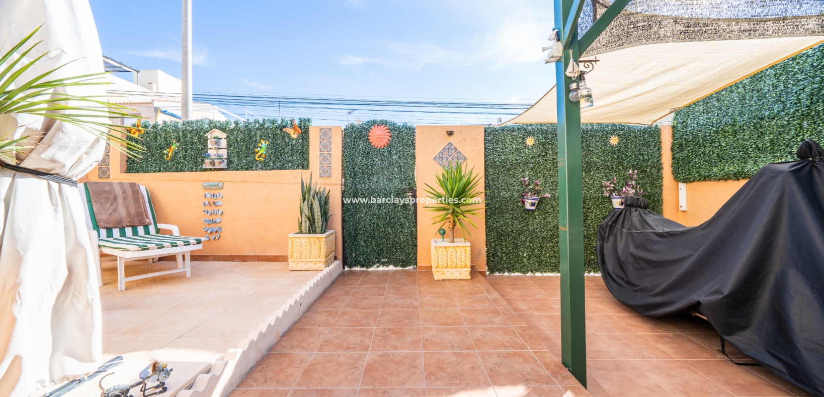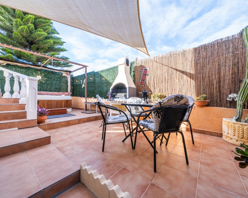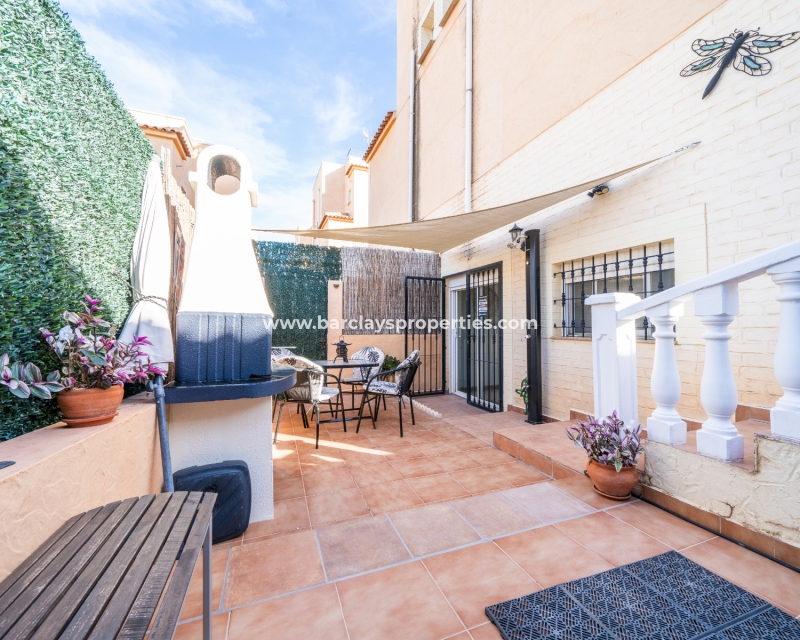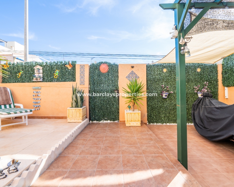 Welkom in uw perfecte Spaanse woning! Het heeft alles wat u nodig heeft. Slechts een korte wandeling van 5 minuten naar lokale winkels en restaurants, met een zonnig solarium dat prachtige uitzichten biedt, en een schattige tuin om van buiten te genieten. Dichtbij het met de Blauwe Vlag bekroonde strand met gouden zand van "Playas de La Marina" en op slechts 25 minuten van de luchthaven van Alicante, is dit de ideale plek voor uw droomvakantiehuis!