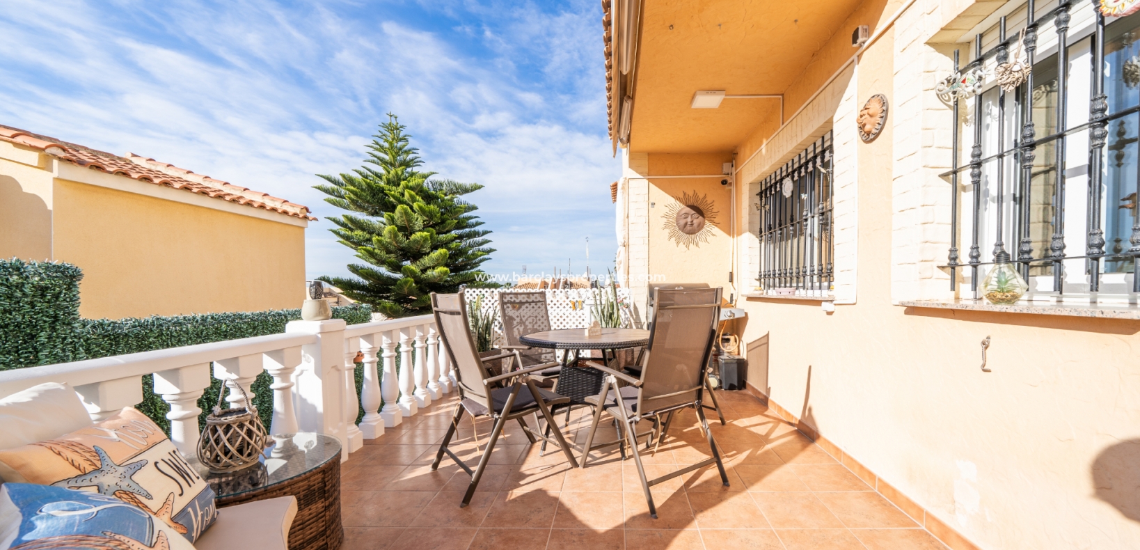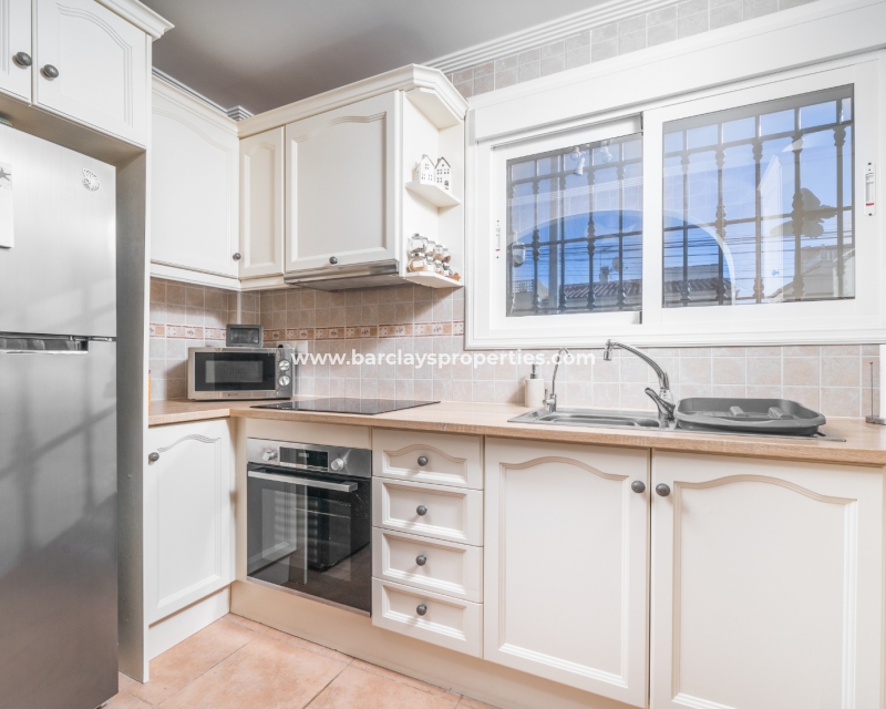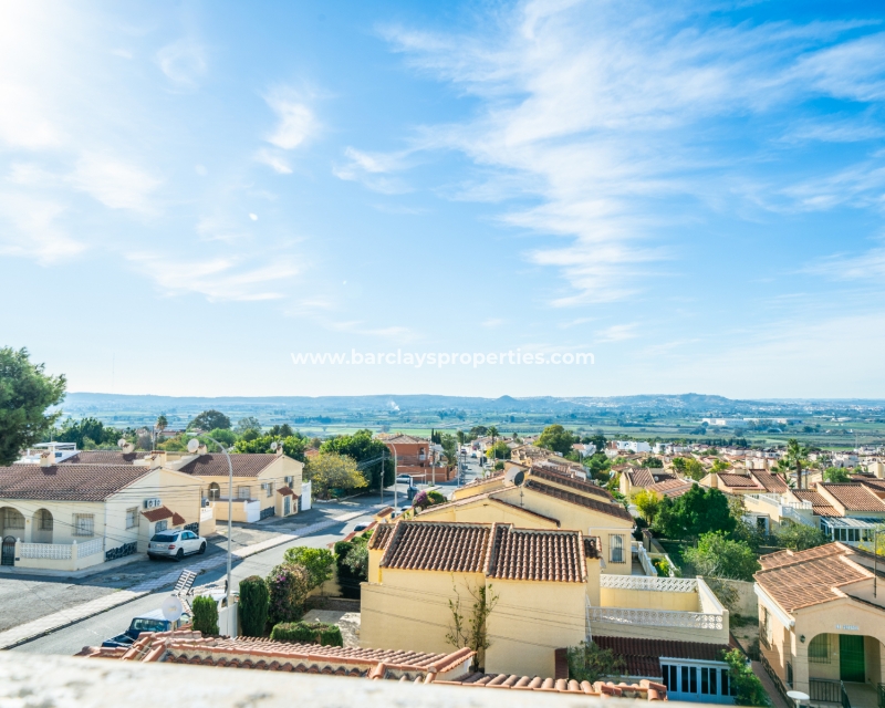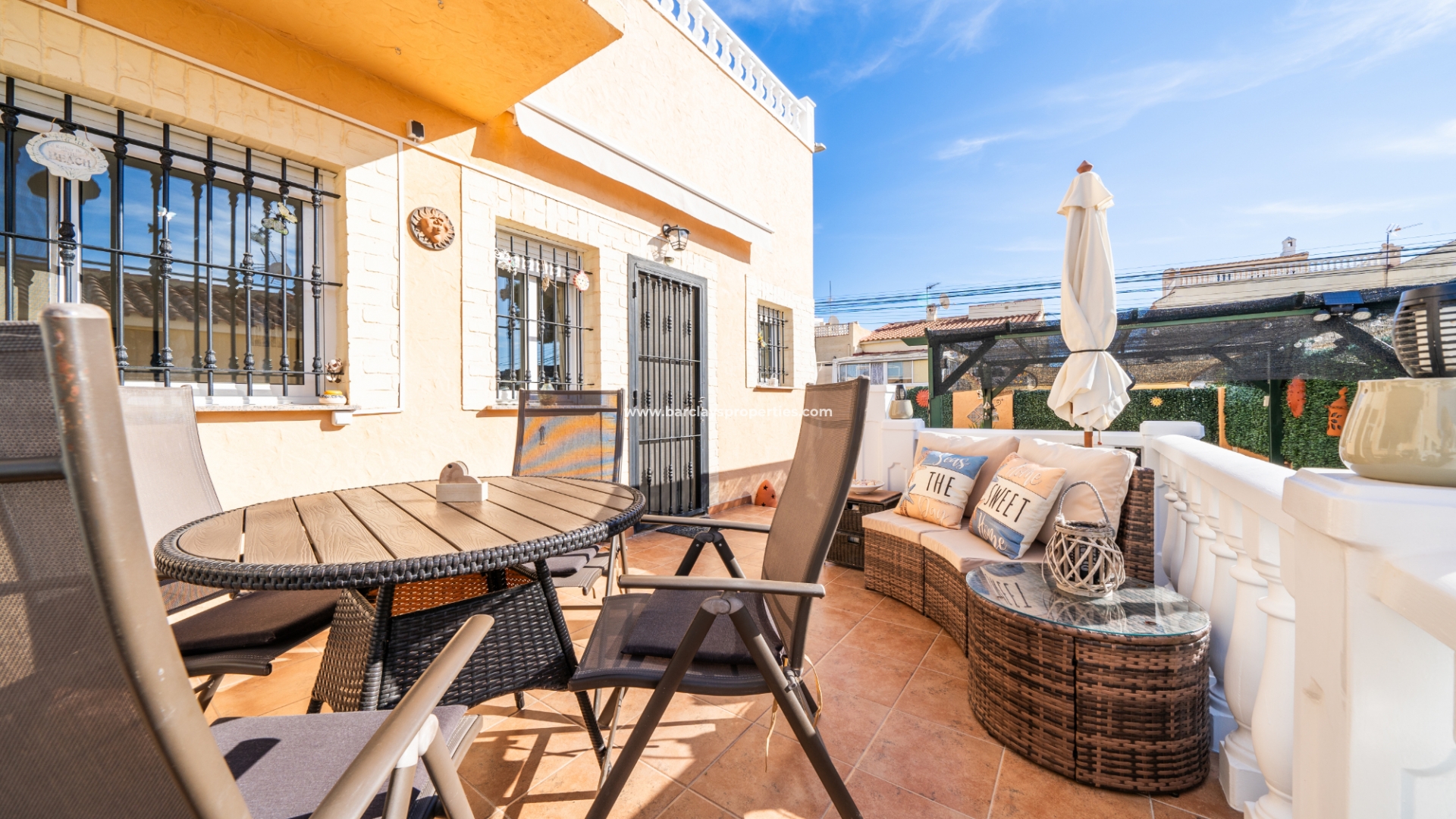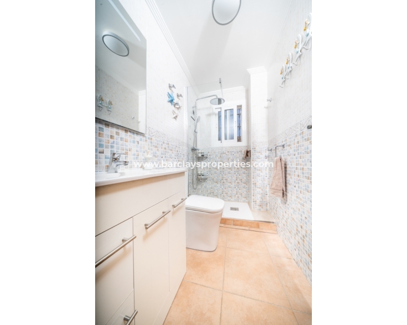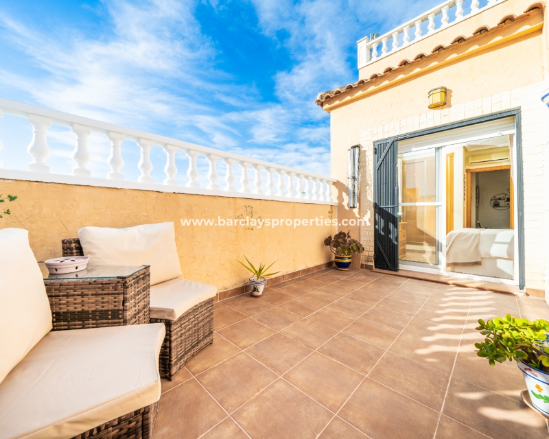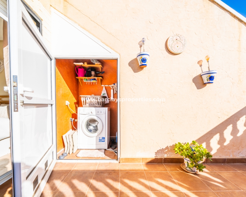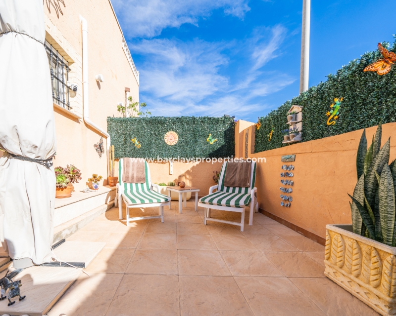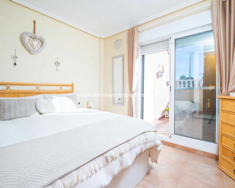 Welkom in uw perfecte Spaanse woning! Het heeft alles wat u nodig heeft. Slechts een korte wandeling van 5 minuten naar lokale winkels en restaurants, met een zonnig solarium dat prachtige uitzichten biedt, en een schattige tuin om van buiten te genieten. Dichtbij het met de Blauwe Vlag bekroonde strand met gouden zand van "Playas de La Marina" en op slechts 25 minuten van de luchthaven van Alicante, is dit de ideale plek voor uw droomvakantiehuis!
