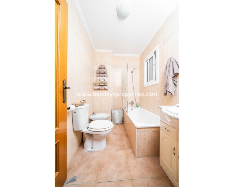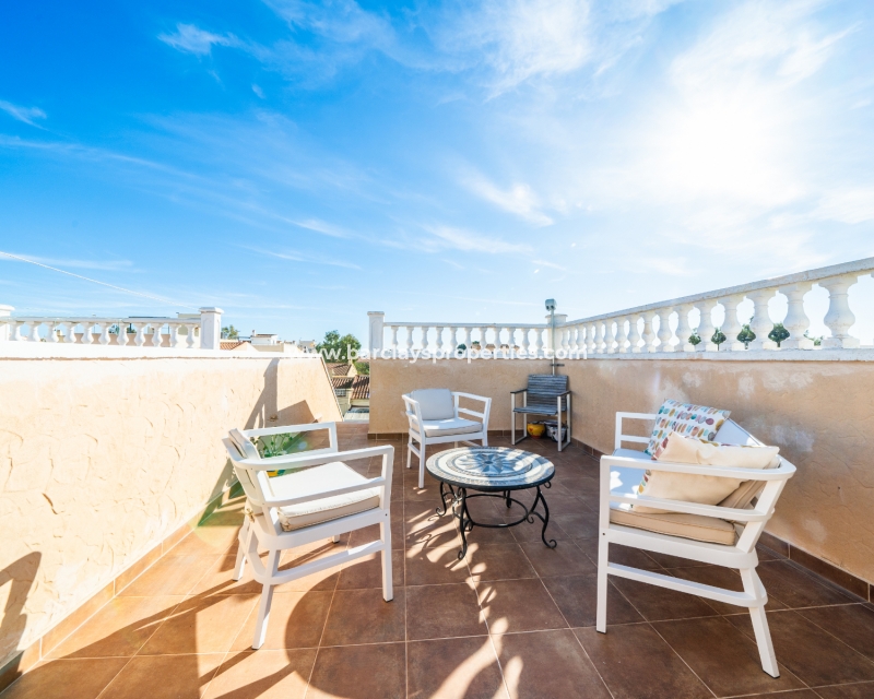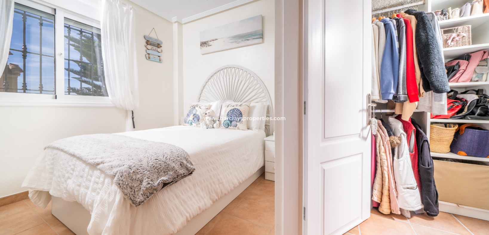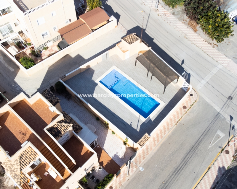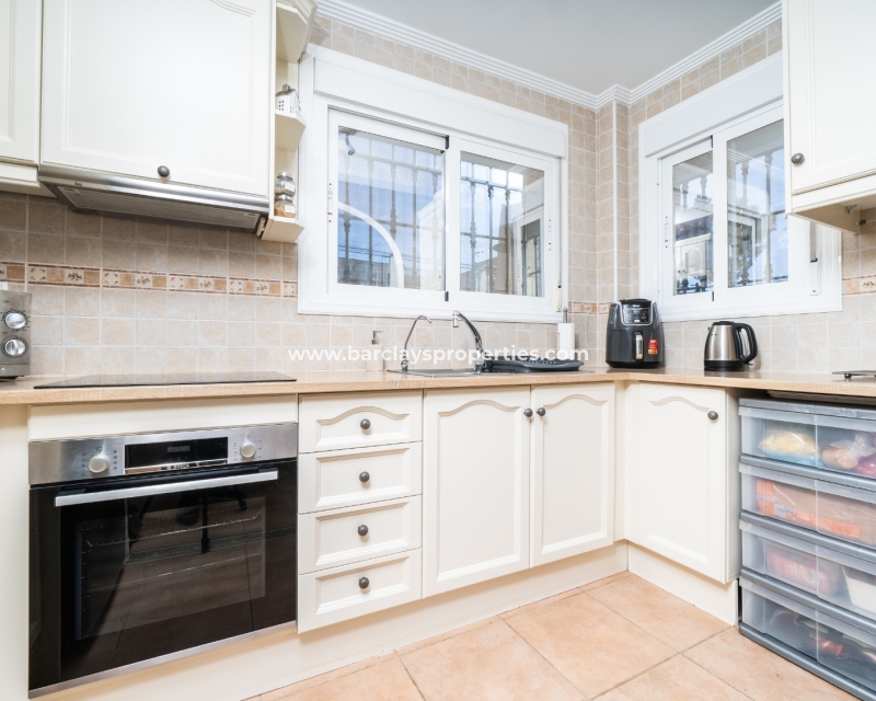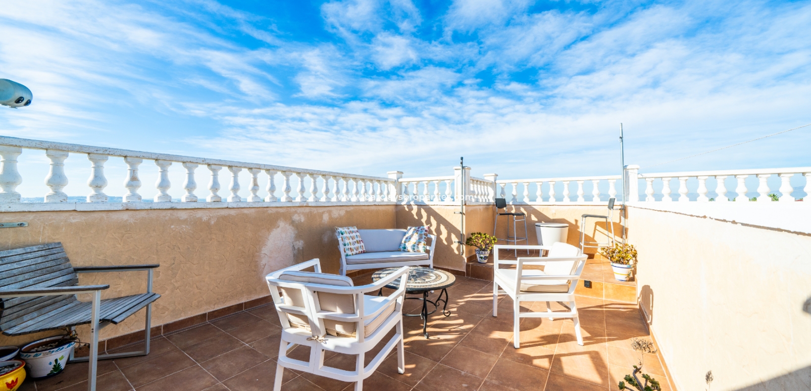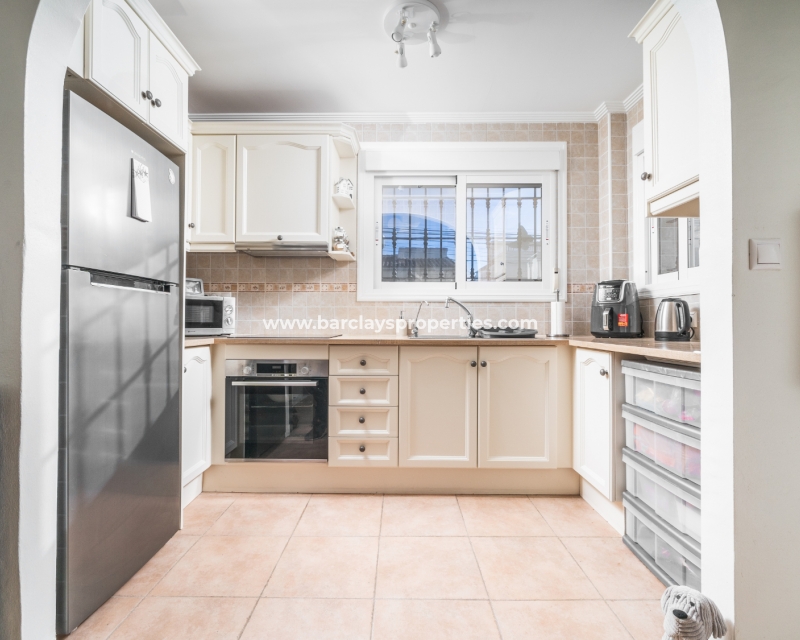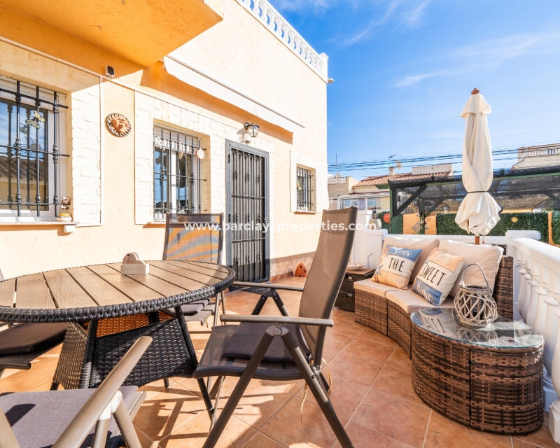 Welkom in uw perfecte Spaanse woning! Het heeft alles wat u nodig heeft. Slechts een korte wandeling van 5 minuten naar lokale winkels en restaurants, met een zonnig solarium dat prachtige uitzichten biedt, en een schattige tuin om van buiten te genieten. Dichtbij het met de Blauwe Vlag bekroonde strand met gouden zand van "Playas de La Marina" en op slechts 25 minuten van de luchthaven van Alicante, is dit de ideale plek voor uw droomvakantiehuis!