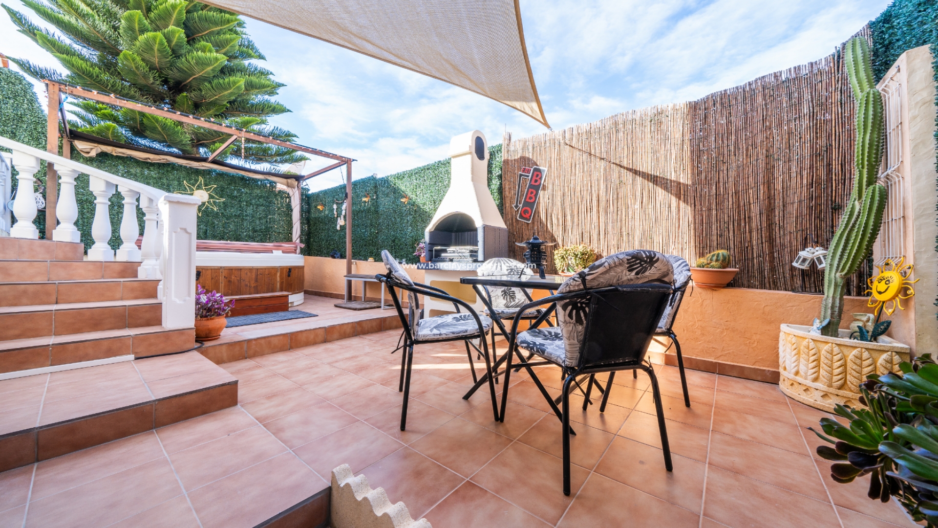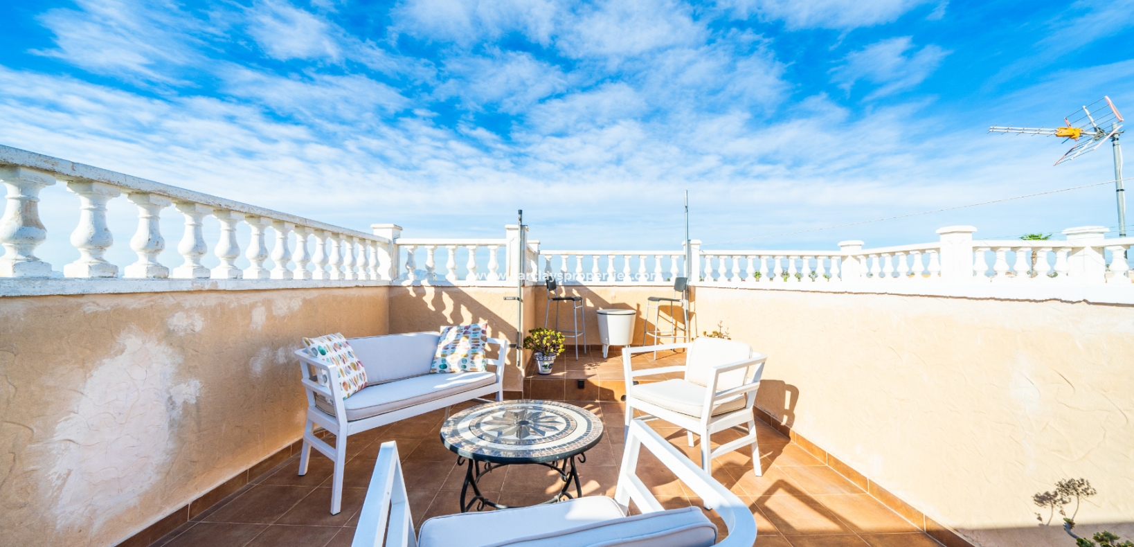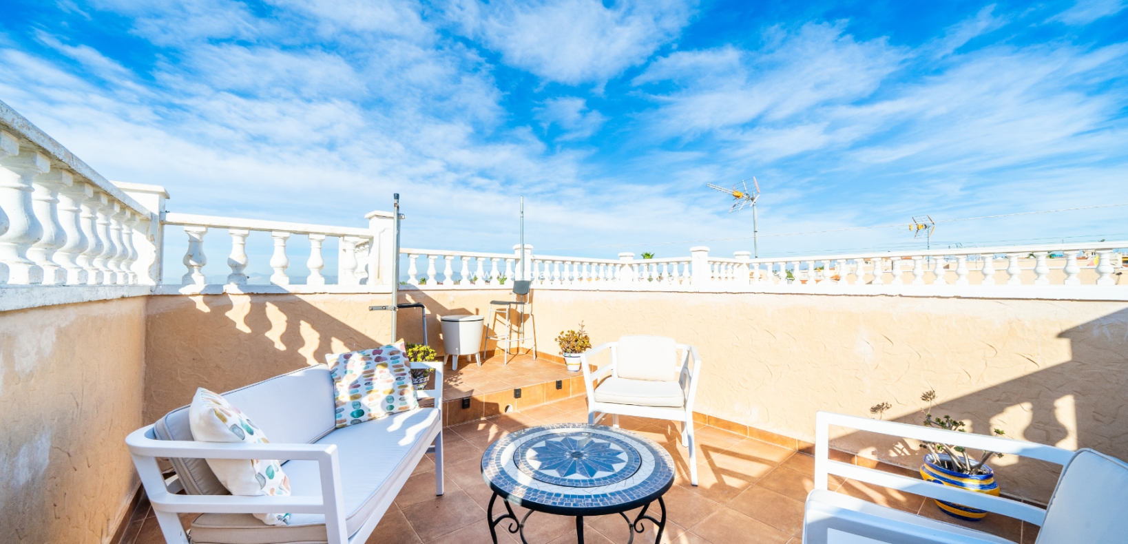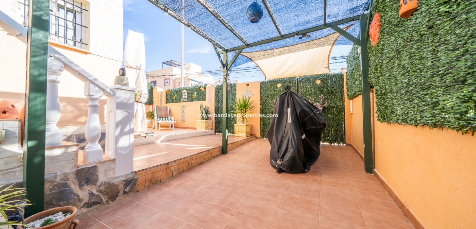 Welkom in uw perfecte Spaanse woning! Het heeft alles wat u nodig heeft. Slechts een korte wandeling van 5 minuten naar lokale winkels en restaurants, met een zonnig solarium dat prachtige uitzichten biedt, en een schattige tuin om van buiten te genieten. Dichtbij het met de Blauwe Vlag bekroonde strand met gouden zand van "Playas de La Marina" en op slechts 25 minuten van de luchthaven van Alicante, is dit de ideale plek voor uw droomvakantiehuis!