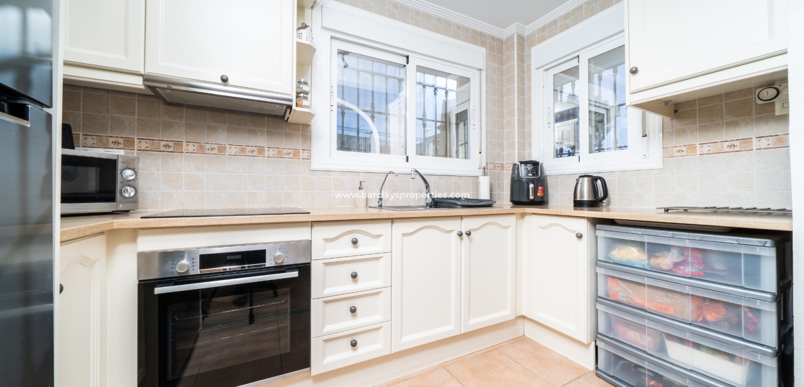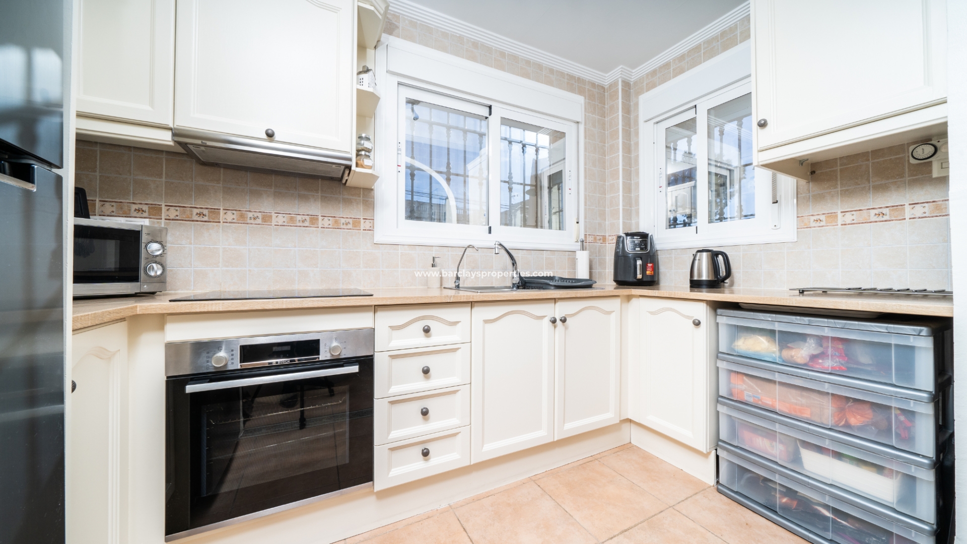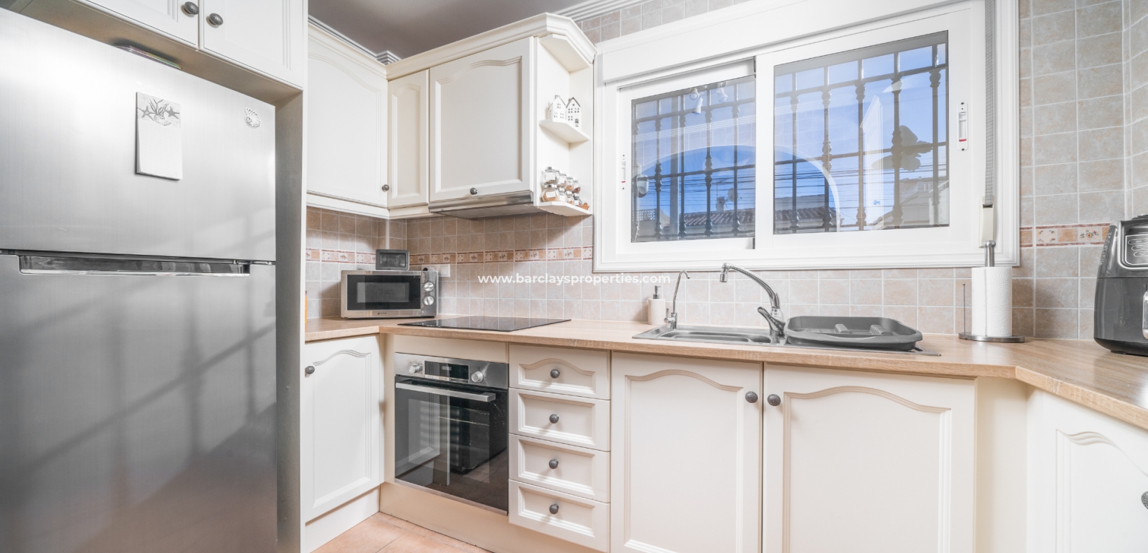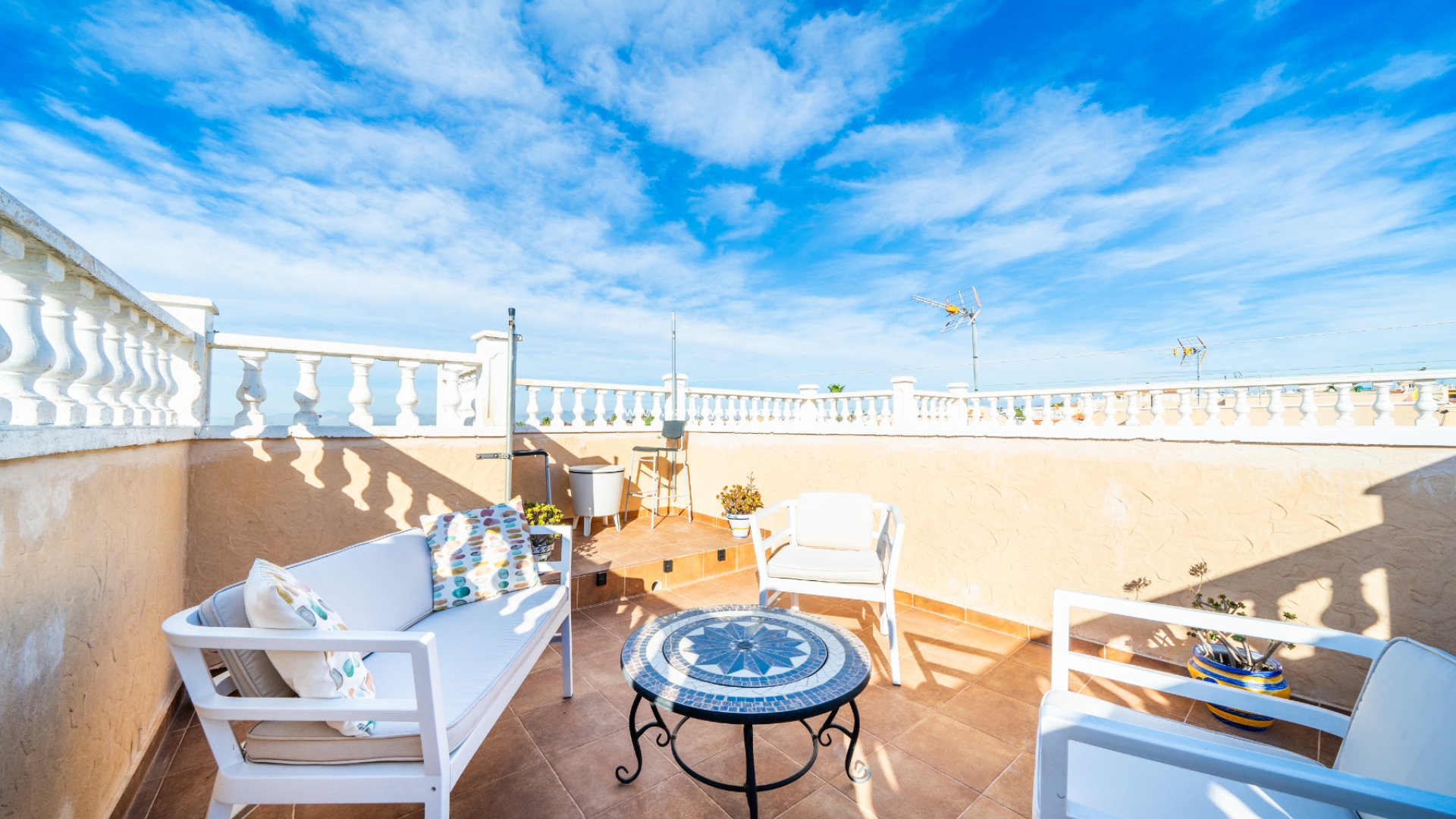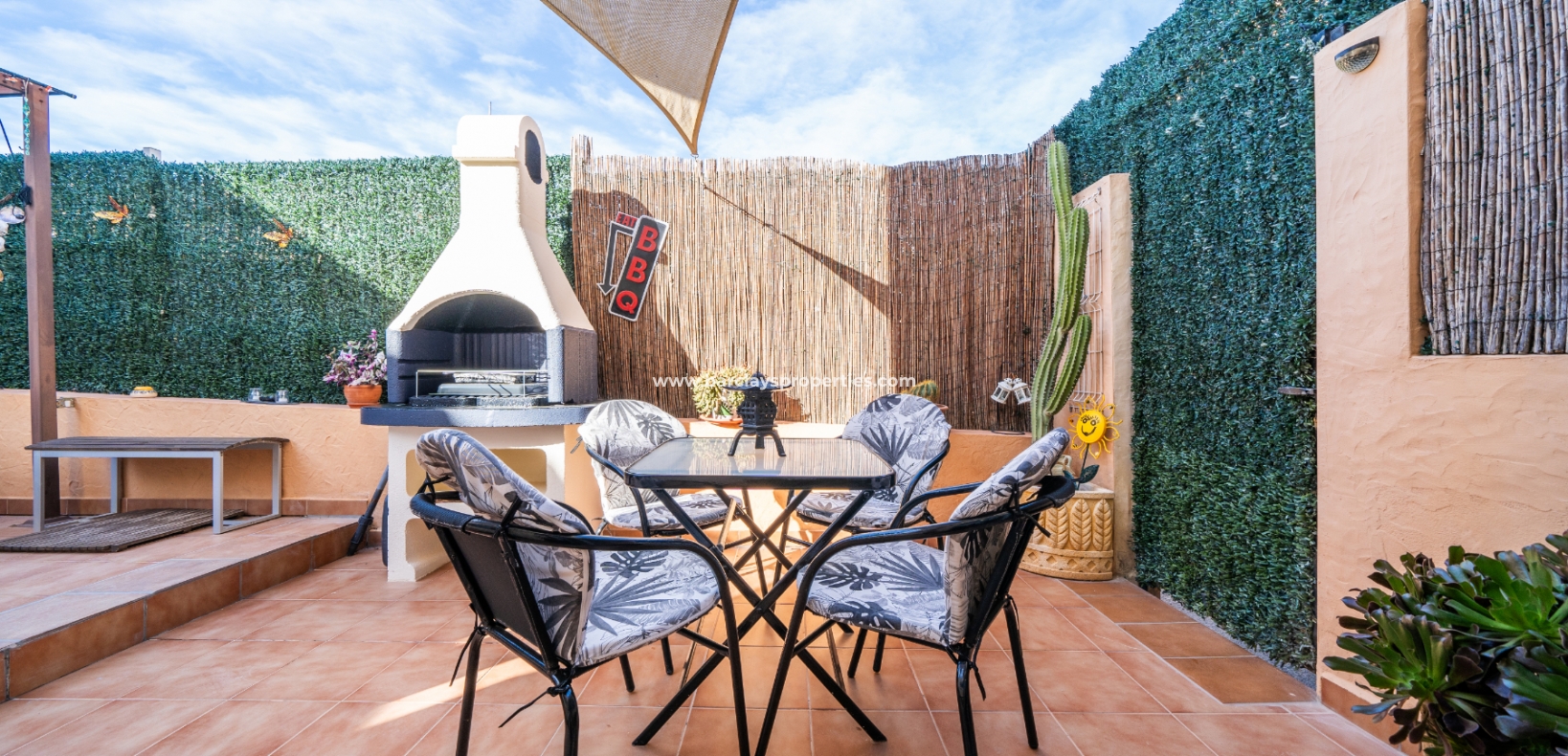 Welkom in uw perfecte Spaanse woning! Het heeft alles wat u nodig heeft. Slechts een korte wandeling van 5 minuten naar lokale winkels en restaurants, met een zonnig solarium dat prachtige uitzichten biedt, en een schattige tuin om van buiten te genieten. Dichtbij het met de Blauwe Vlag bekroonde strand met gouden zand van "Playas de La Marina" en op slechts 25 minuten van de luchthaven van Alicante, is dit de ideale plek voor uw droomvakantiehuis!
