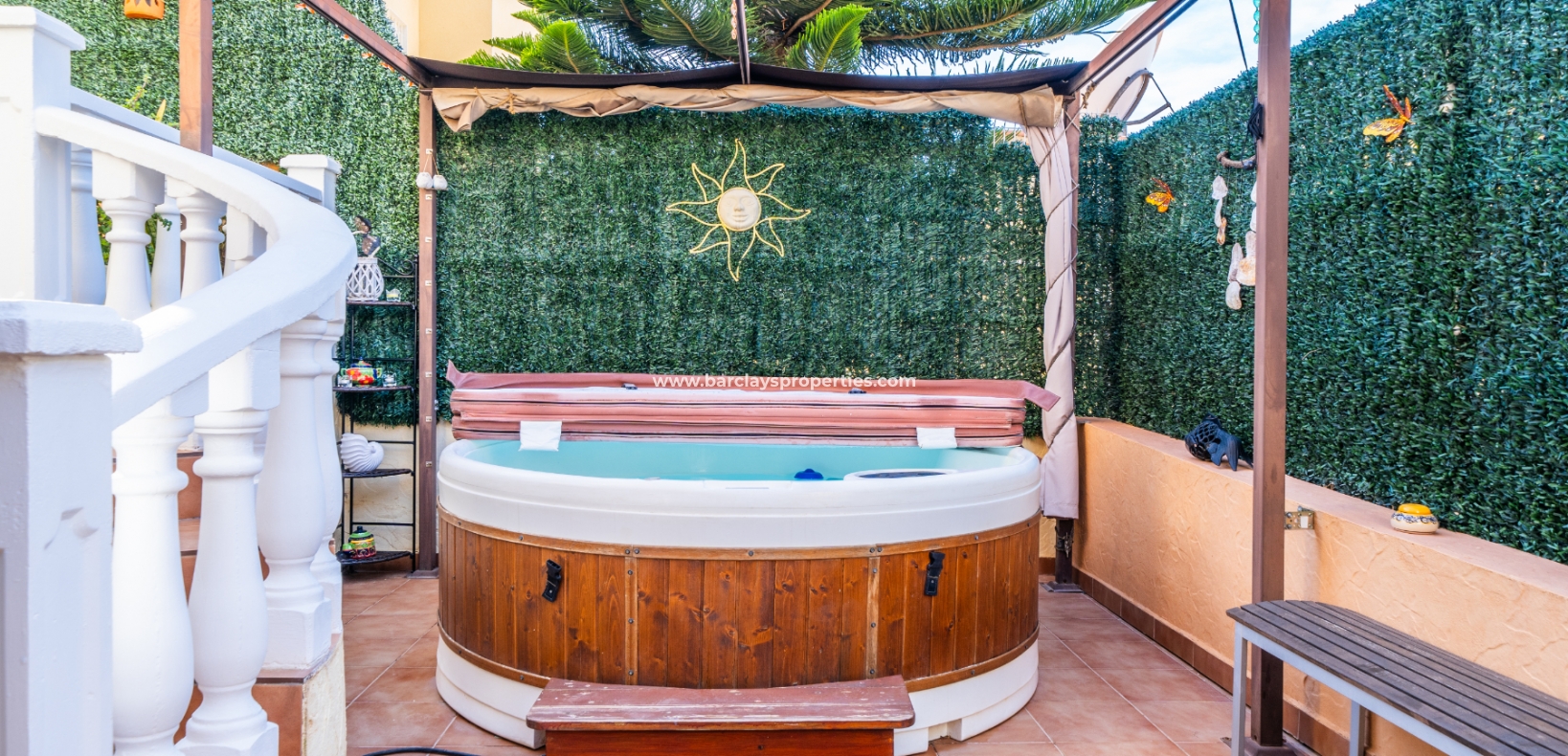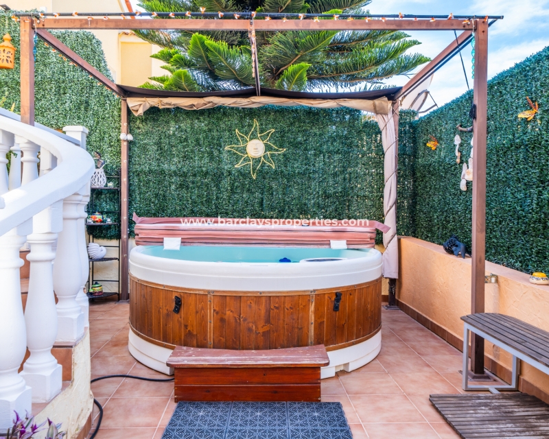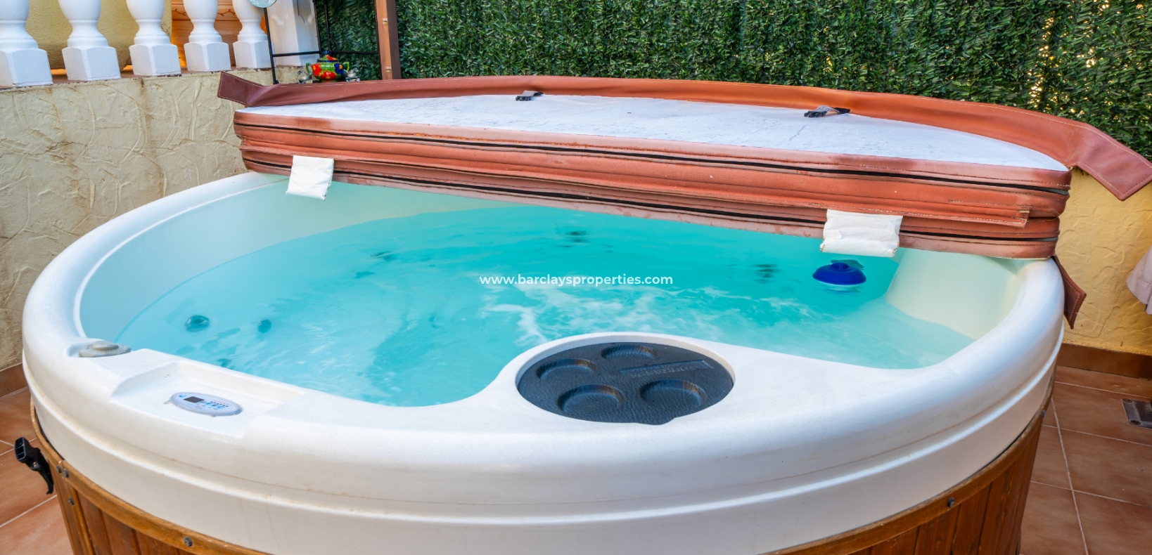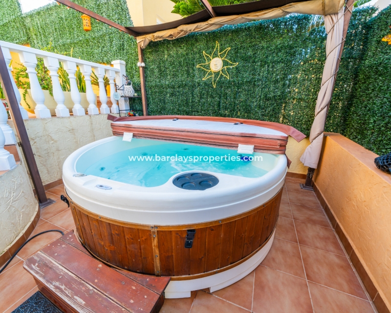 Deze prachtige twee-onder-een-kapvilla maakt deel uit van een privécommunity van 36 woningen en biedt toegang tot ✅een goed onderhouden gemeenschappelijk zwembad. De tuin beschikt over privéparkeergelegenheid met een carport. De buitenruimtes zijn ideaal om te entertainen, met veel zit- en chill-out gebieden, een opnieuw betegeld terras, een privéachtertuin met whirlpool, barbecue, zonwering voor schaduw, en een solarium met ✅adembenemend uitzicht op de omliggende bergen en het platteland.