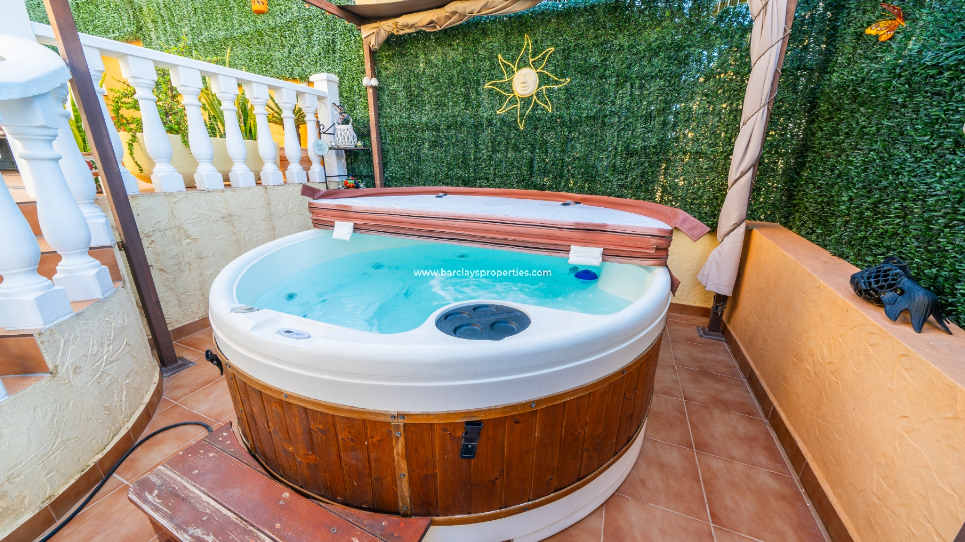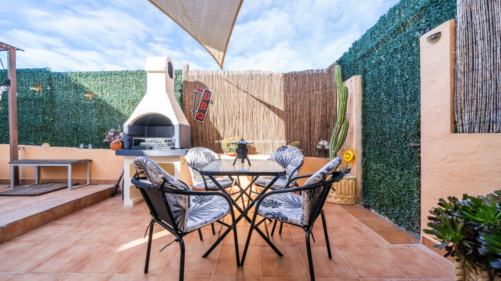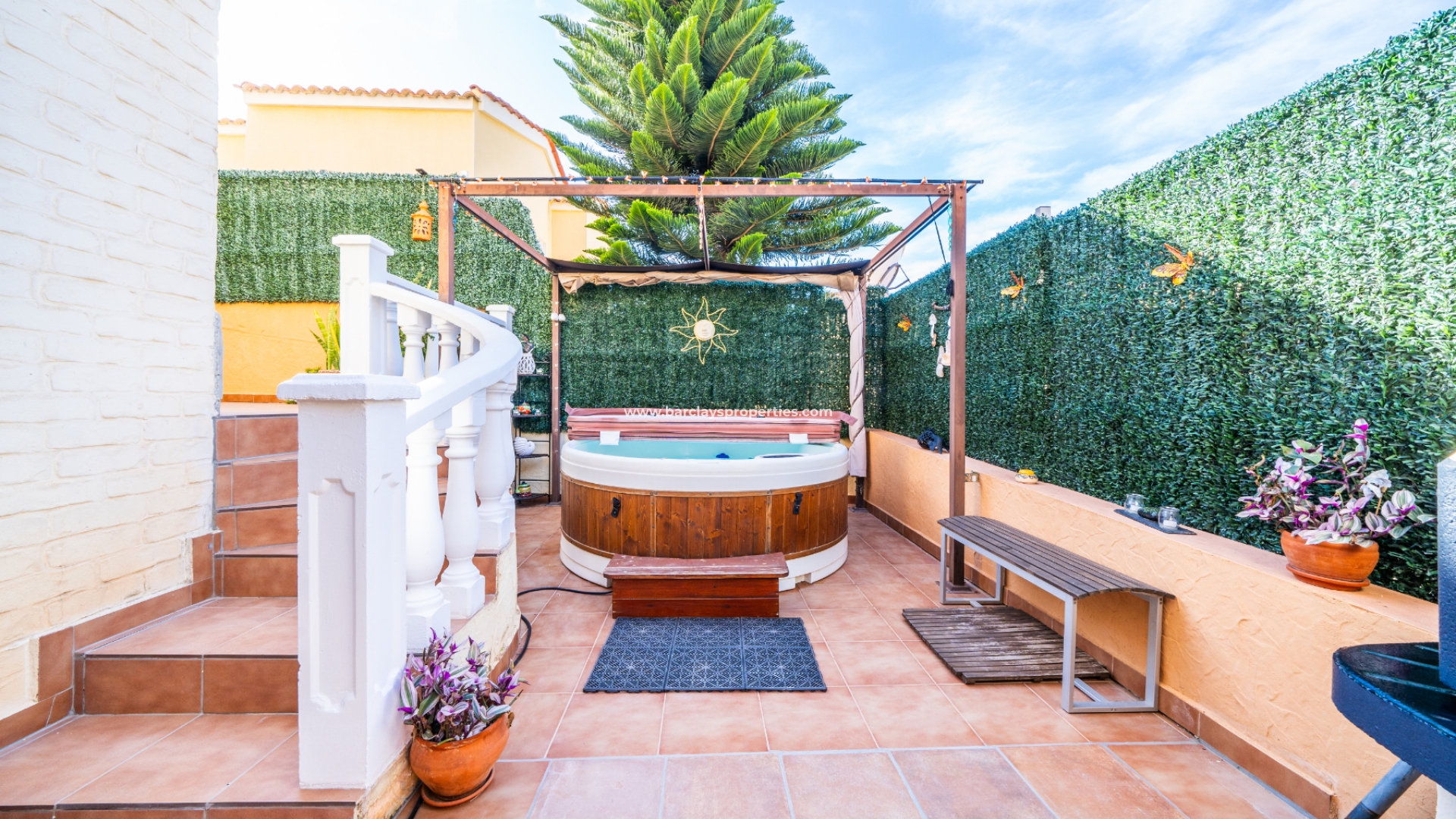 Deze prachtige twee-onder-een-kapvilla maakt deel uit van een privécommunity van 36 woningen en biedt toegang tot ✅een goed onderhouden gemeenschappelijk zwembad. De tuin beschikt over privéparkeergelegenheid met een carport. De buitenruimtes zijn ideaal om te entertainen, met veel zit- en chill-out gebieden, een opnieuw betegeld terras, een privéachtertuin met whirlpool, barbecue, zonwering voor schaduw, en een solarium met ✅adembenemend uitzicht op de omliggende bergen en het platteland.